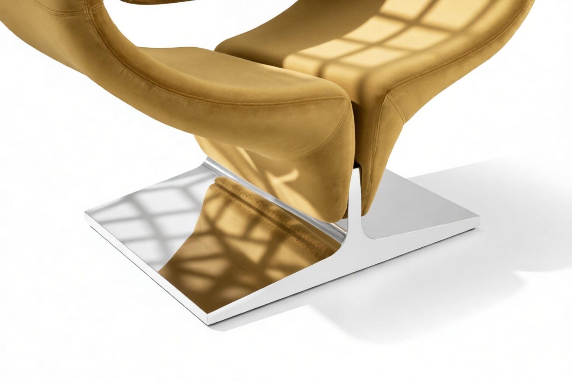 Unveil the modern elegance of the Ribbon Chair, a fusion of futuristic design and supreme comfort. Featuring a sculptural fiberglass frame with plush foam padding, this chair offers ergonomic support and a striking visual appeal with its polished steel base and luxurious upholstery. Add a touch of sophistication to your space with this avant-garde statement piece.
