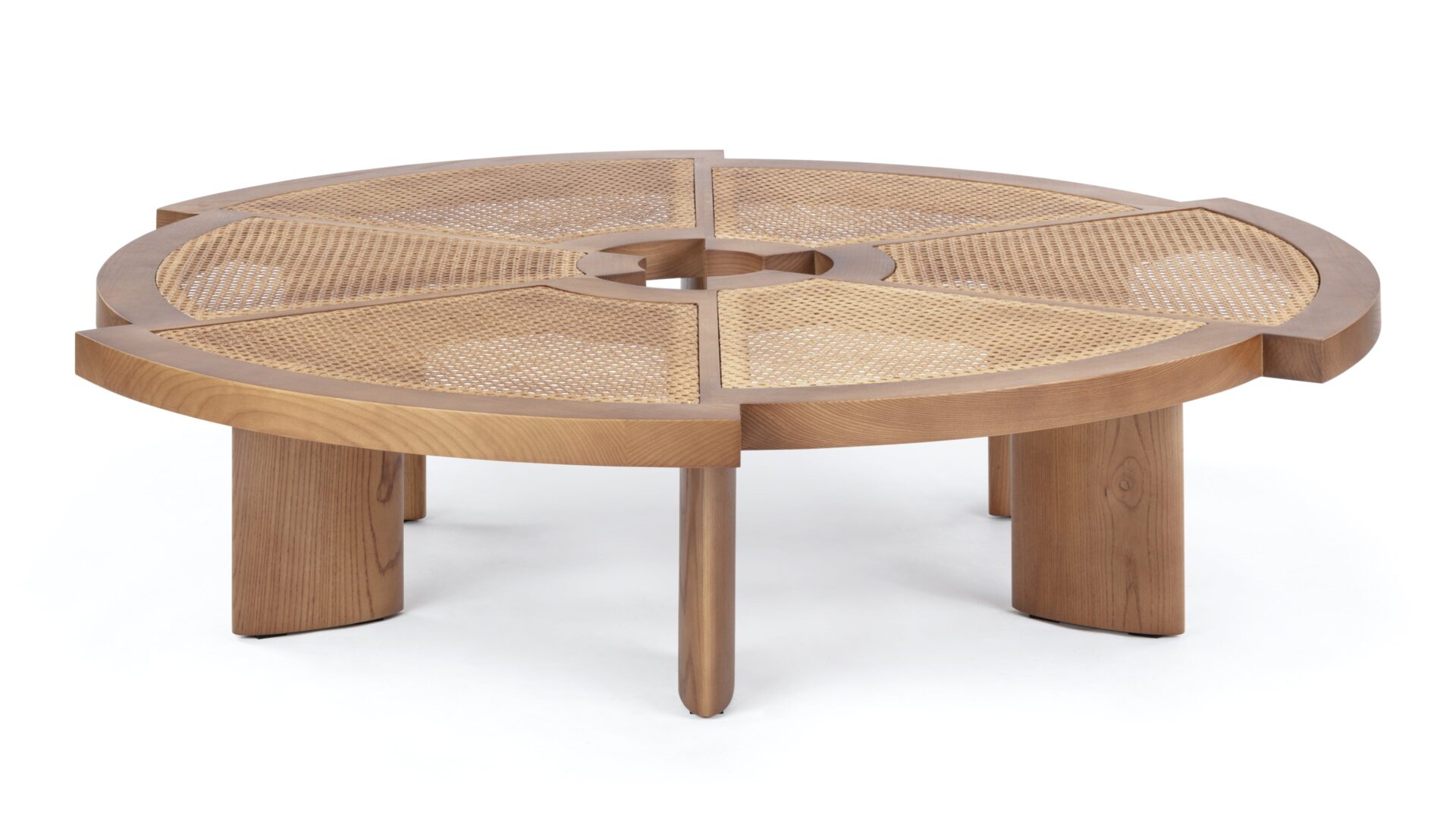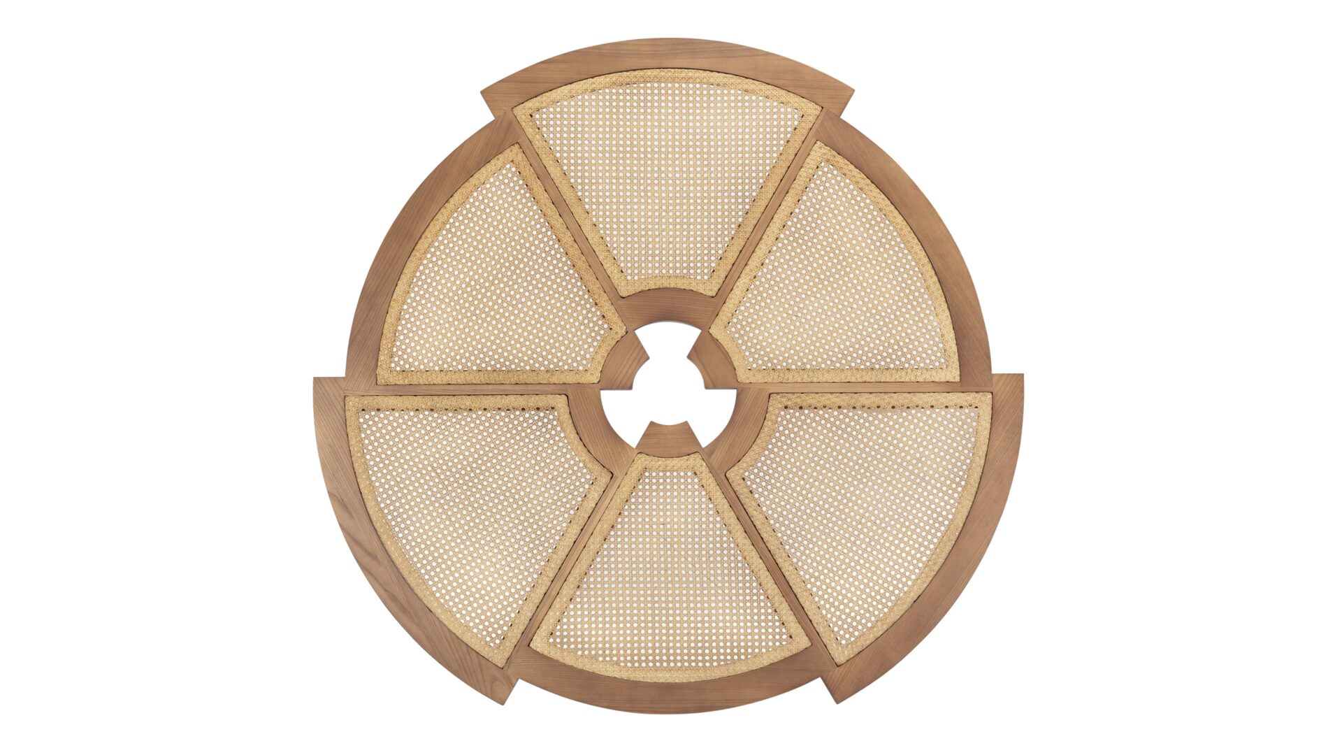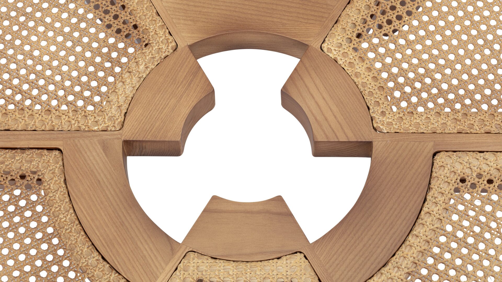 Expertly crafted with meticulously proportioned thick hardwood legs and a chunky top, the Rio table beautifully juxtaposes the use of cane and a central hole, creating a perfect balance between solidity and lightness in the design.