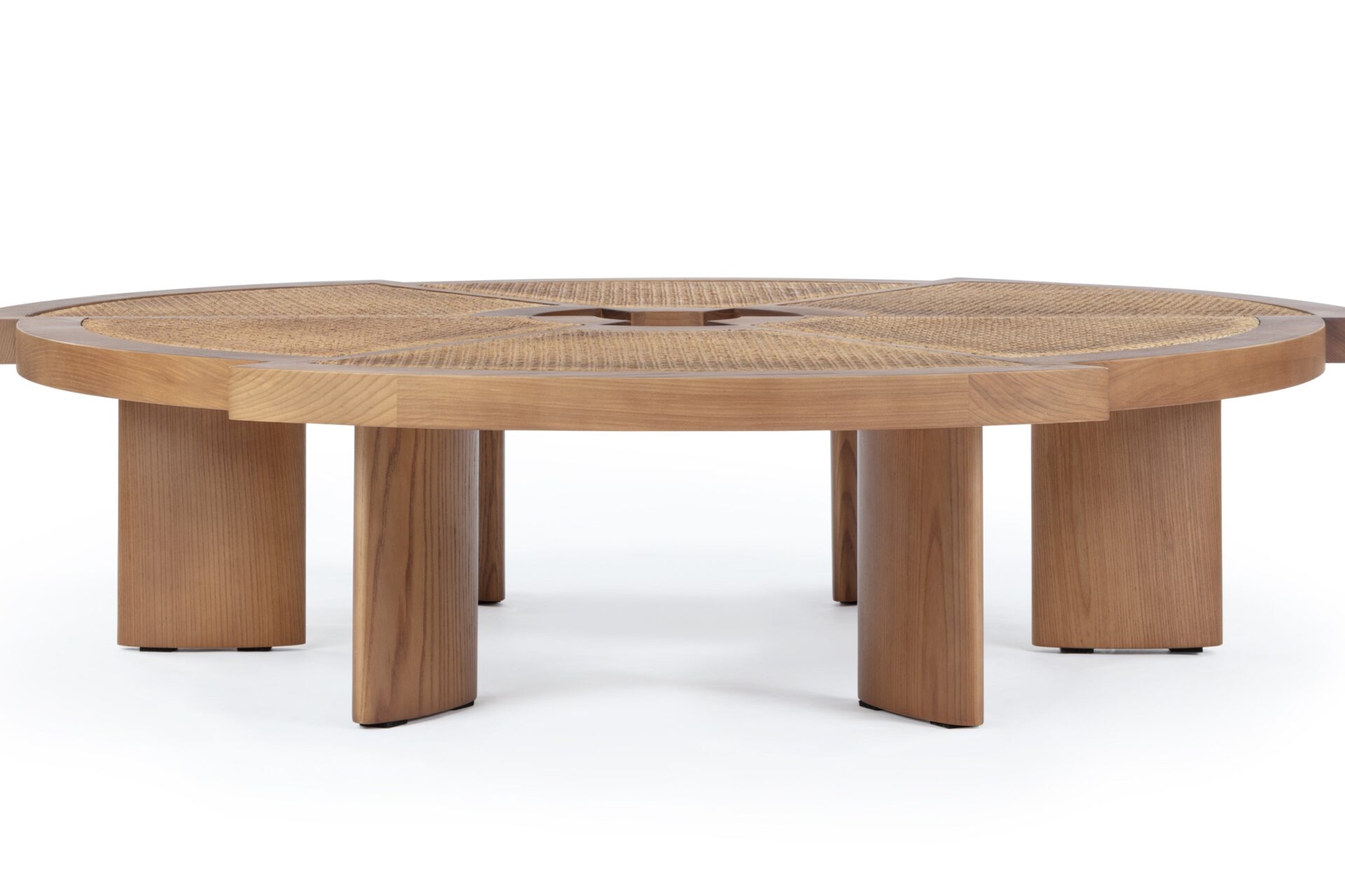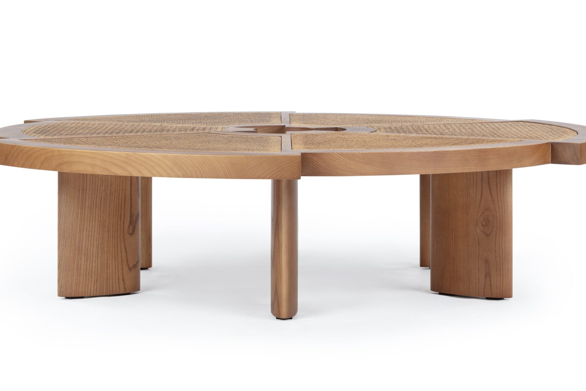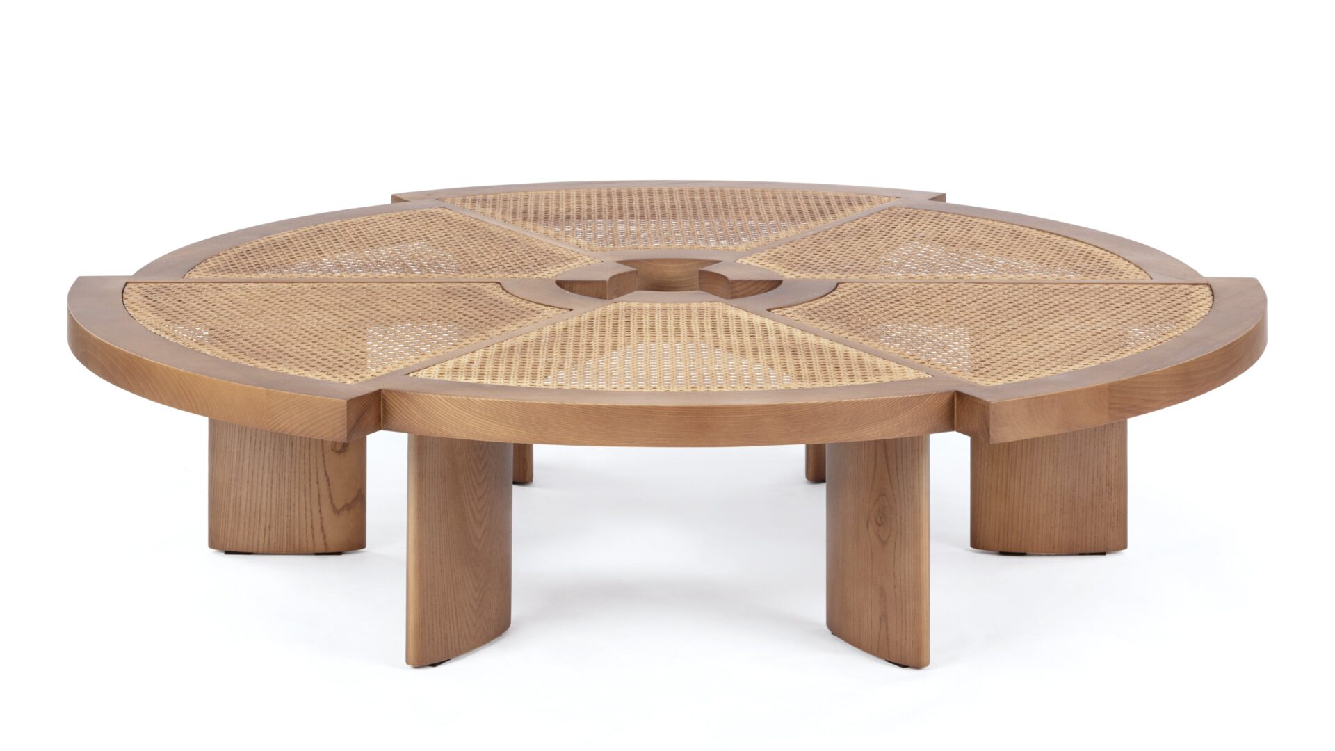 Expertly crafted with meticulously proportioned thick hardwood legs and a chunky top, the Rio table beautifully juxtaposes the use of cane and a central hole, creating a perfect balance between solidity and lightness in the design.