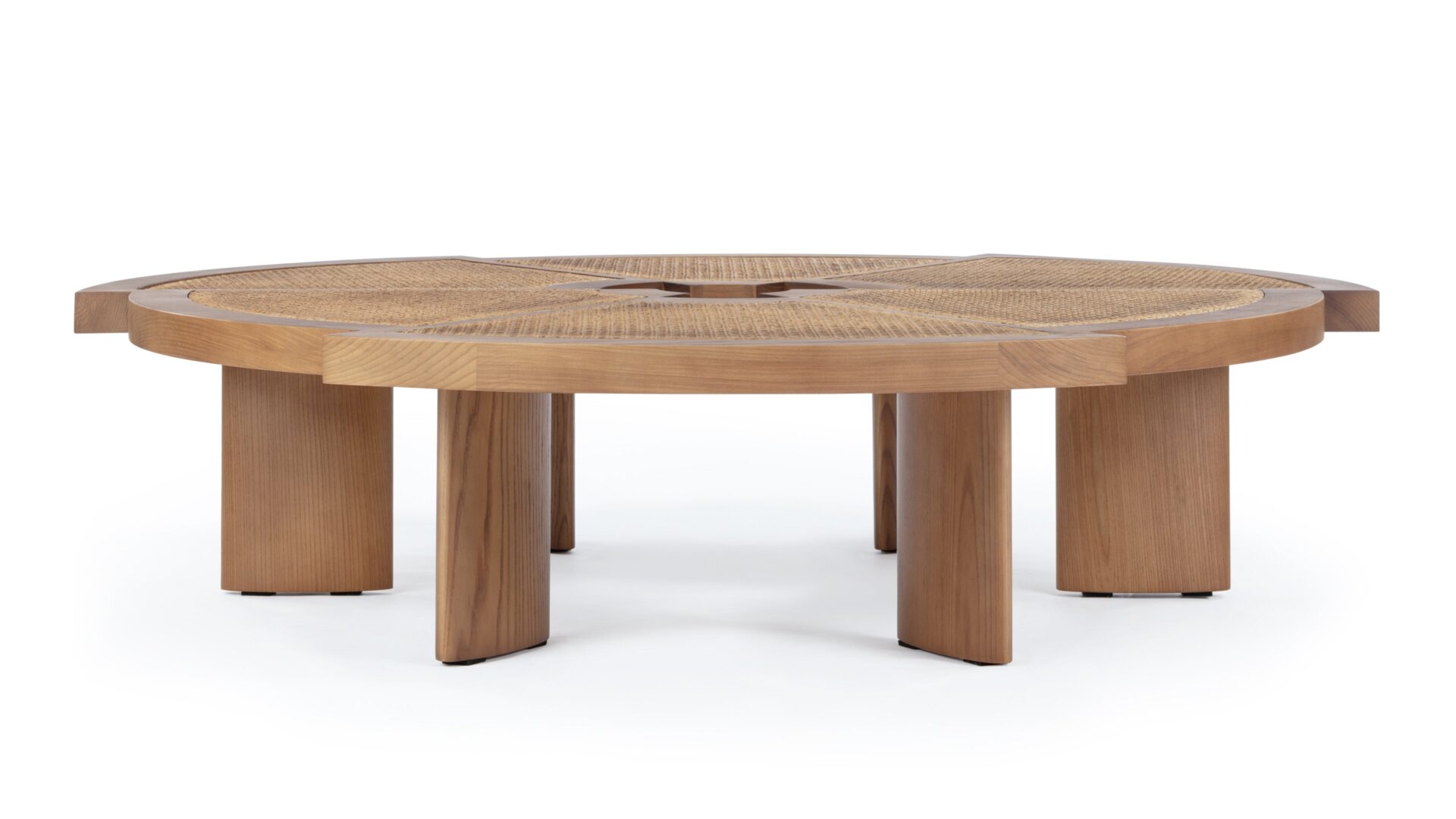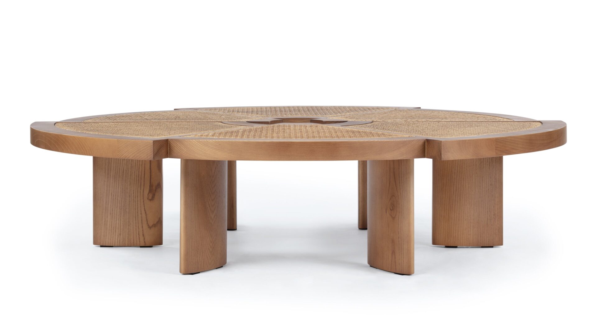 Crafted with six cane-inset segments, the balanced symmetry of the piece is complemented by its uniquely staggered edge, creating a distinctive signature look for the Mango Bay Coffee Table™.