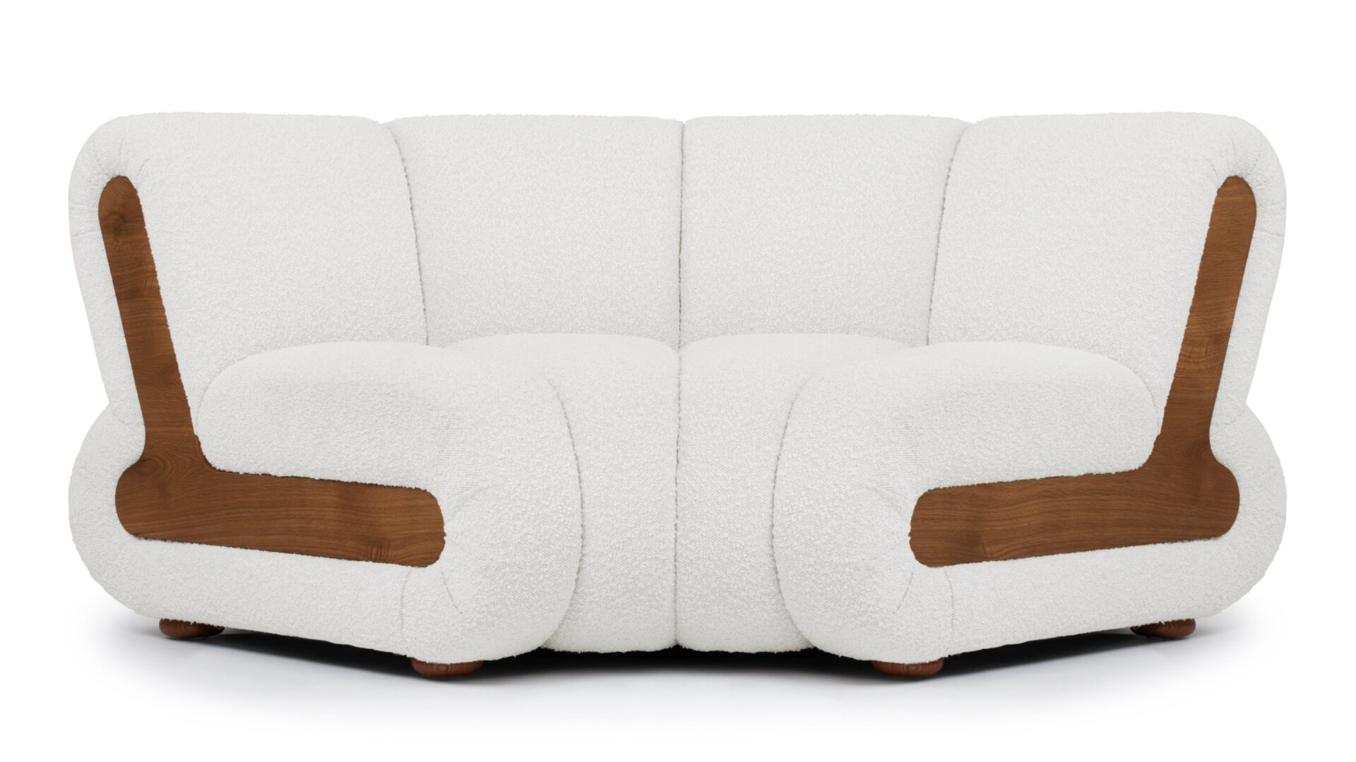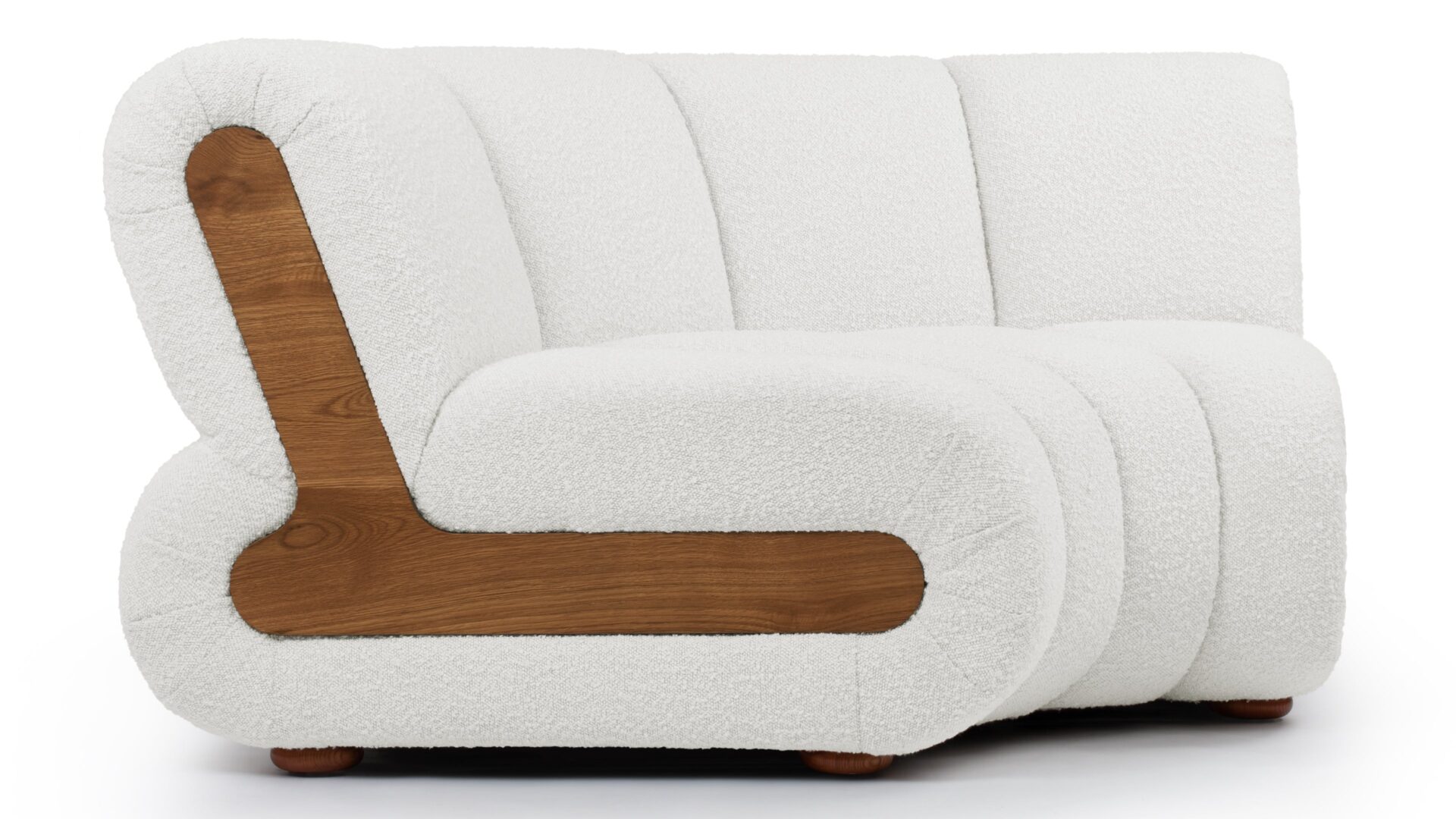 Indulge in luxurious relaxation with the River Sectional Sofa's plush comfort and elegant design. Adaptable to any home decor, this versatile sofa offers a customized layout with straight and curved modules. Experience vintage vibes with the River Side Table in Pearl Boucle, inspired by 1970s interiors to infuse your space with nostalgic charm and character.