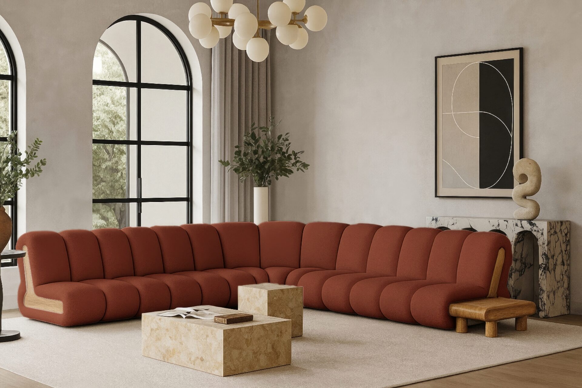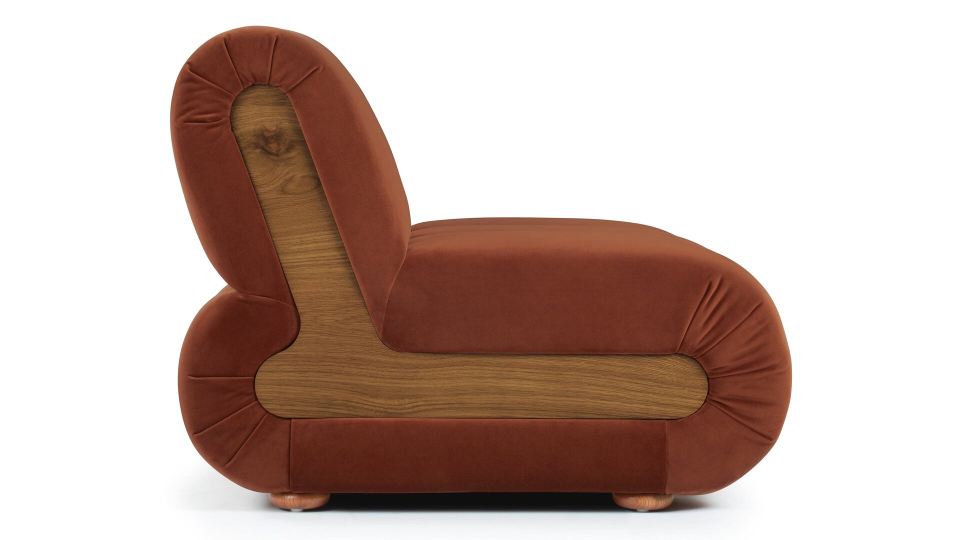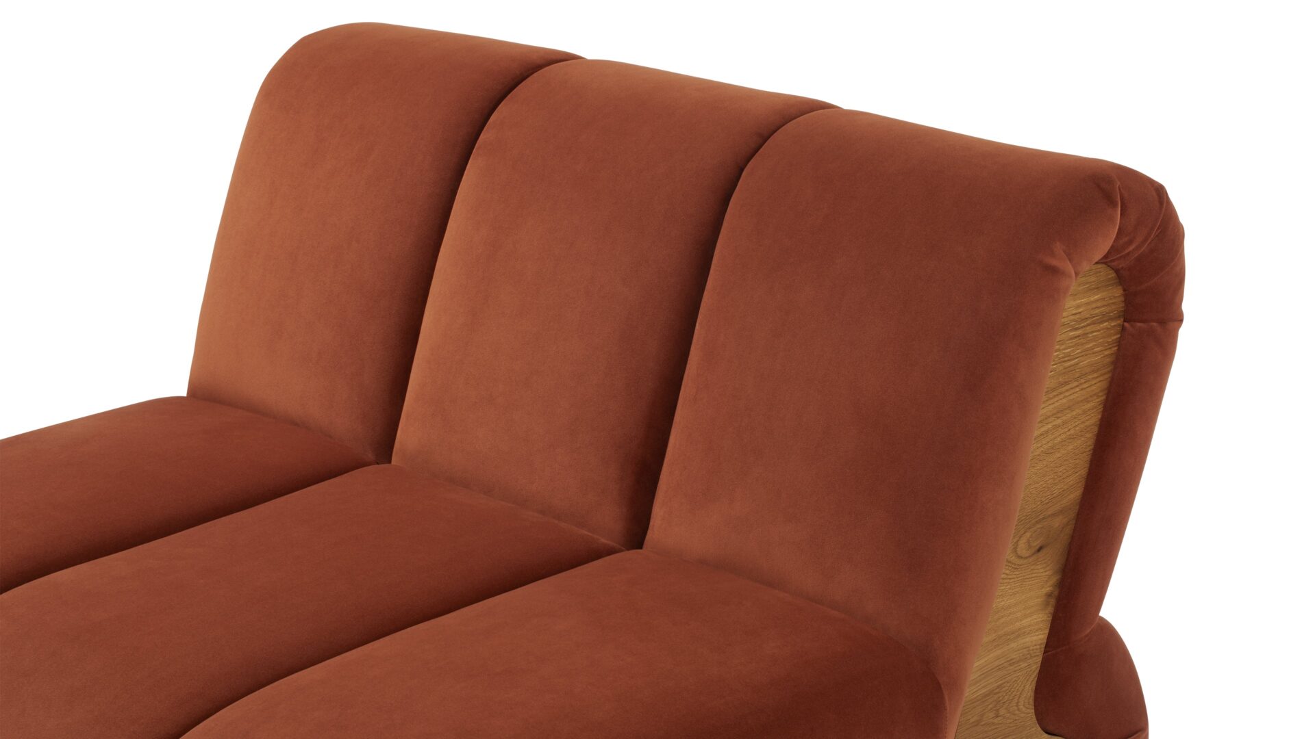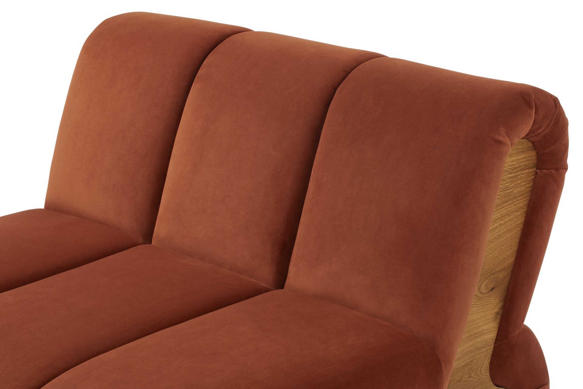 Indulge in ultimate relaxation with the River Sectional Sofa in Russet Plush Velvet. Sink into its plush cushions and let go of daily stresses while radiating elegance. This versatile piece harmonizes effortlessly with any decor, offering a modular design to tailor to your preferences. Enhance your space with the vintage flair of the River Side Table in Russet Plush Velvet, inspired by the stylish 1970s interiors, infusing nostalgic charm. The unique profile of The River exudes refined grace, adding a touch of elegance to any room. Crafted for flexibility, The River Modular Sofa in Russet Plush Velvet adapts to your lifestyle, allowing customization for every room's seating needs.