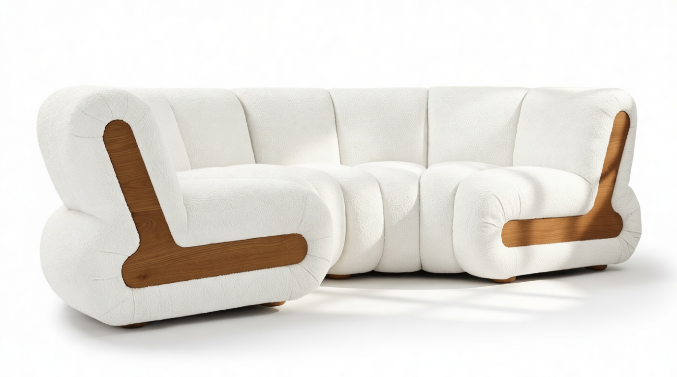 Indulge in the ultimate relaxation experience with the Rivière Sectional Sofa. Sink into its sumptuous Pearl Boucle cushions and unwind in elegance. This modular design lets you tailor your seating configuration to suit your space perfectly, allowing for both expansive lounge areas and cozy corners. Enhance your living space with the vintage charm of the Rivière Side Table, inspired by 1970s interiors, perfect for complementing the Rivière Sectional or as a standalone accent piece. The Rivière's unique profile effortlessly elevates any room, exuding refined grace and nostalgic allure. Crafted to adapt to your lifestyle, the Rivière Modular Sofa offers limitless possibilities for creating the perfect seating layout for your home.