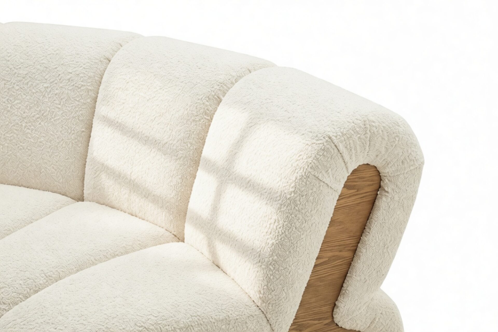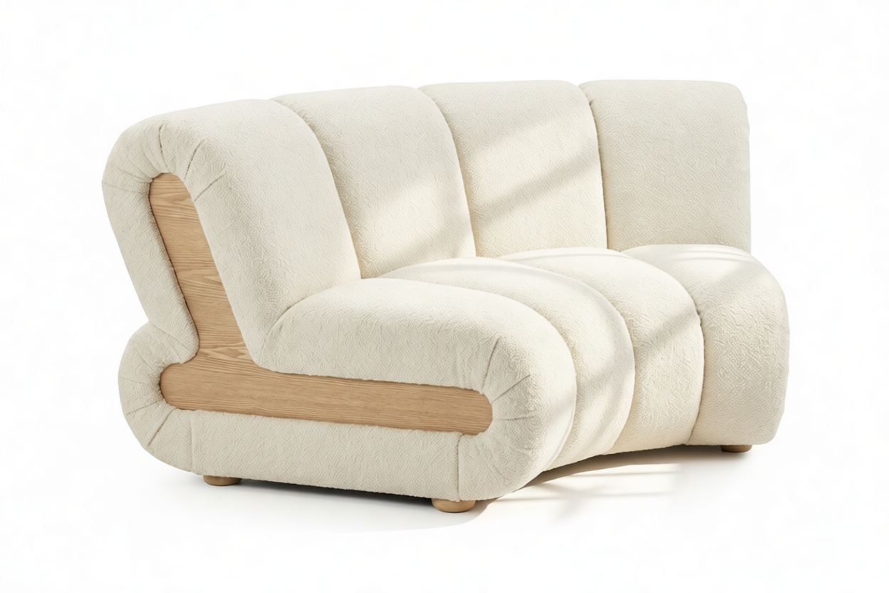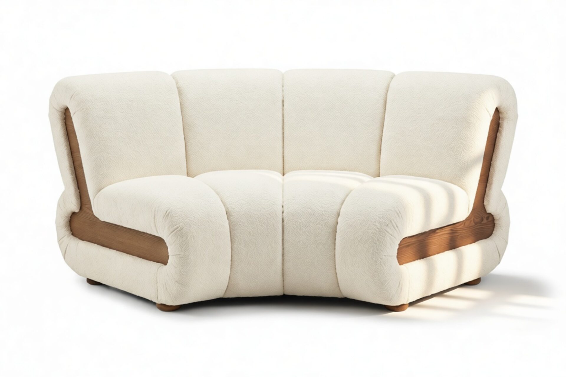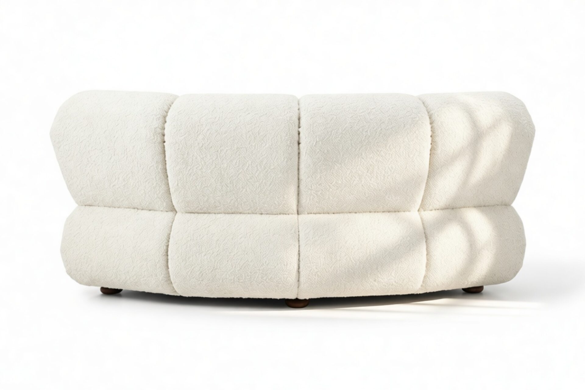 Indulge in luxurious relaxation with the Rivière Sectional Sofa's plush comfort and elegant design. Adaptable to any home decor, this versatile sofa offers a customized layout with straight and curved modules. Experience vintage vibes with the Rivière Side Table in Pearl Boucle, inspired by 1970s interiors to infuse your space with nostalgic charm and character.