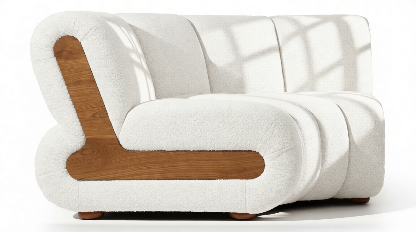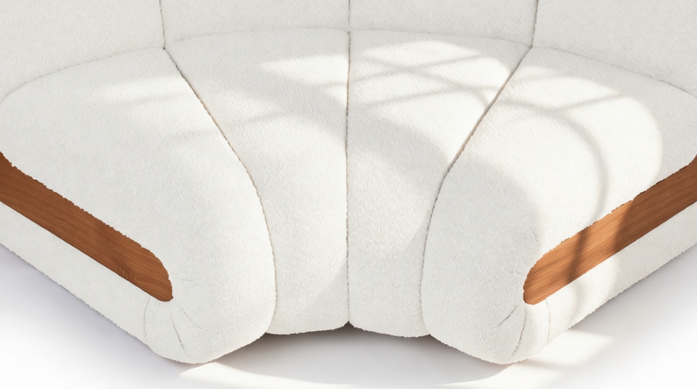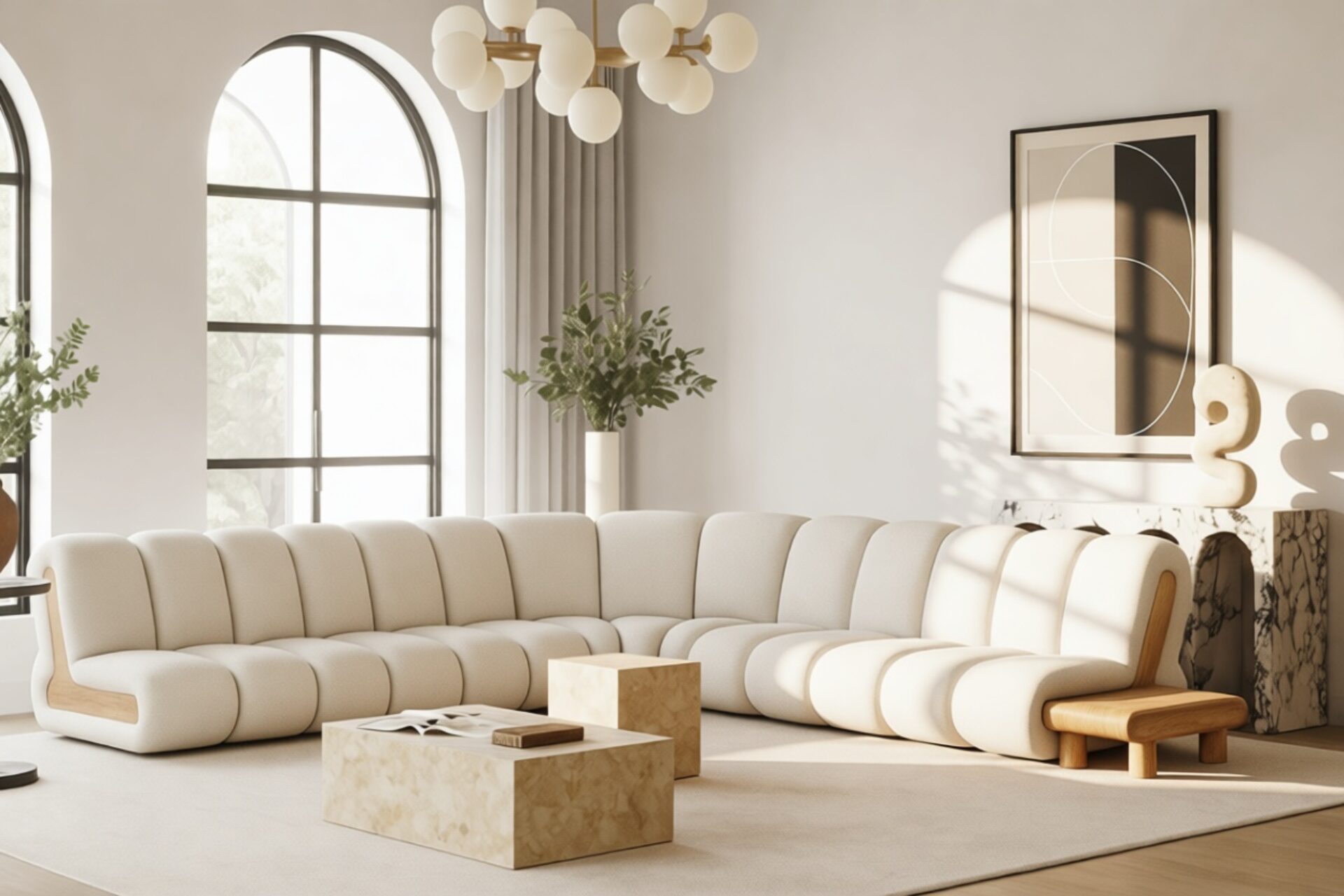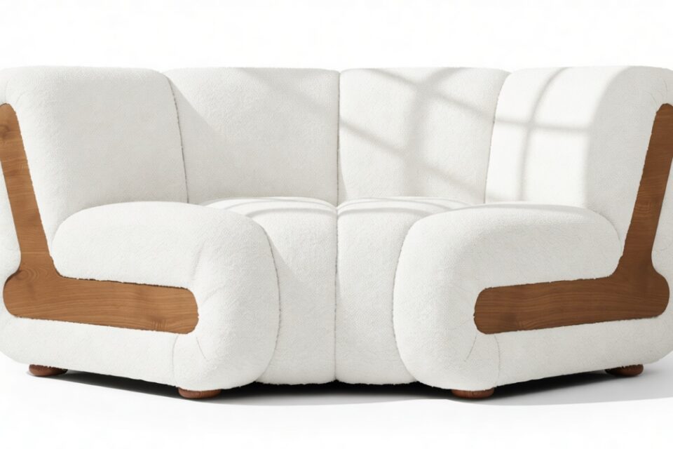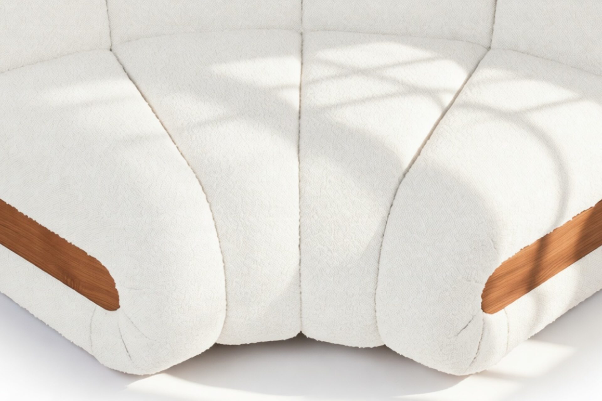 Indulge in luxurious relaxation with the Rivière Sectional Sofa's plush comfort and elegant design. Adaptable to any home decor, this versatile sofa offers a customized layout with straight and curved modules. Experience vintage vibes with the Rivière Side Table in Pearl Boucle, inspired by 1970s interiors to infuse your space with nostalgic charm and character.