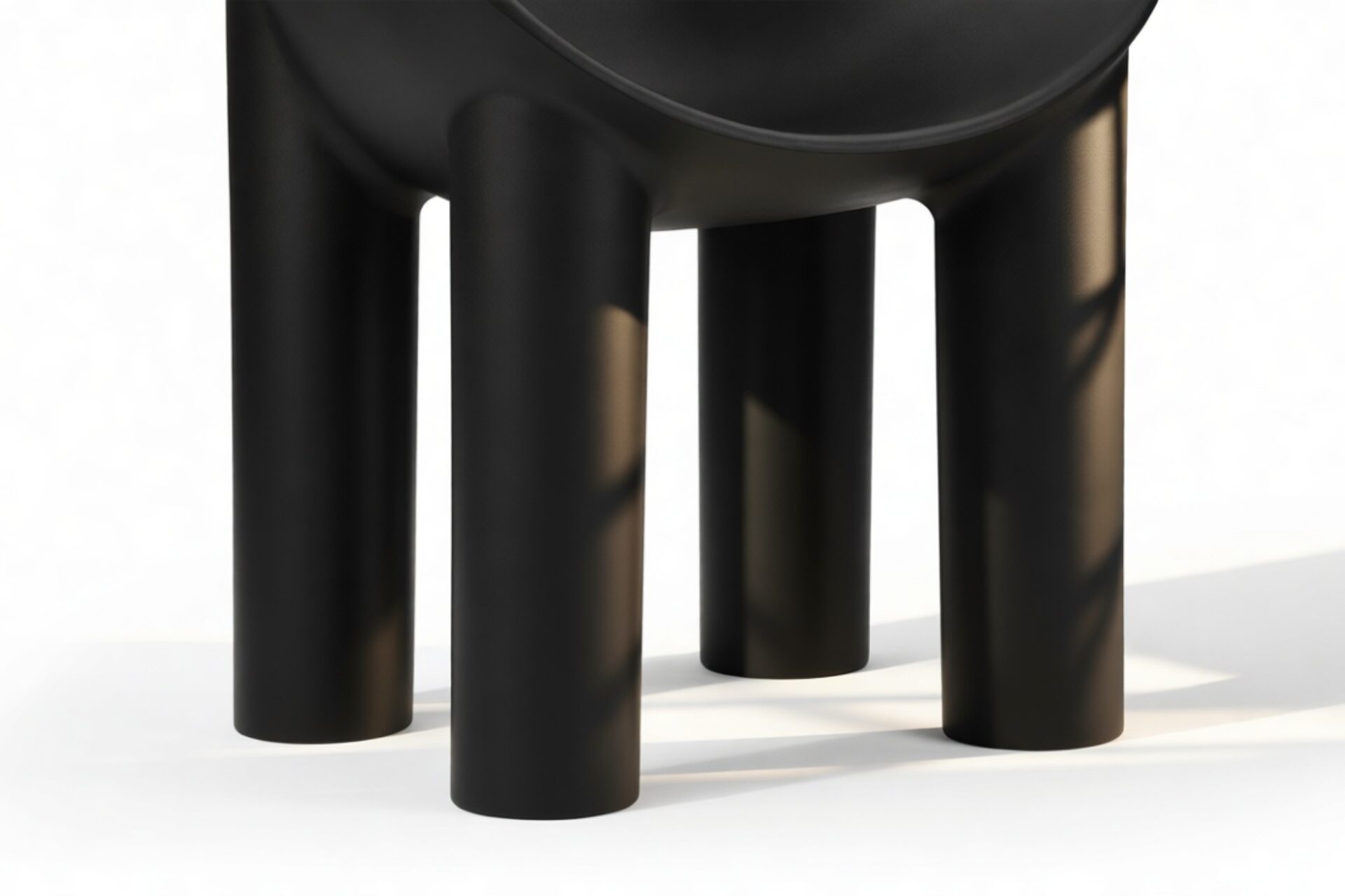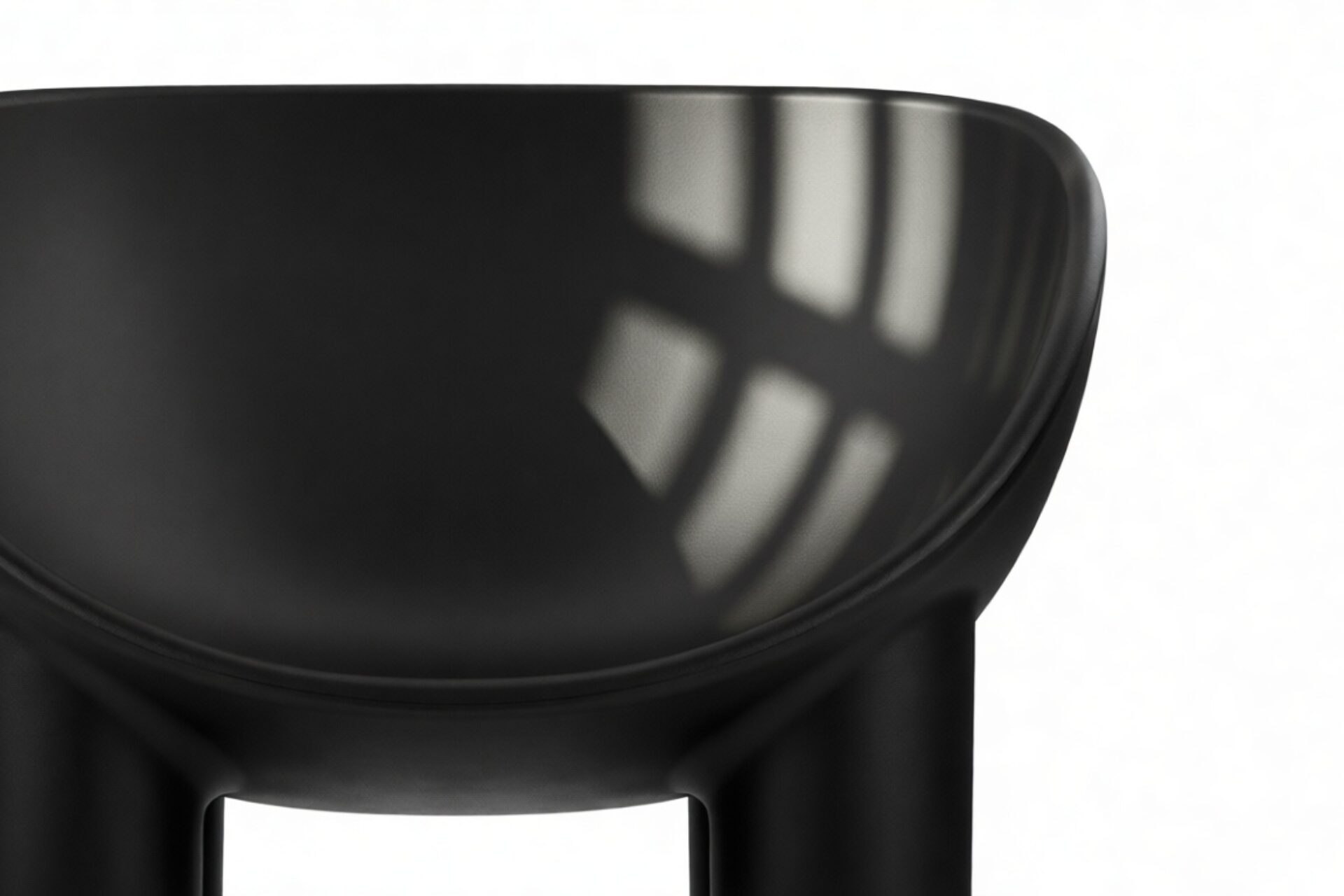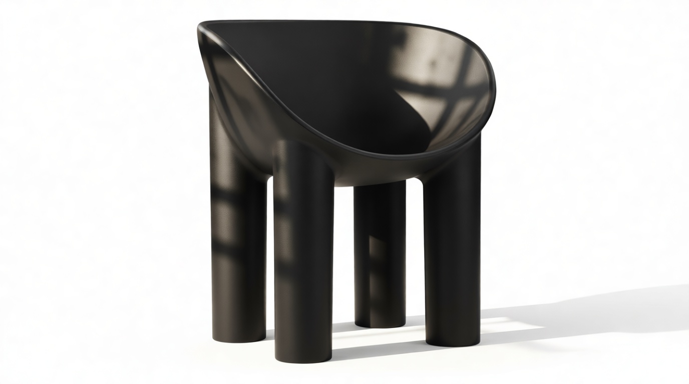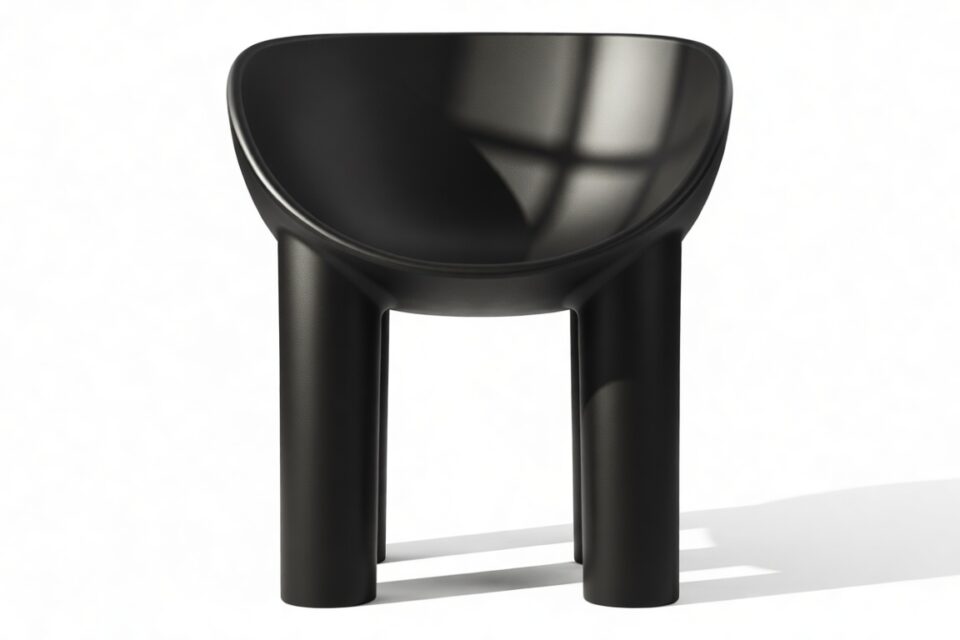 Indulge in modern sophistication and relaxation with the Roly Poly chair. Its distinctive rounded silhouette and deep bowl seat, seemingly chiseled from a solid block, create a cozy retreat. Featuring sturdy black legs that complement its curves, this chair blends geometric and organic shapes for a captivating charm. Crafted from black rotational-molded polyethylene, it delivers durability and style perfect for any indoor or outdoor space.