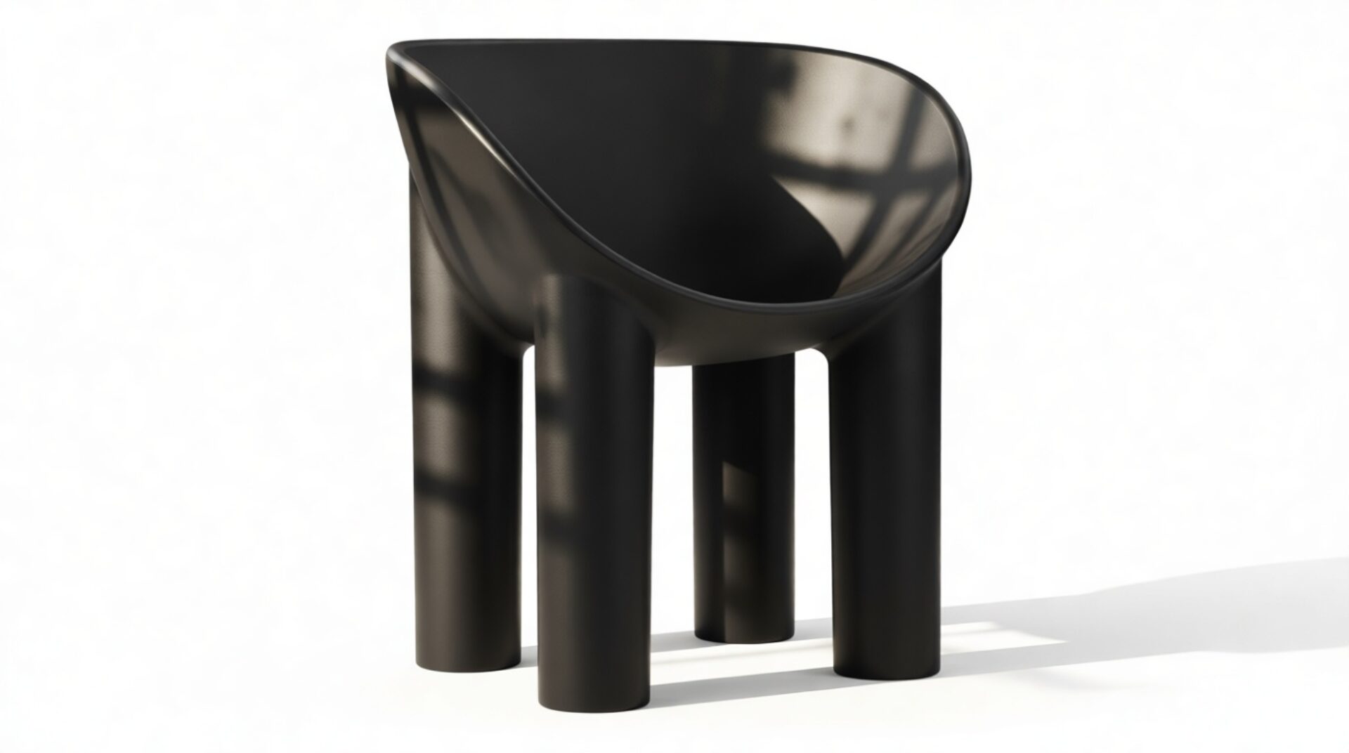 Experience modern aesthetics and comfort with the Roly Poly chair, a striking piece of furniture that captivates with its sculptural design. Instantly distinguished by its unique, rounded silhouette, this chair boasts a deep, bowl-like seat that gives the illusion of being hewn from a solid block. The result is a cozy, enveloping seat that beckons you to unwind and relax. Complementing the seat are the thick, sturdy legs, providing a strong foundation while playing off the gentle curves of the seat. The interplay of geometric and organic shapes imbues the Roly Poly chair with a distinct charm.
