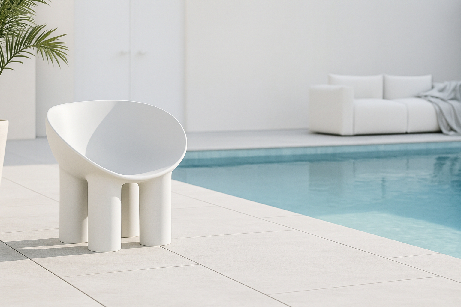Crafted from rotational-molded polyethylene, the Roly Poly chair combines lightweight construction with exceptional durability. This material selection not only enhances the chair's contemporary, industrial aesthetic but also ensures its versatility for both indoor and outdoor settings.