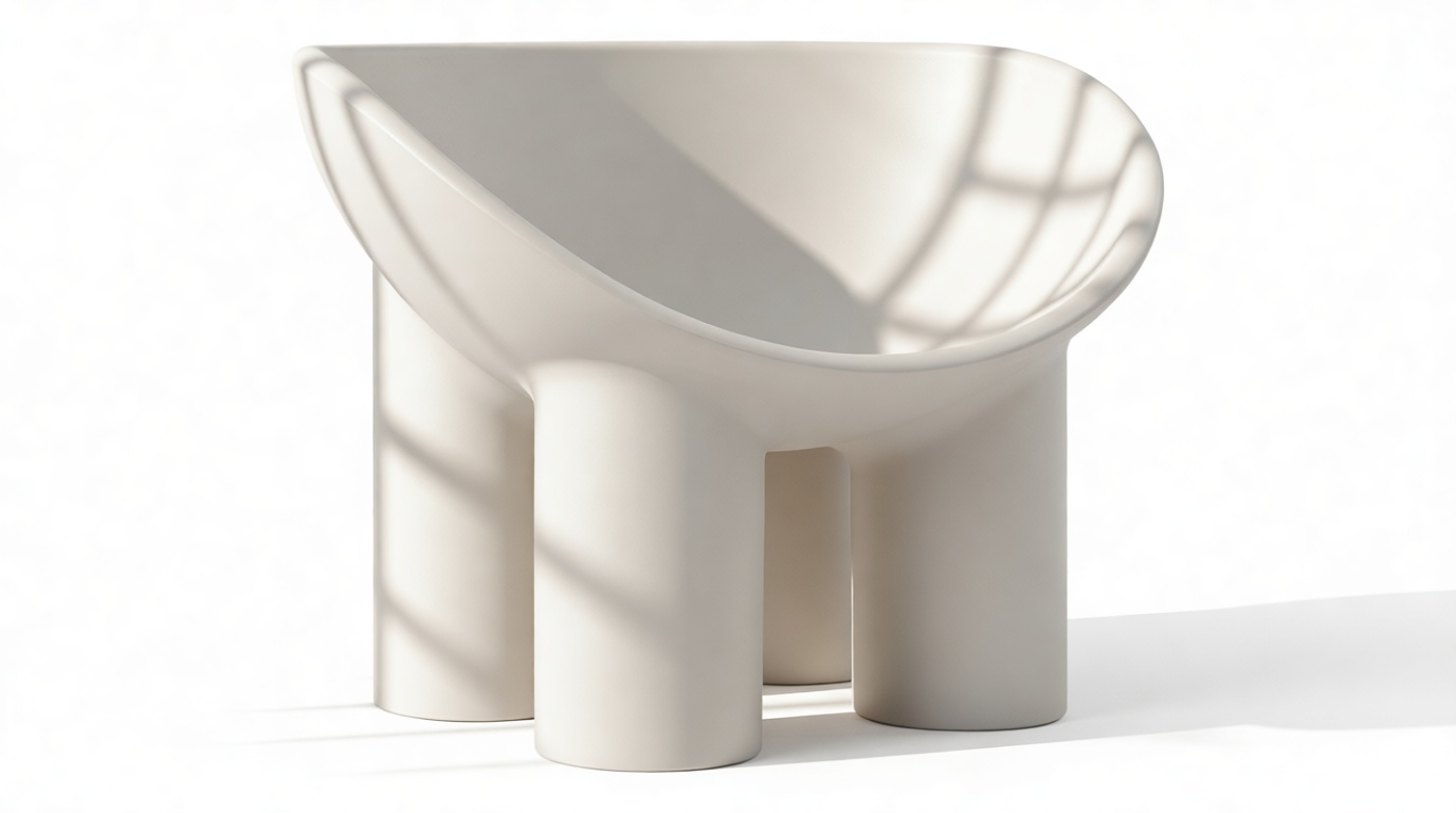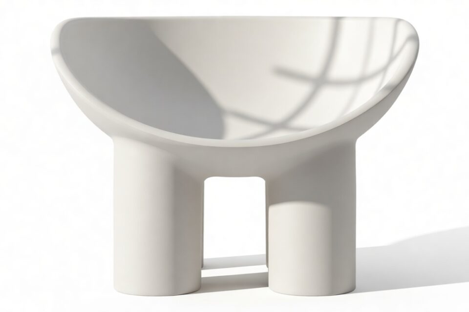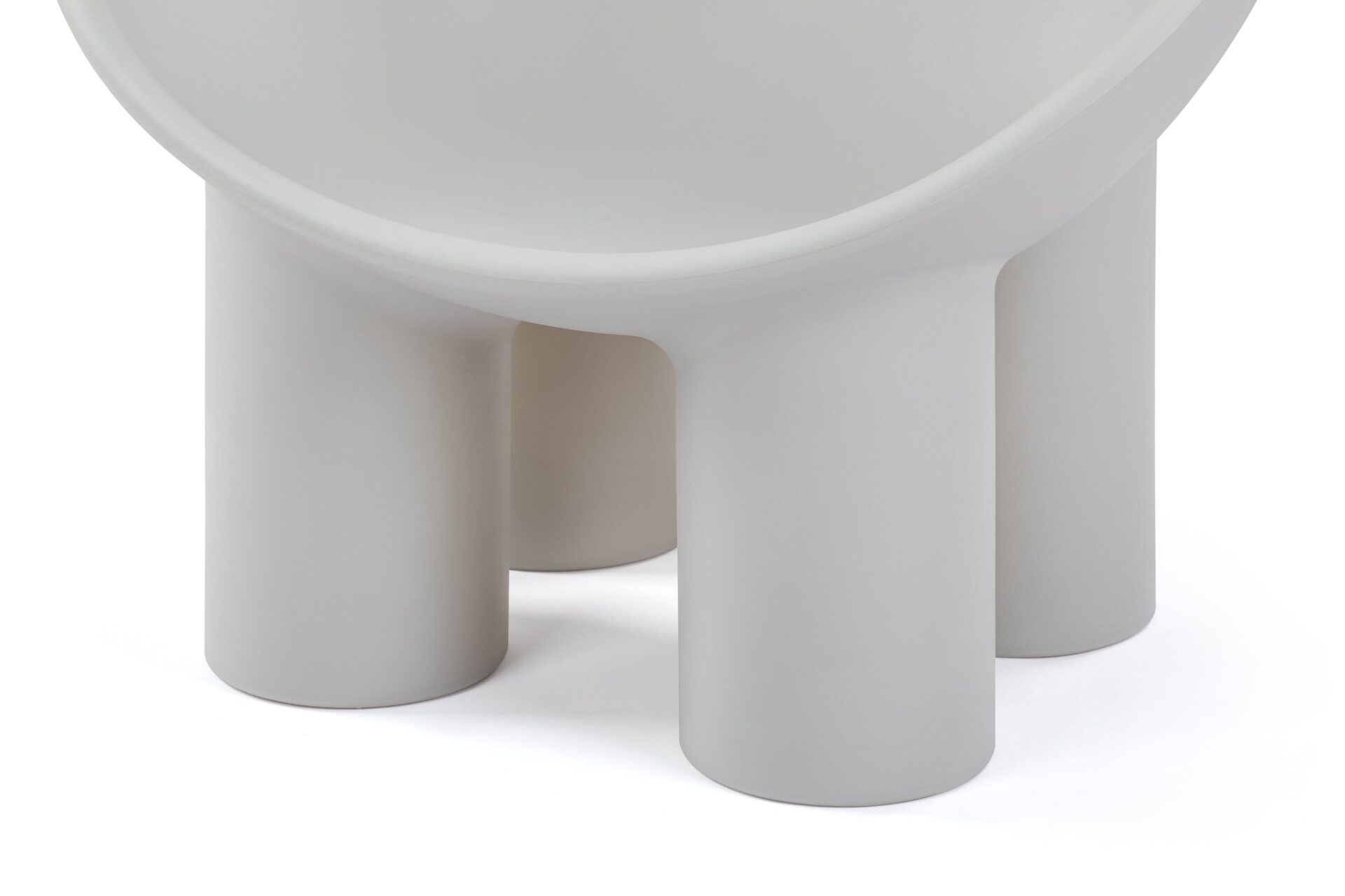 Experience modern aesthetic and comfort with the Roly Poly chair. Its sculptural form and unique rounded silhouette make it a standout piece of furniture. The deep, bowl-like seat creates a cozy cocoon effect, inviting relaxation. Sturdy legs contrast elegantly with the soft curves of the seat, blending geometric and organic shapes to define the chair's distinctive character.