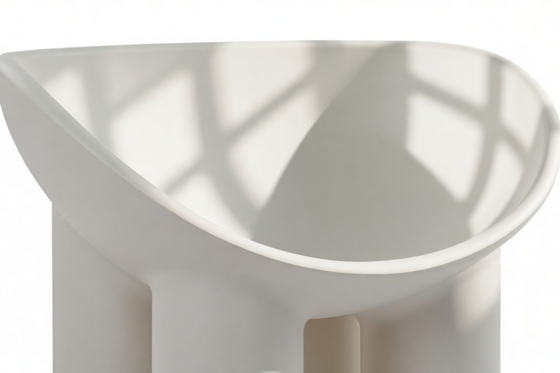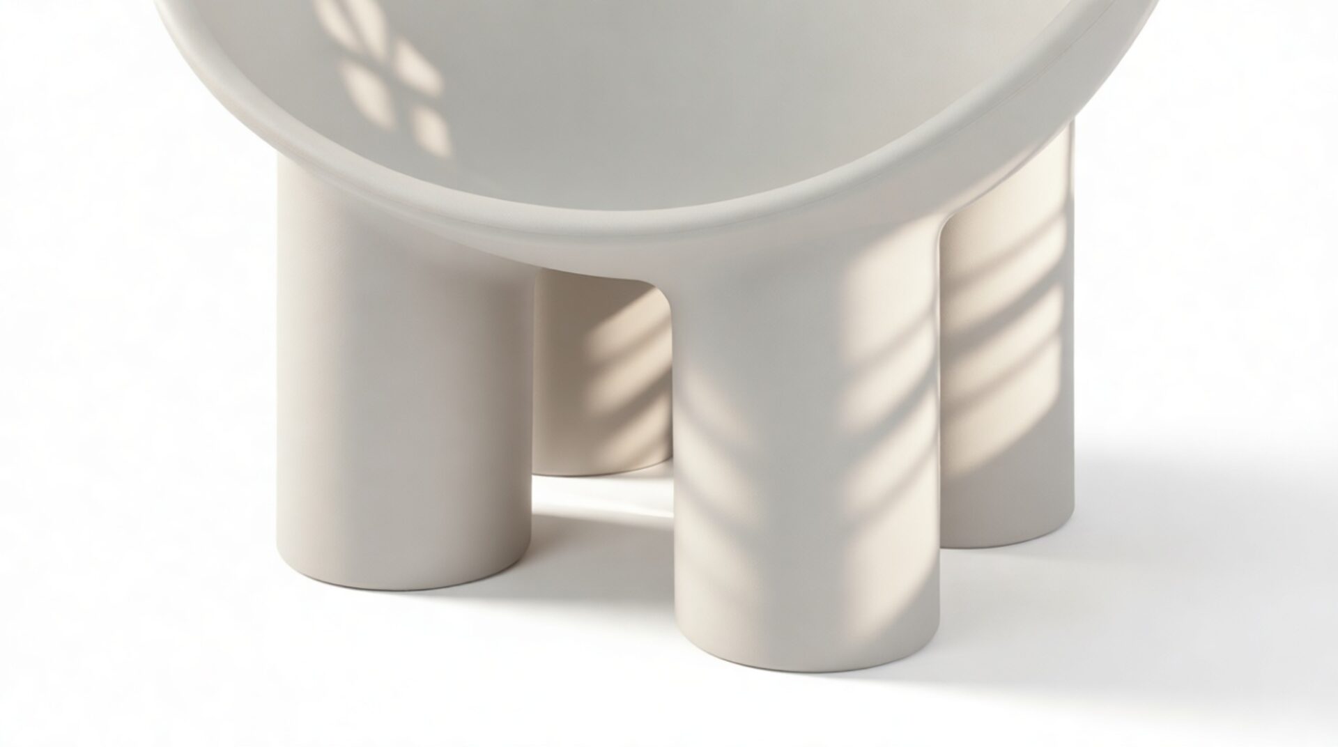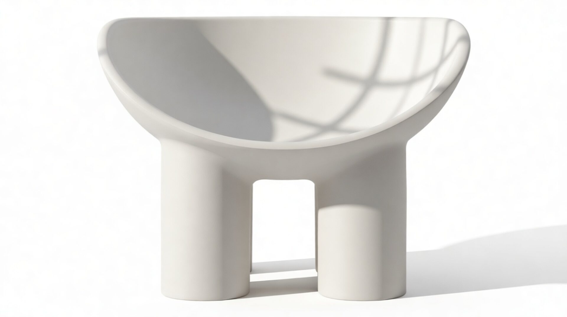 Experience modern aesthetic and comfort with the Roly Poly chair. Its sculptural form and unique rounded silhouette make it a standout piece of furniture. The deep, bowl-like seat creates a cozy cocoon effect, inviting relaxation. Sturdy legs contrast elegantly with the soft curves of the seat, blending geometric and organic shapes to define the chair's distinctive character.