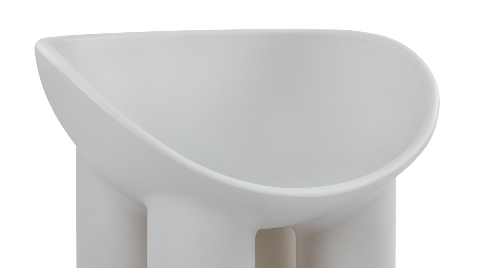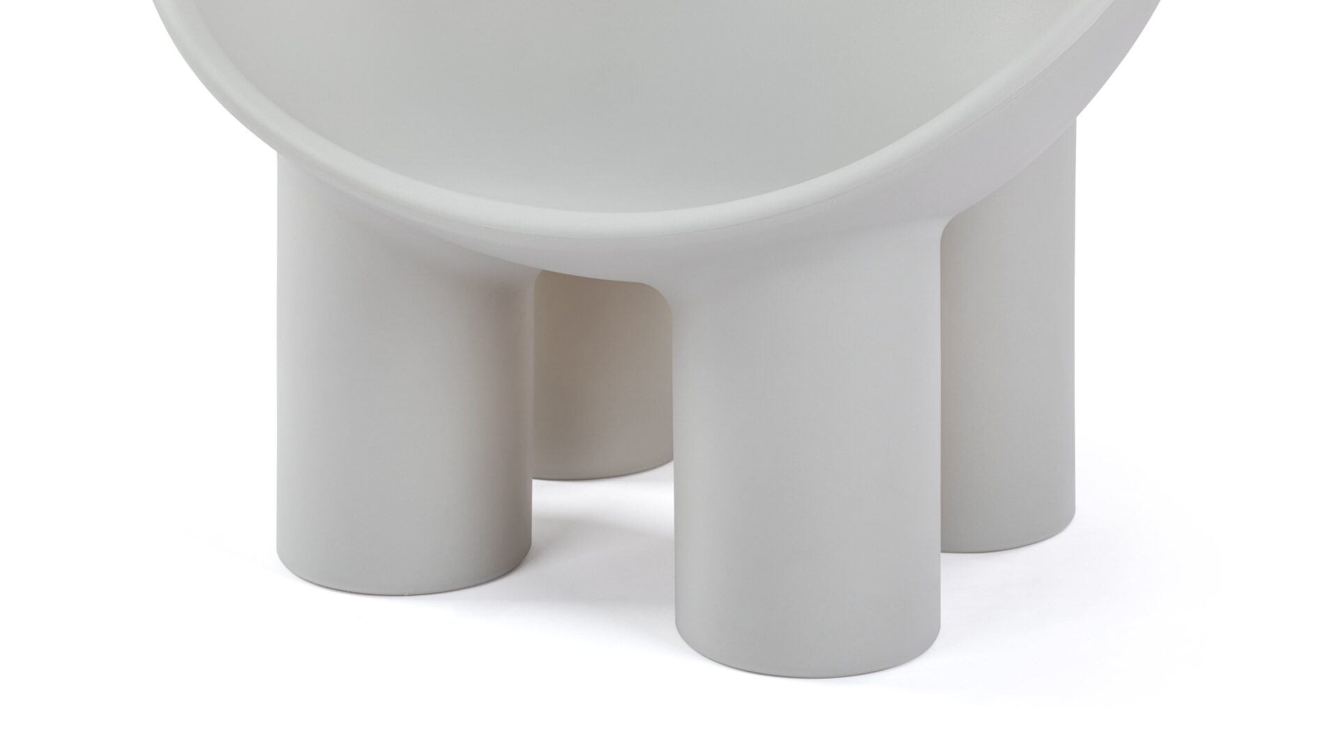 Elevate your space with the sleek and inviting Roly Poly chair in Warm Gray. This modern masterpiece boasts a sculptural silhouette that harmoniously blends organic curves with geometric details. Crafted from durable rotational-molded polyethylene, it offers lightweight versatility for both indoor and outdoor use. Experience comfort and style at its finest with this exceptional furniture piece.