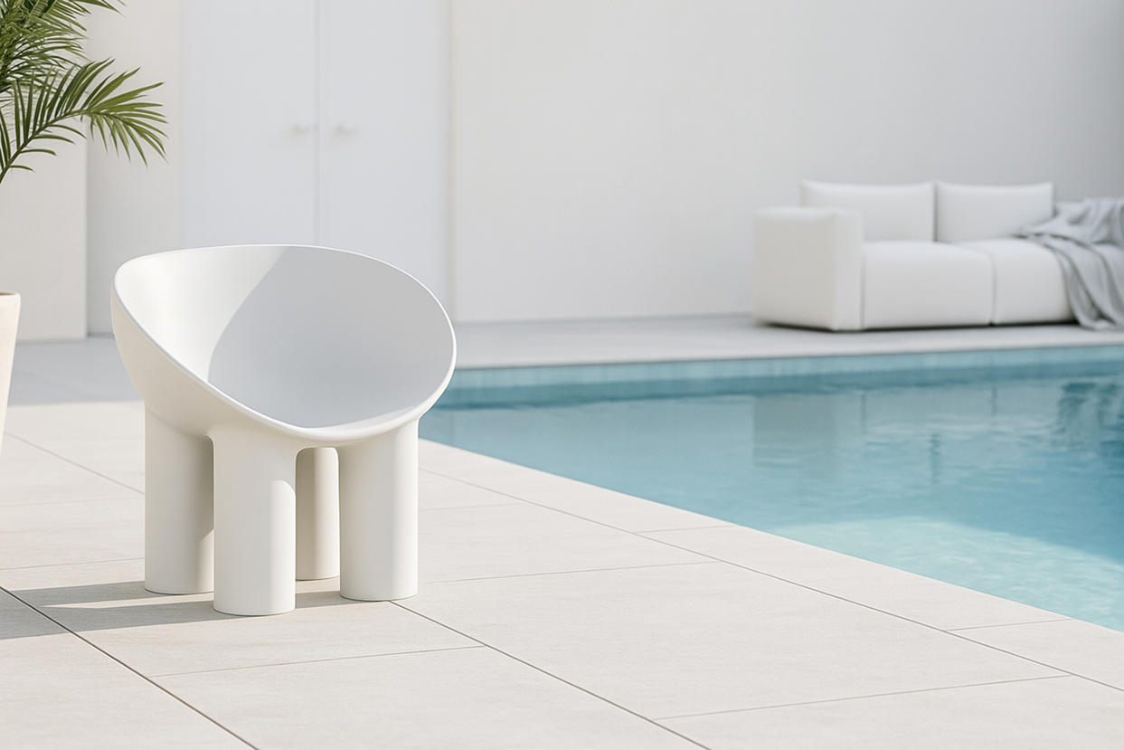 Crafted from rotational-molded polyethylene, the Roly Poly chair combines lightweight construction with exceptional durability. This material selection not only enhances the chair's contemporary, industrial aesthetic but also ensures its versatility for both indoor and outdoor settings.