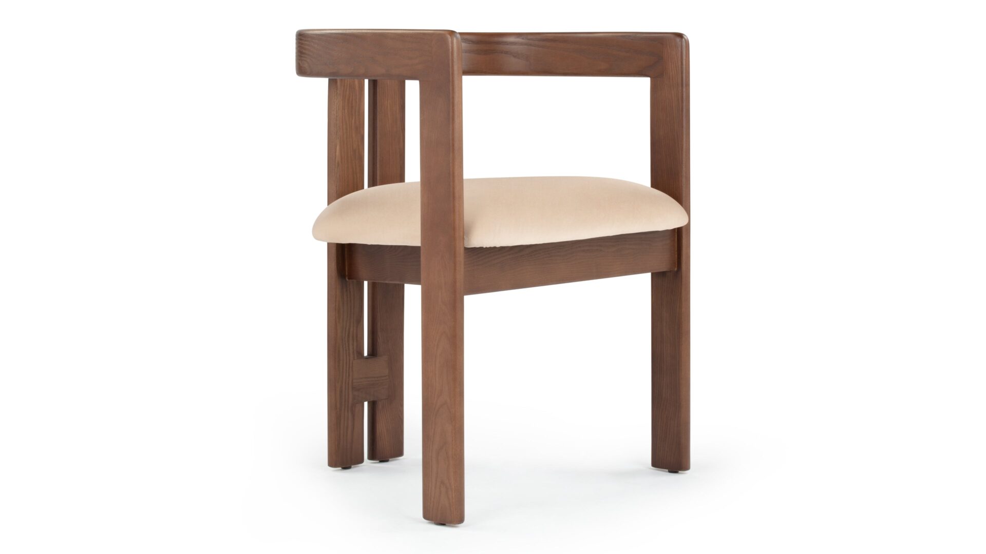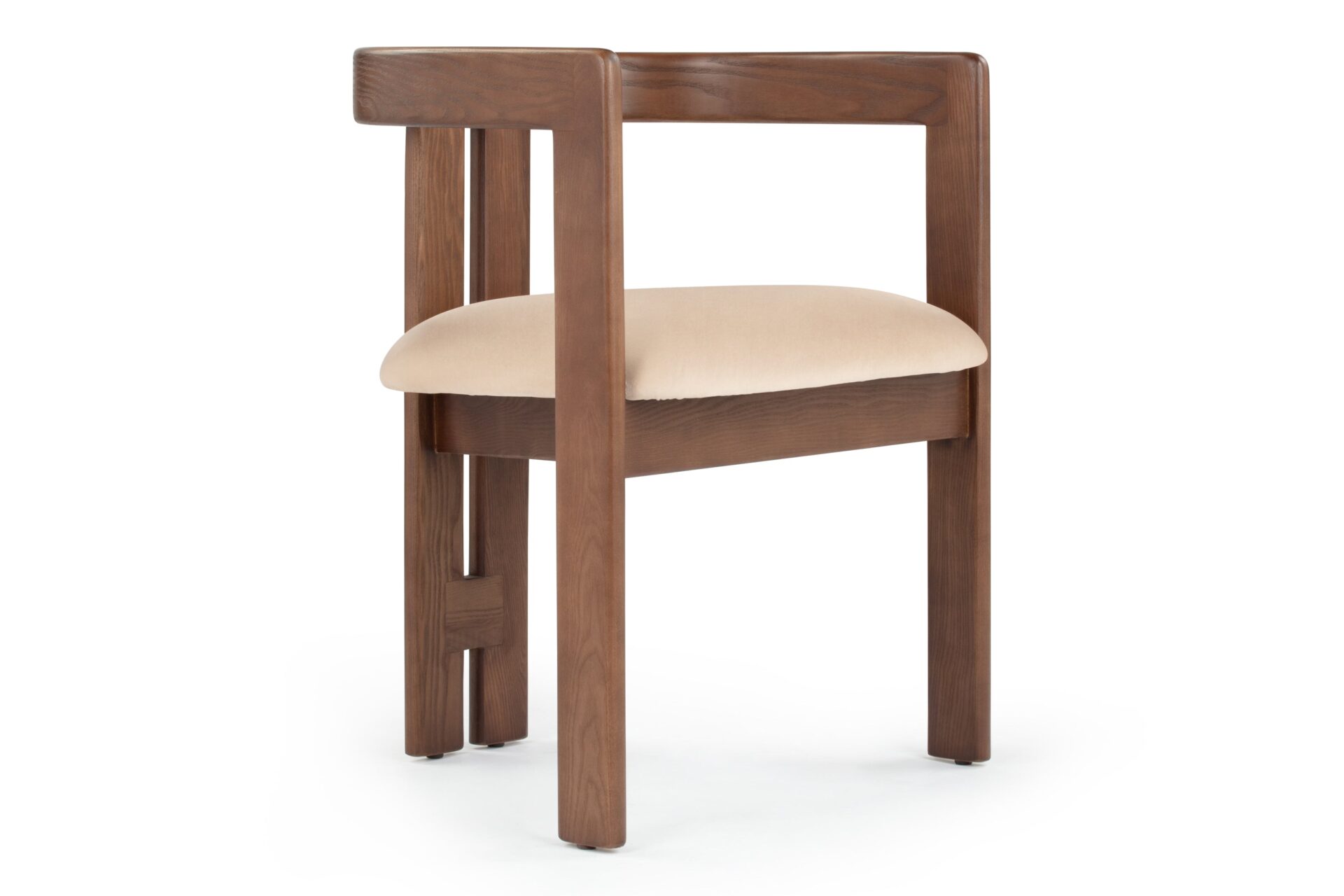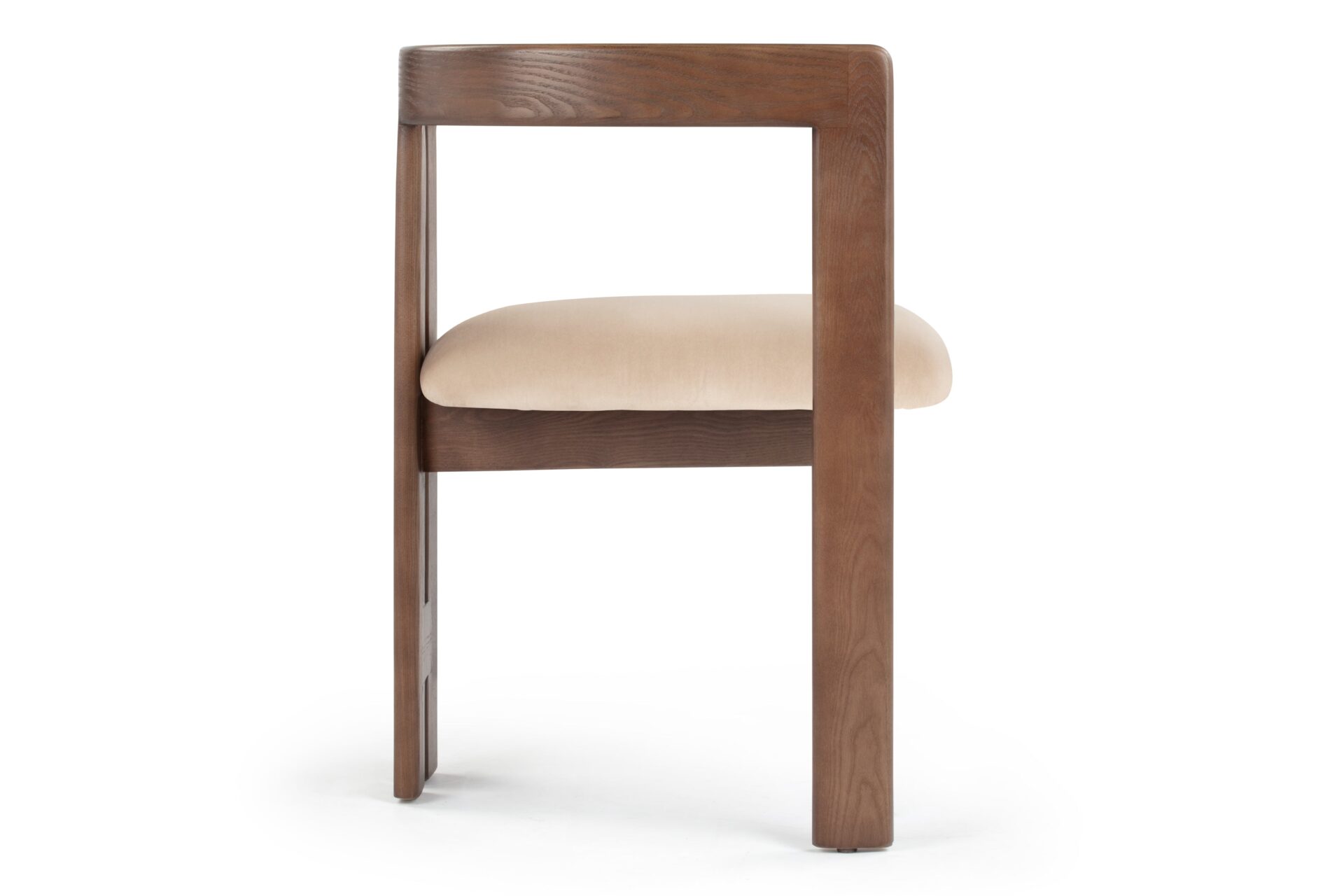 Indulge in sophisticated dining elegance with the Rose Dining Chair. Seamlessly blending contemporary aesthetics with timeless allure, the Rose Dining Chair transcends mere furniture to become a symbol of sophistication and comfort. Anchored by a durable yet graceful walnut frame, each curve radiates warmth and character. The natural richness of the walnut wood lends an air of luxury to any dining area, elevating it with refined opulence. The gracefully contoured arms not only enhance visual appeal but also offer unparalleled support, beckoning you to relax and luxuriate in the moment.