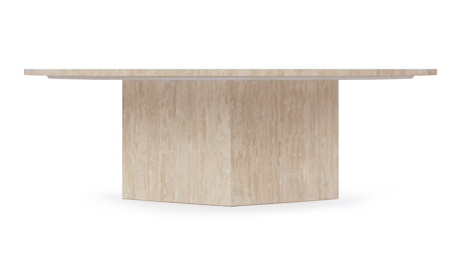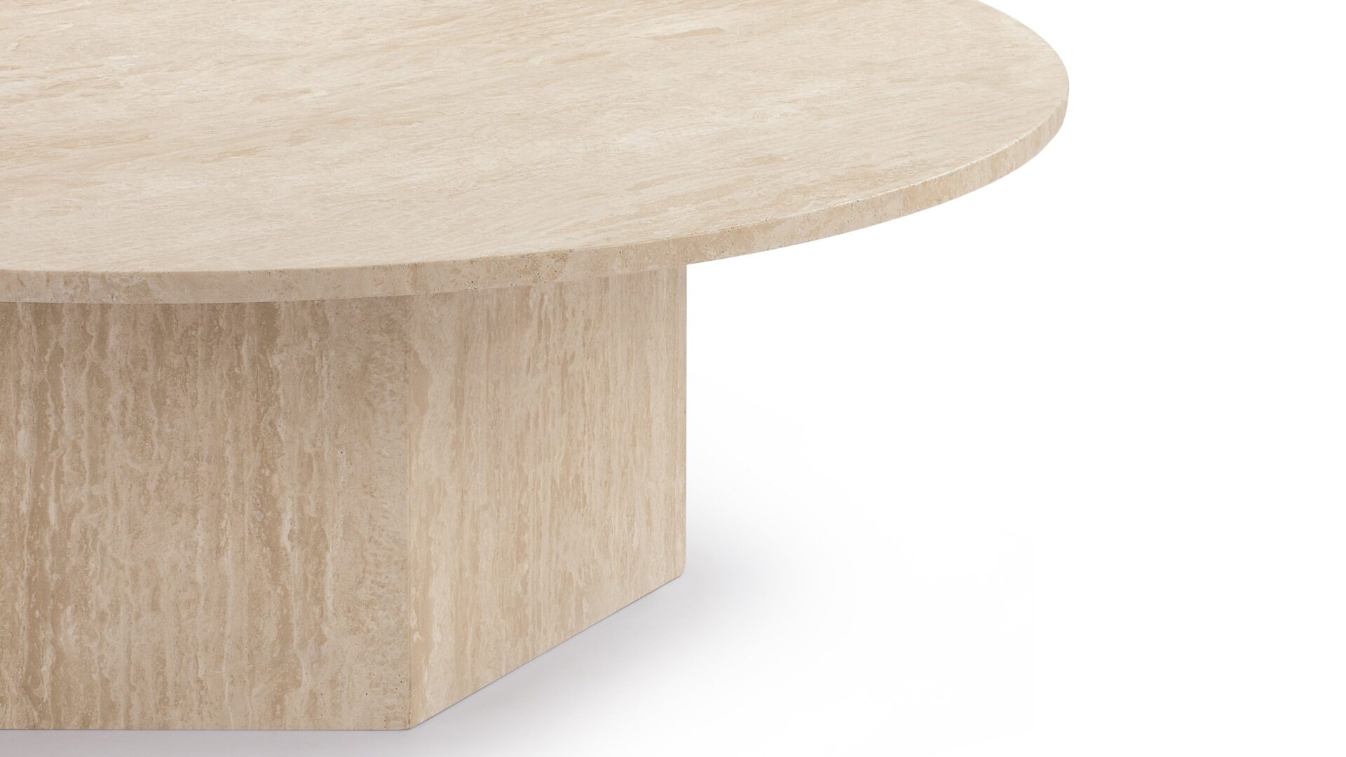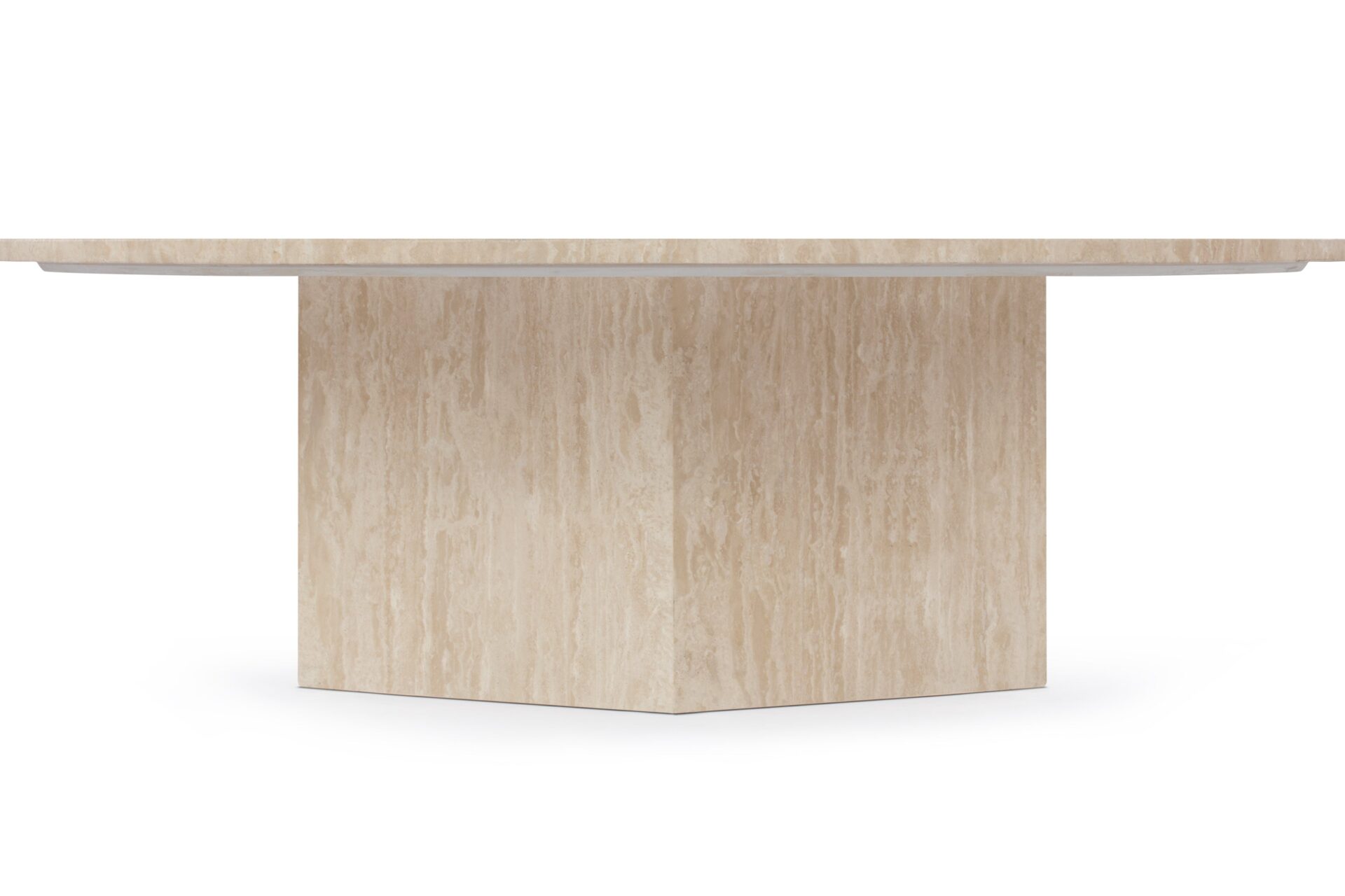 Inspired by ancient Roman architecture, the Saga Coffee Table seamlessly marries contemporary style with minimalist design. The smooth travertine top elegantly contrasts the angular base, showcasing the stone's rich texture, veining, and color variations. With a hexagonal plinth base providing ample room, this exquisite table celebrates the opulence of natural travertine, creating a versatile and sophisticated centerpiece.