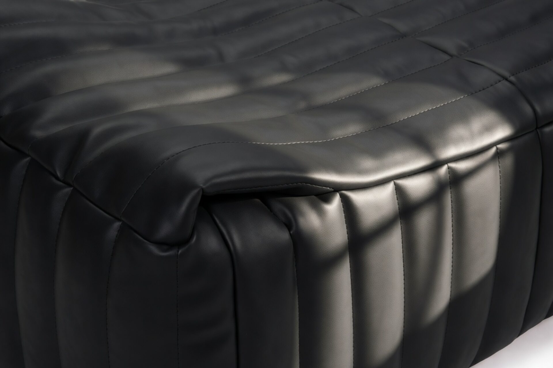 Unveil a realm of understated sophistication and practicality with the Sandra Ottoman in sleek Black Vegan Leather. Crafted with artisan quality and thoughtfully designed, this piece seamlessly enhances both modern and classic interiors, embodying timeless elegance. Experience fine craftsmanship in its sculpted silhouette, sumptuous cushioning, and refined details that exude unparalleled artistry and sophistication, creating a captivating statement piece for any room. Elevate your living space with the Sandra Ottoman, a true embodiment of elegance and comfort.