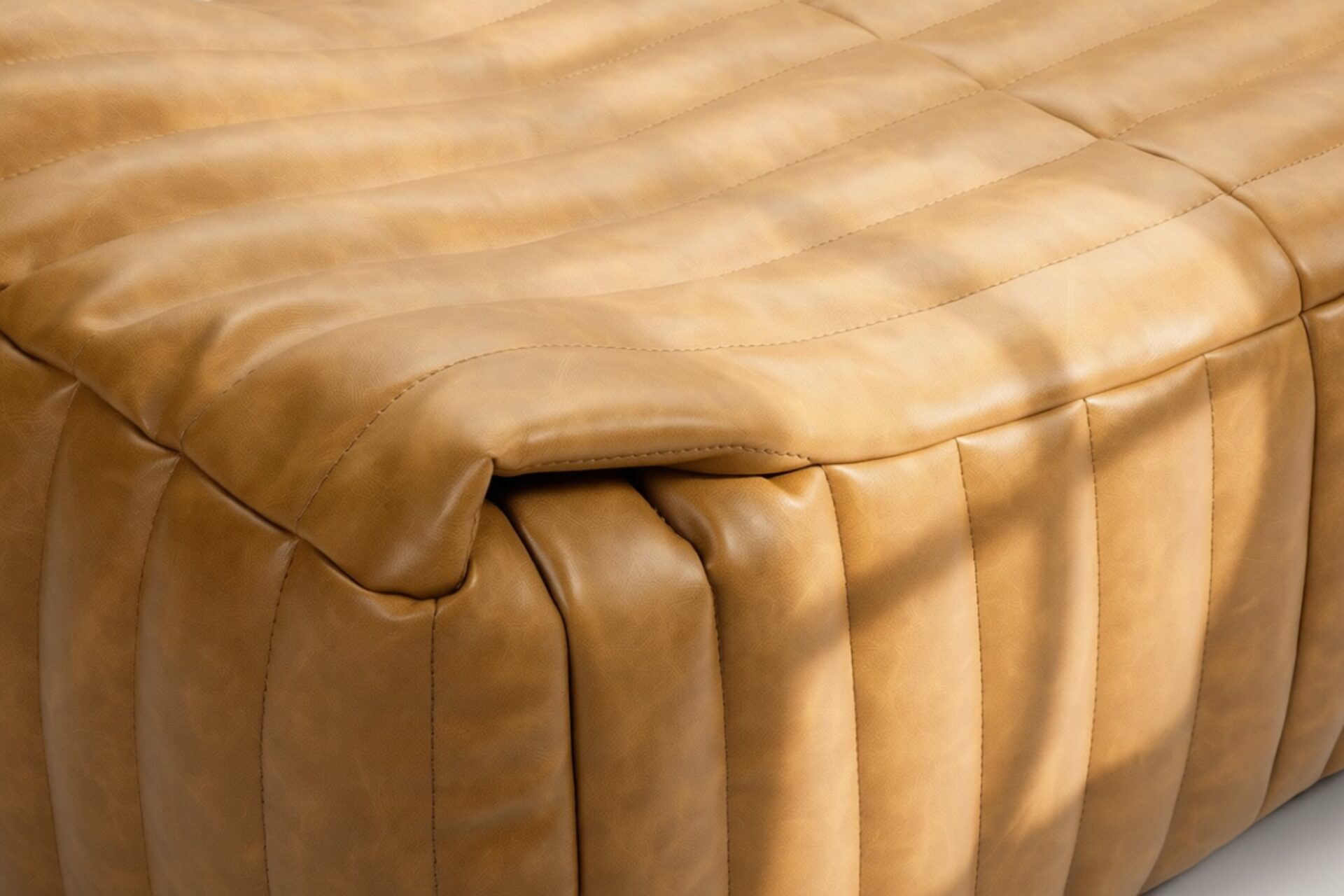 Elevate your living space with the versatile functionality and understated elegance of the Sandra Ottoman in Tan Vegan Leather. With its minimalist silhouette and clean lines, this ottoman effortlessly enhances any interior style. Meticulously crafted with high-quality materials, it ensures durability and comfort, offering a cozy spot for resting tired feet or serving as extra seating for guests.