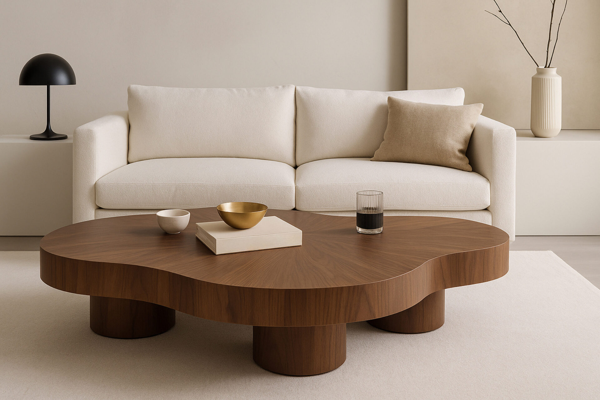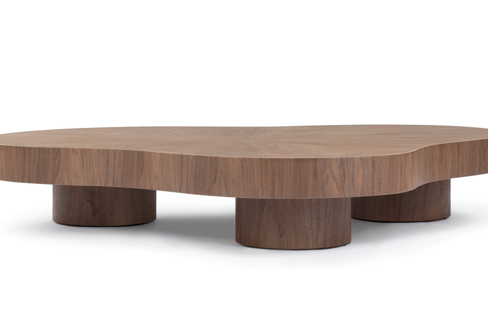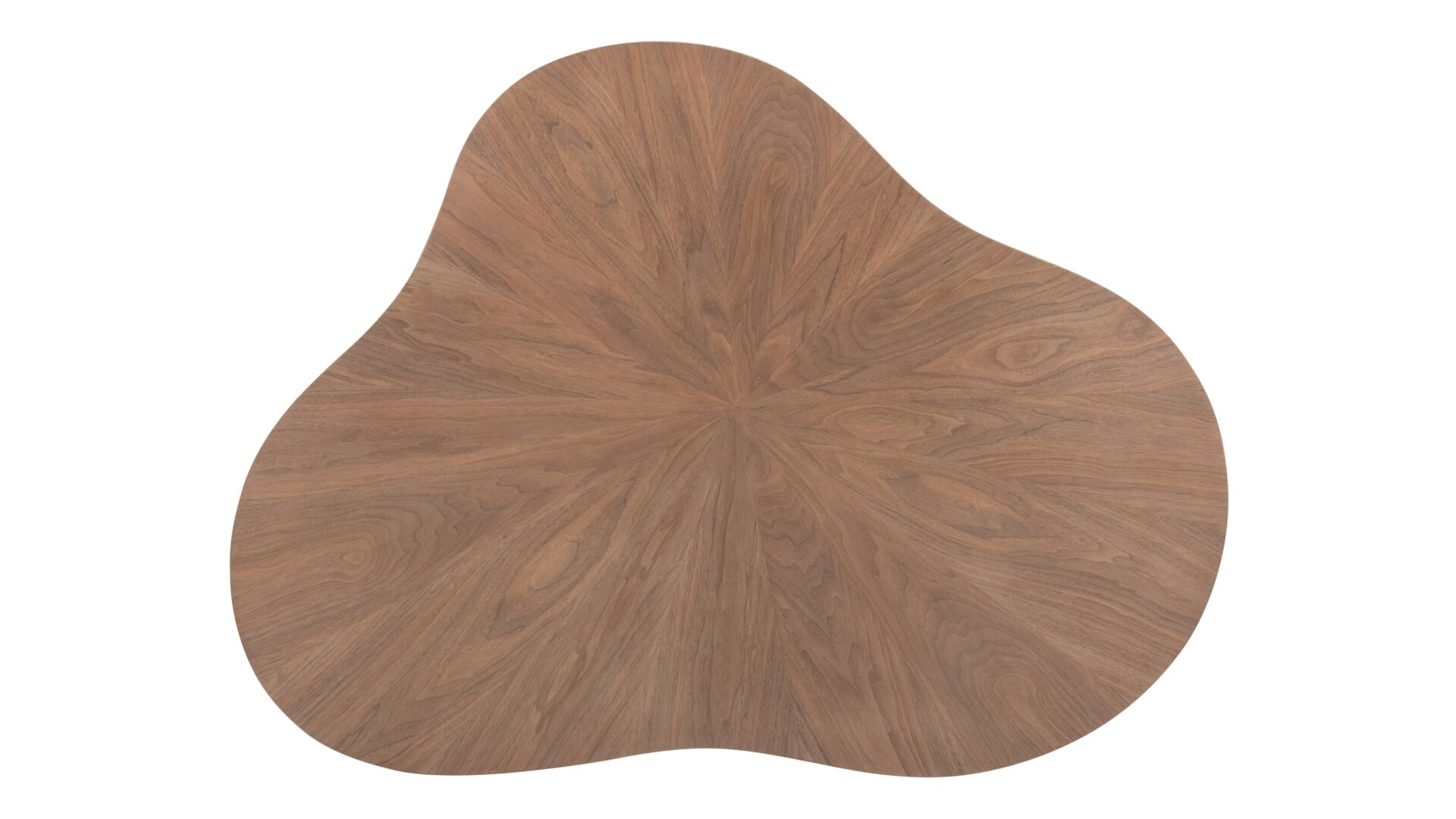 Discover the striking Santo Coffee Table featuring a stylish wavy-shaped tabletop and broad, low legs, crafting a visually captivating furnishing that effortlessly enhances any contemporary space. With its elegant walnut finish and distinctive design, it serves as a sophisticated statement piece for your home.