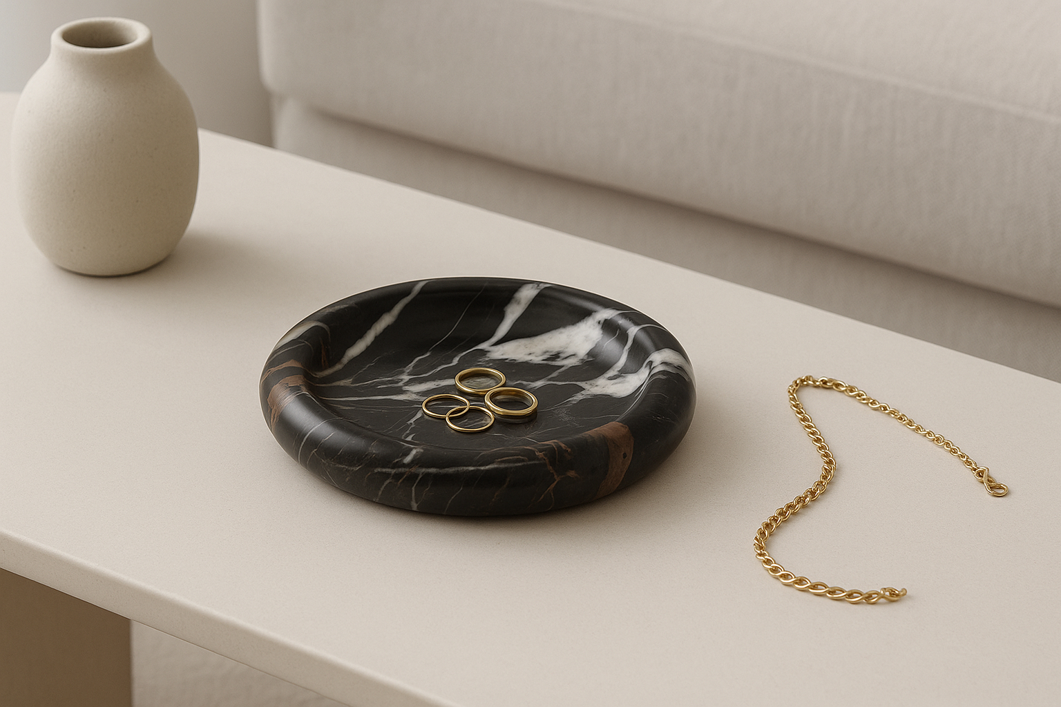 Crafted from exquisite solid marble, this tray highlights distinct veining and natural patterns, ensuring each piece is a one-of-a-kind masterpiece.