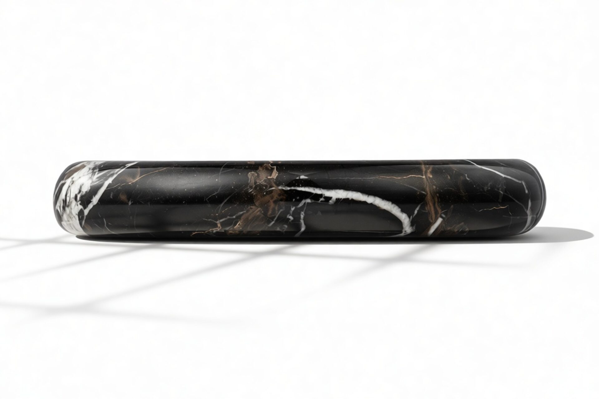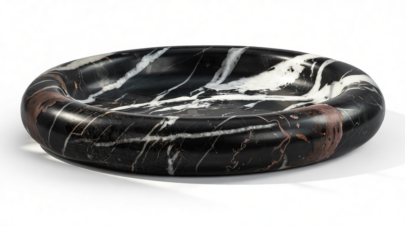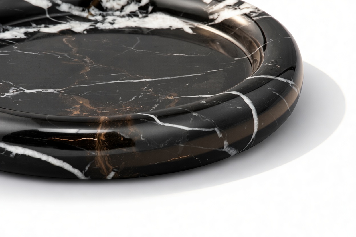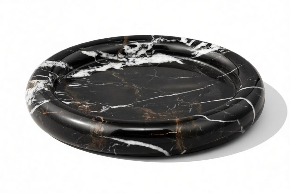 Experience a modern aesthetic with the rounded design of the Sardinia Tray, blending minimalist curves with the classic elegance of polished marble.