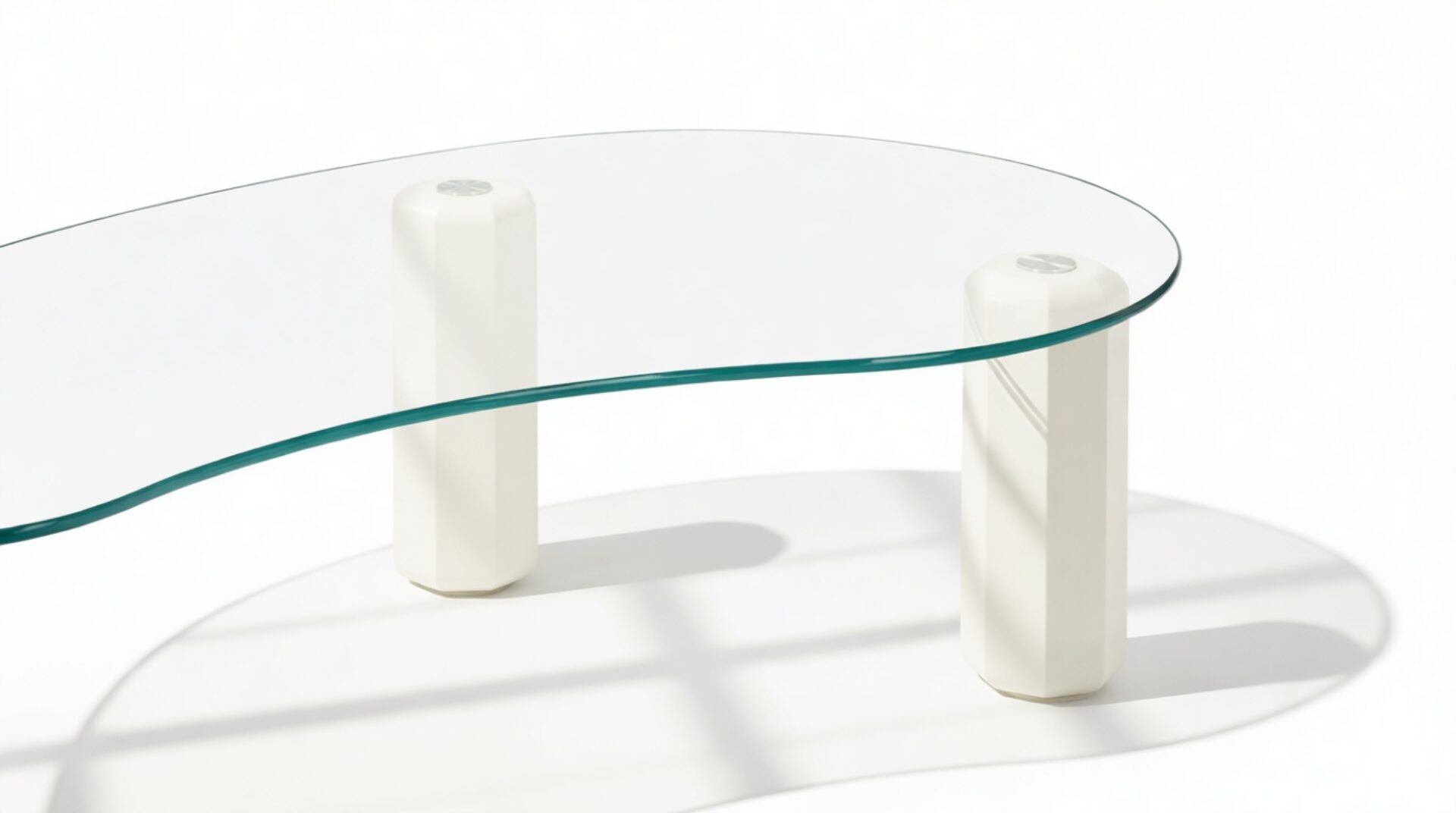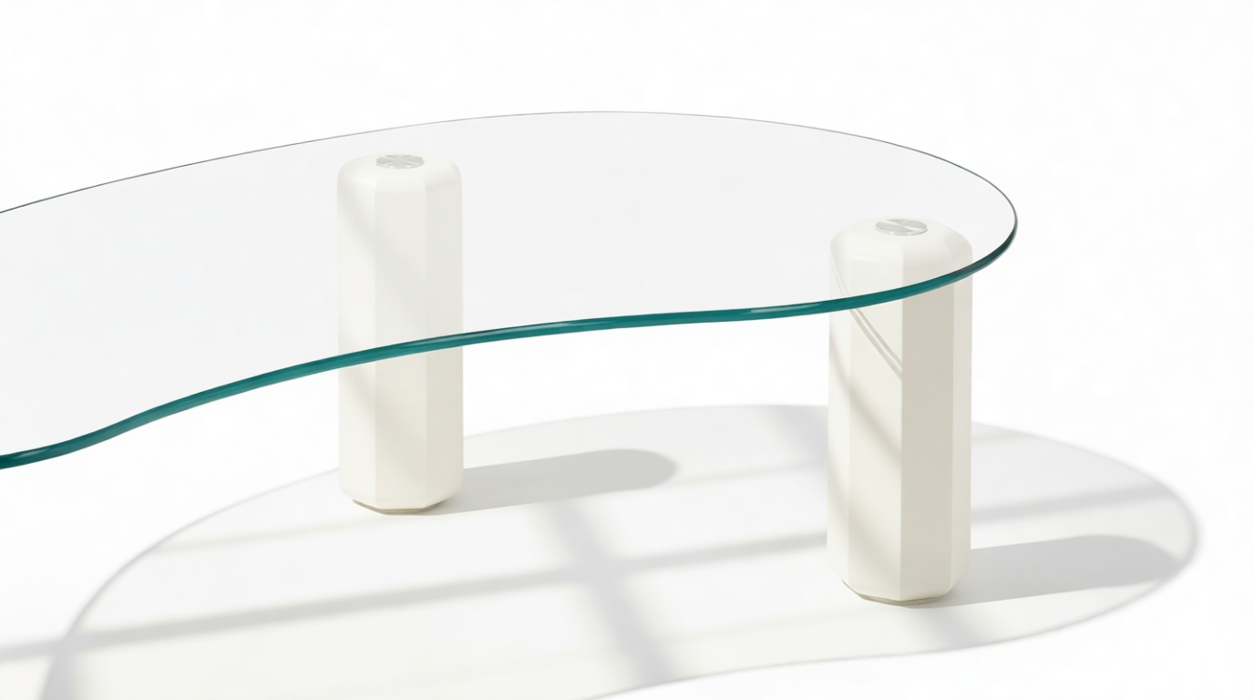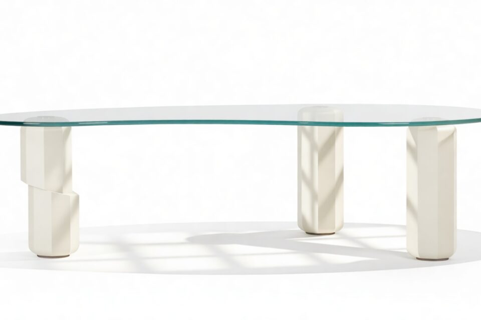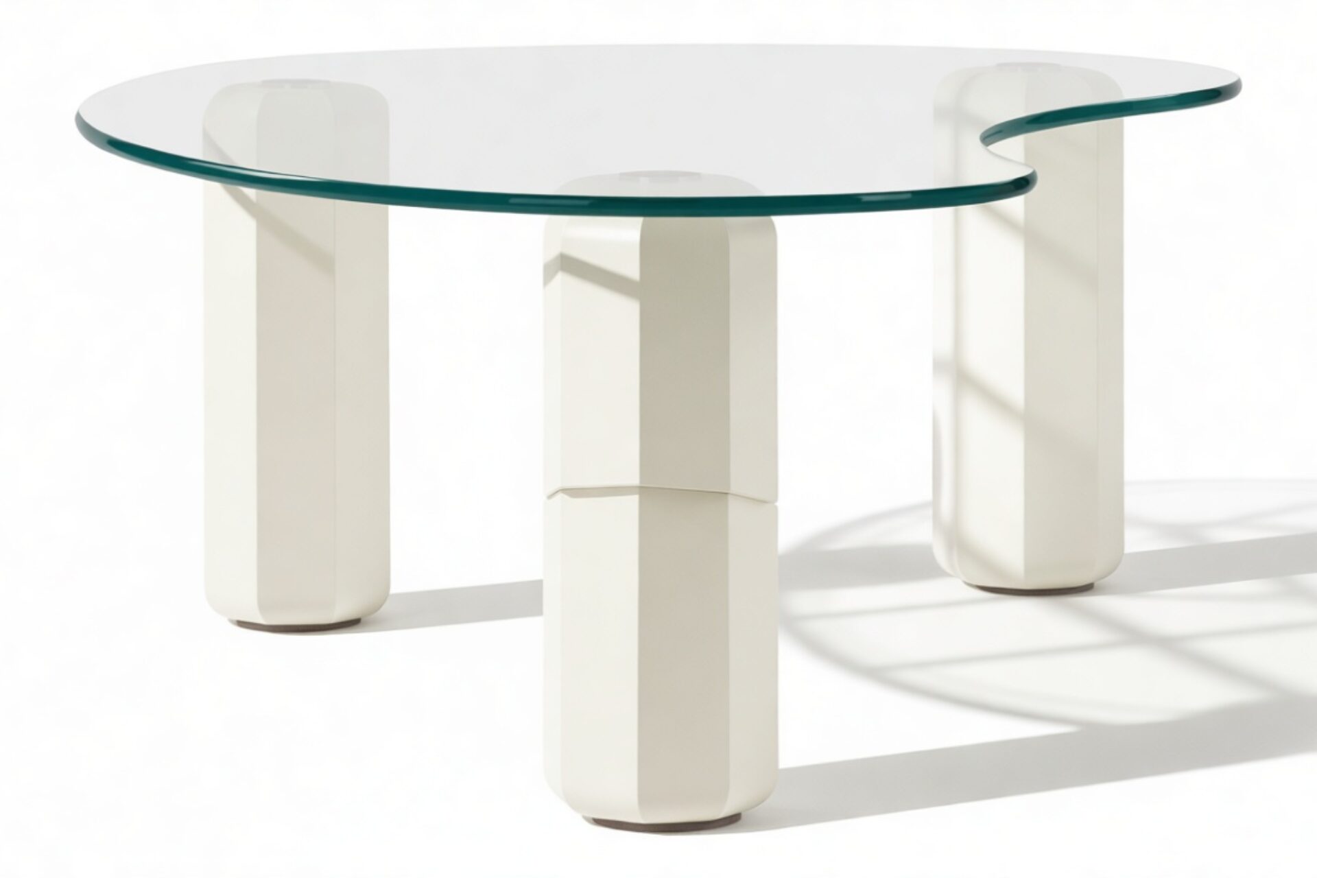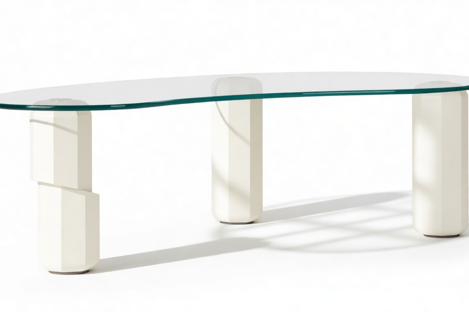 Discover the perfect blend of functionality and style with our range of wide-legged tables, featuring a sleek glass surface. The unique wave-like shapes and rounded edges of our tabletops perfectly complement the sturdy, commanding legs.