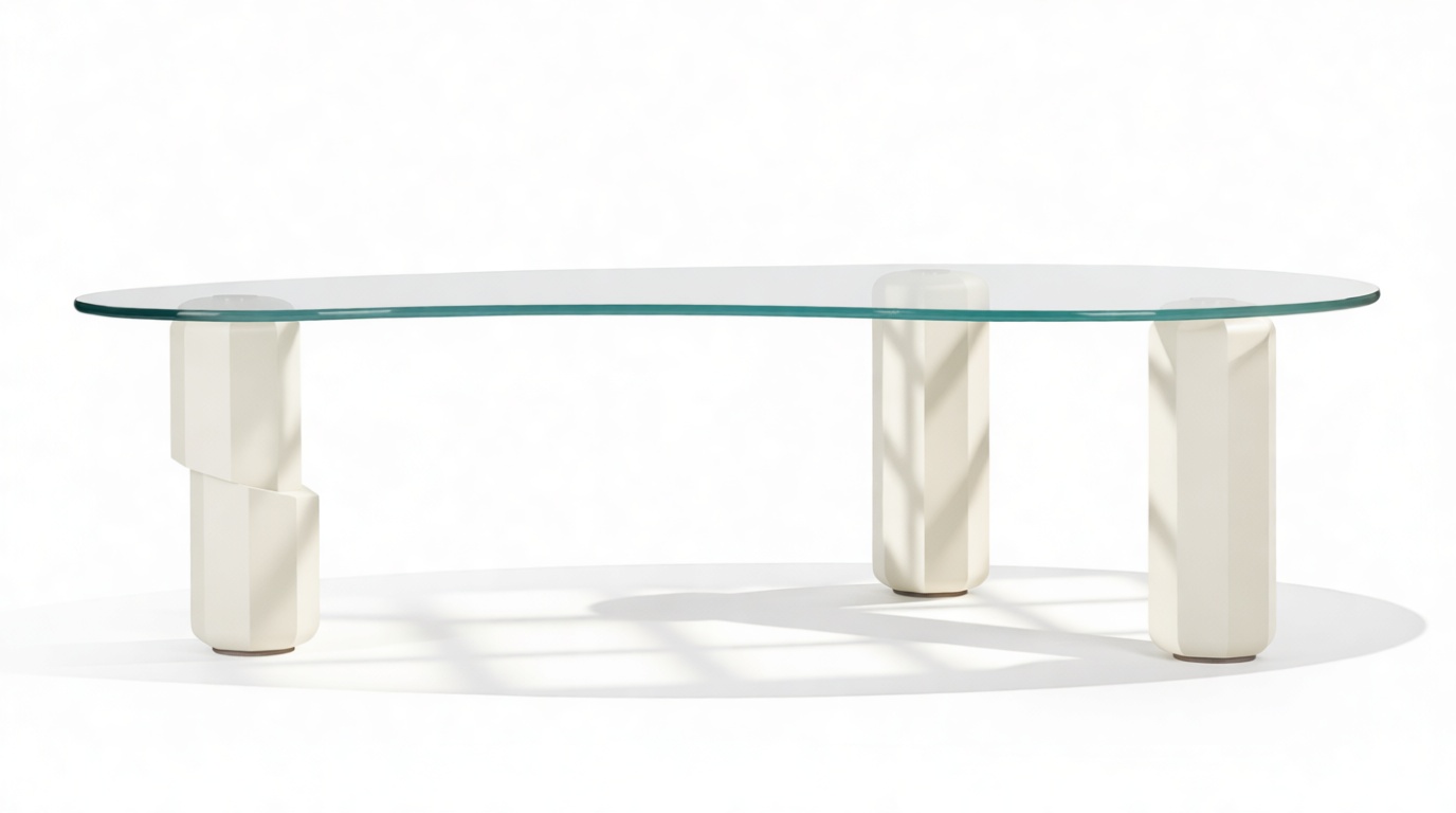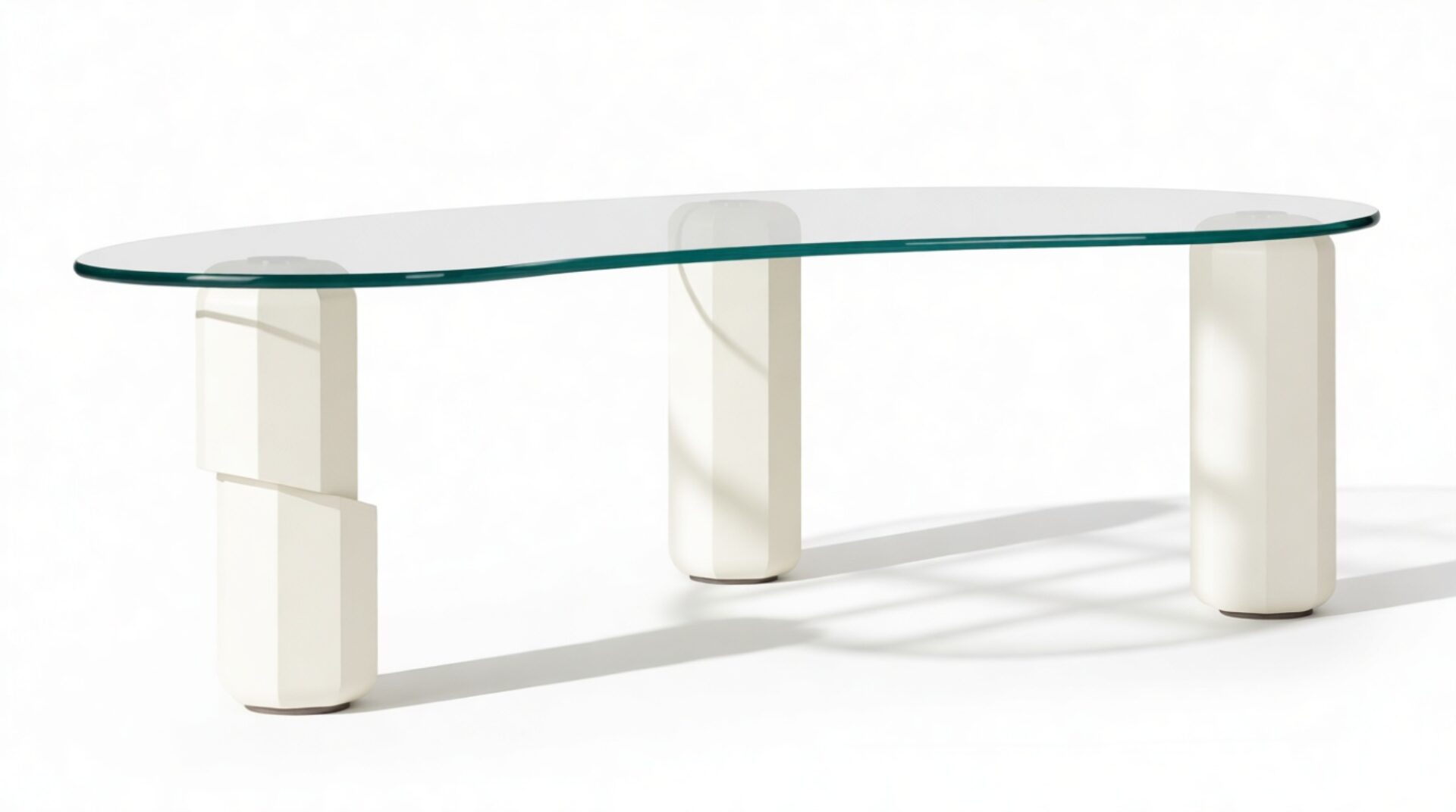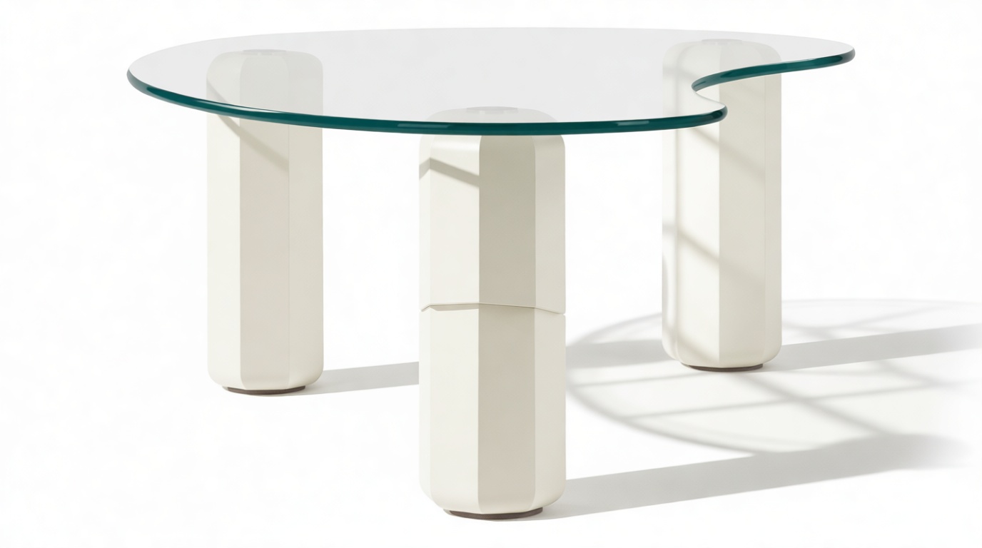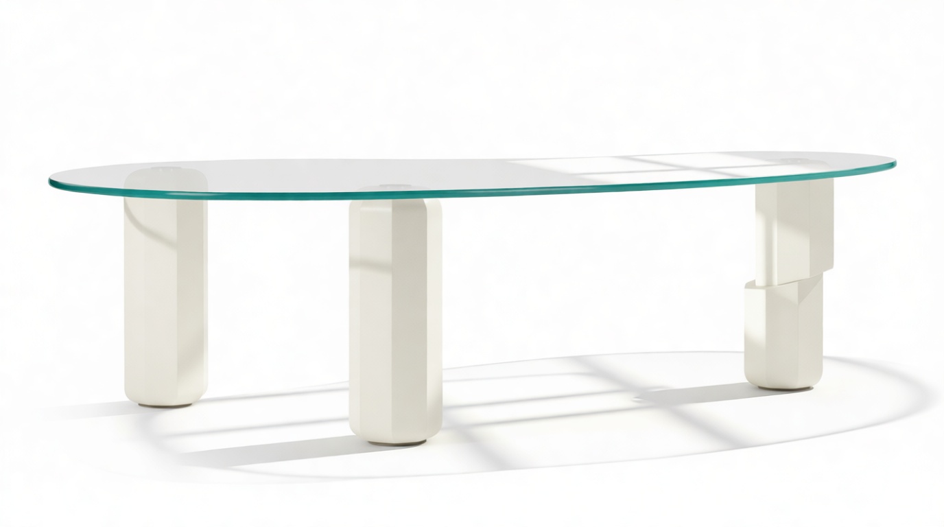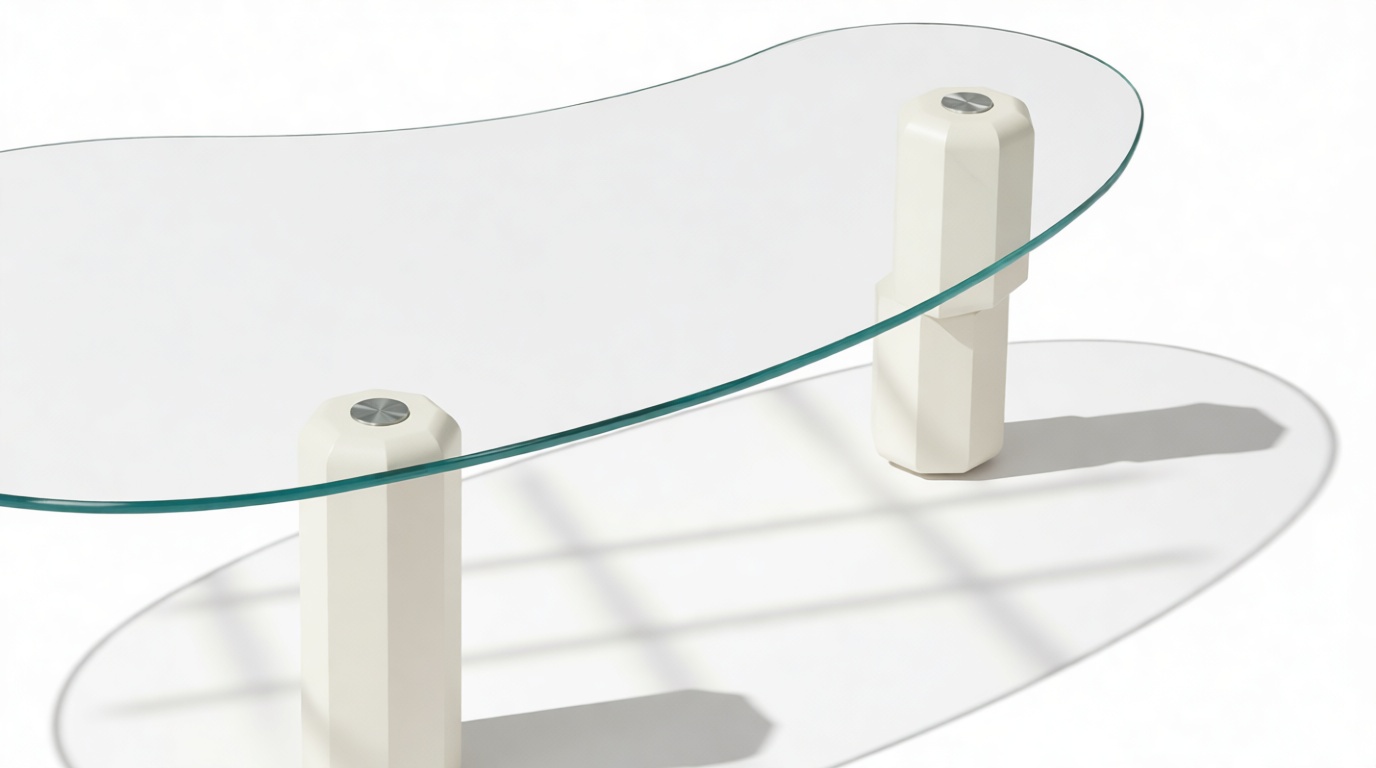 Discover the perfect blend of functionality and style with our range of wide-legged tables, featuring a sleek glass surface. The unique wave-like shapes and rounded edges of our tabletops perfectly complement the sturdy, commanding legs.