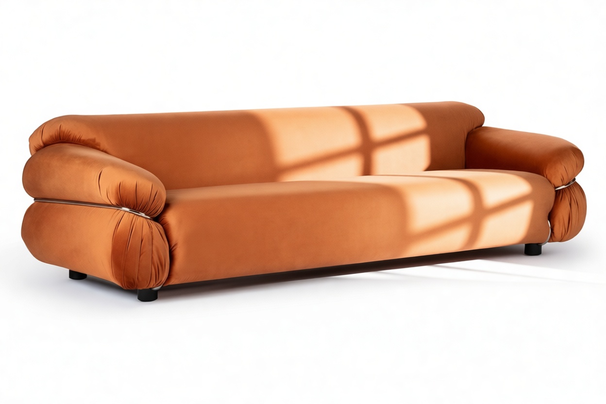 Discover the Sesann Sofa, a stunning masterpiece that harmoniously blends mid-century modern aesthetics with timeless elegance. The sculptural design and elegant lines exude a refined sense of artistry, establishing it as a captivating centerpiece in any living area.