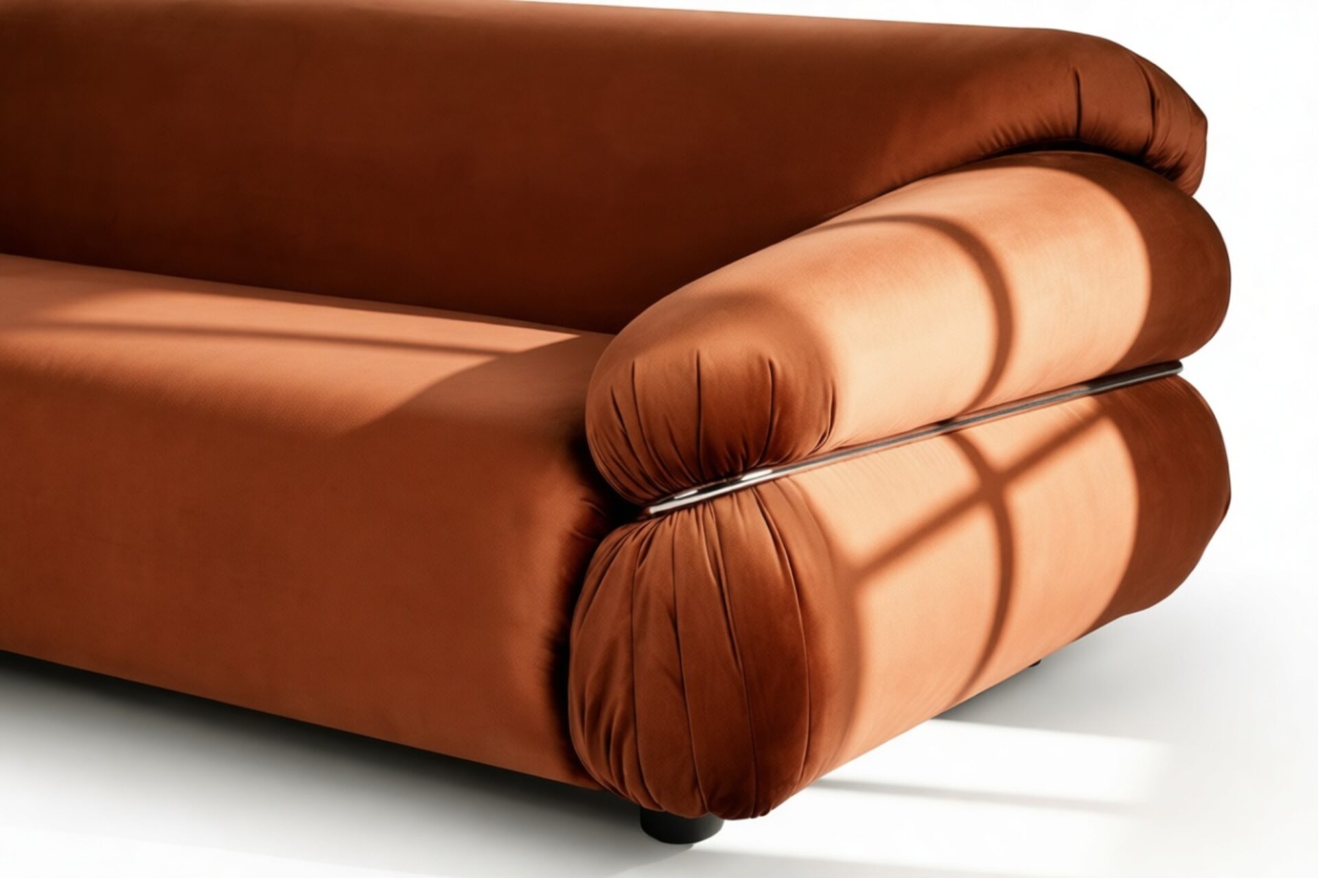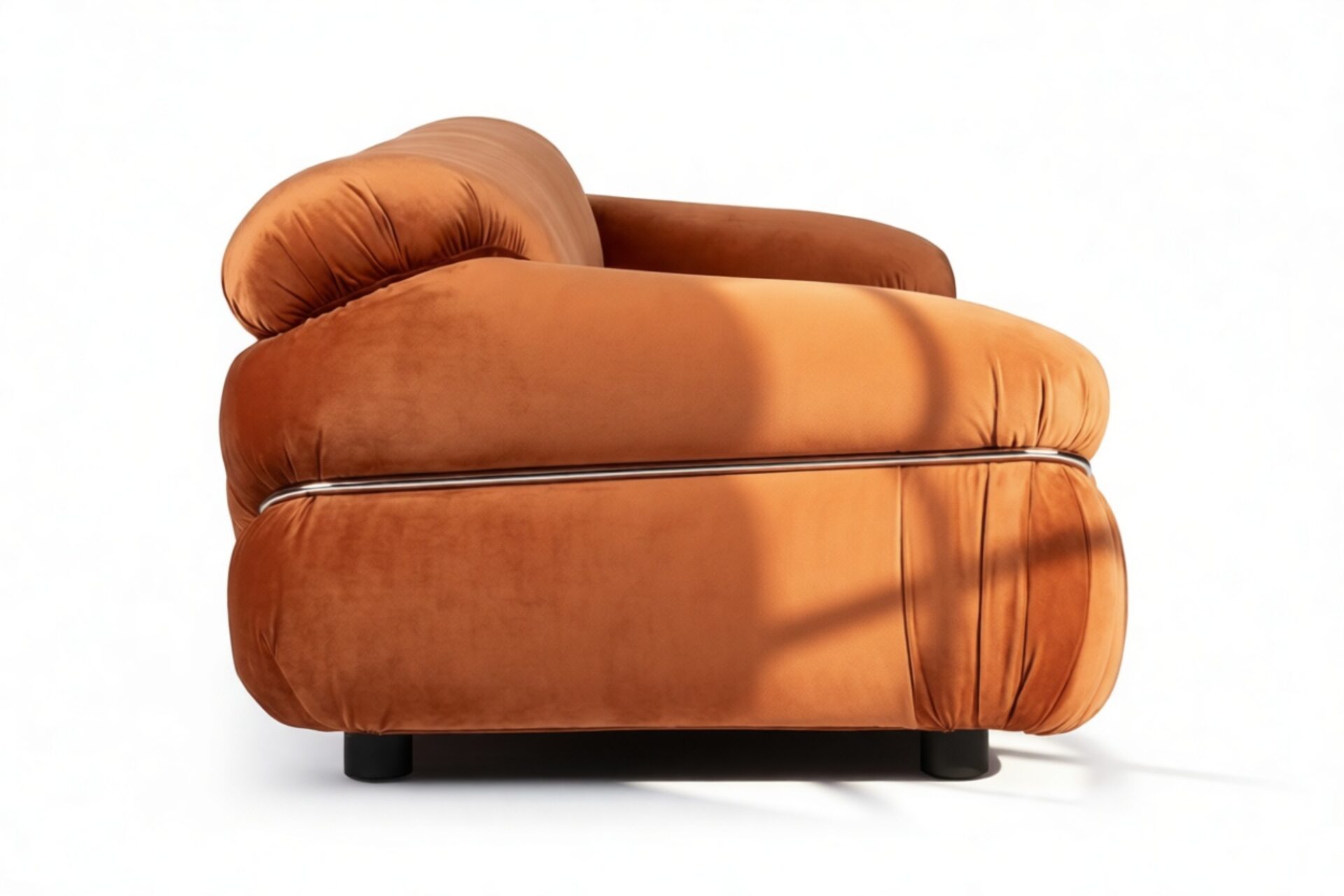 Immerse yourself in the exquisite style of the Artistic Sesann Sofa, a stunning masterpiece that harmoniously blends mid-century modern aesthetics with timeless elegance. The sculptural design, featuring apricot velvet upholstery, exudes refined artistry, making it a captivating centerpiece in any living area. Experience unparalleled comfort and chic sophistication with this iconic mid-century gem, elevating your space to unparalleled luxury.