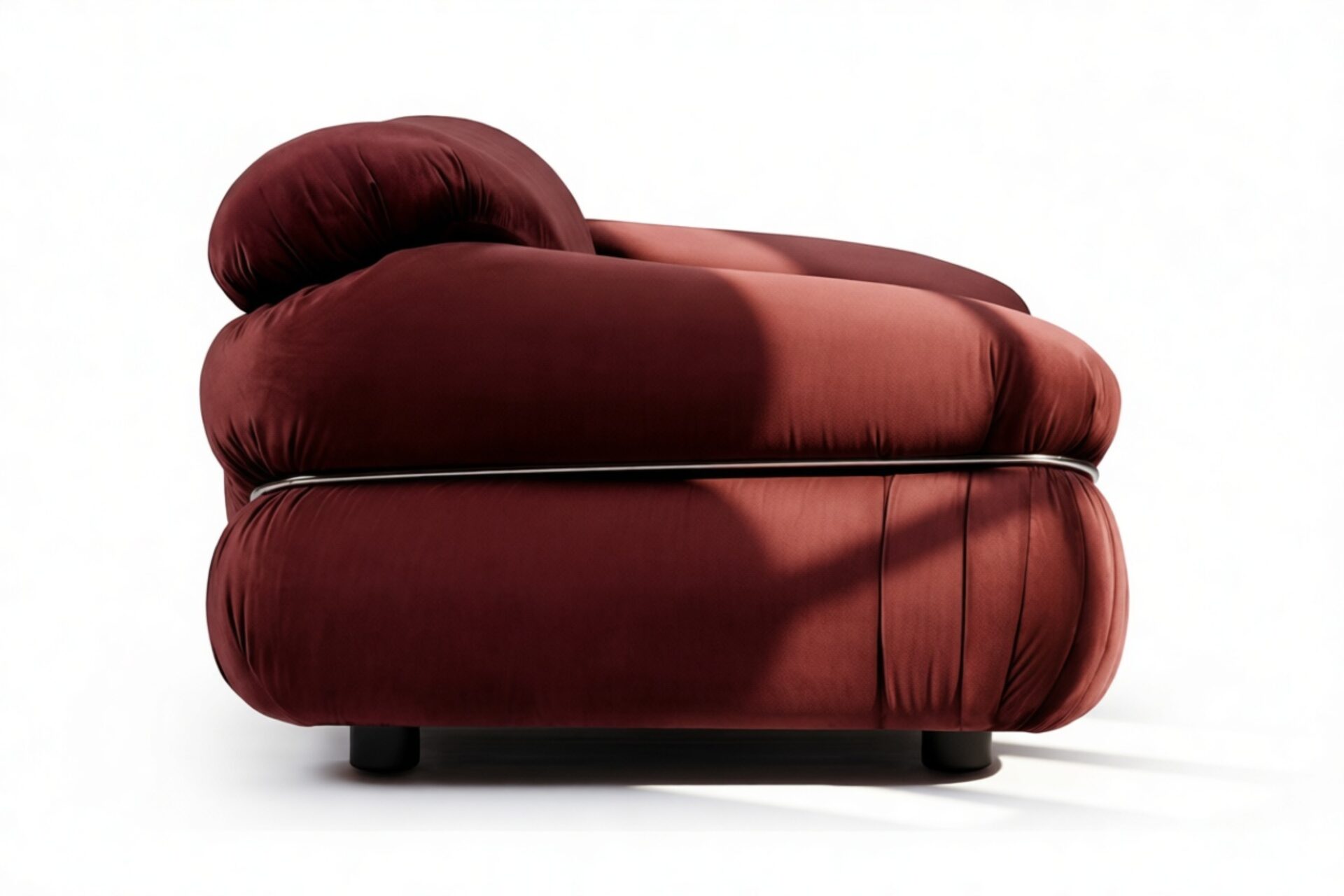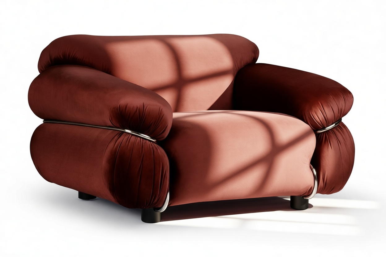 Introducing the Sesann Lounge Chair - a fusion of mid-century sophistication and timeless elegance. Inspired by 1960s design aesthetics, this chair epitomizes iconic style and utility. Ideal for modern living spaces, offices, or lounges, the Sesann enriches decor with refinement and charm. Experience classic elegance in Burgundy Luxe Velvet, exuding architectural sophistication and luxurious comfort.