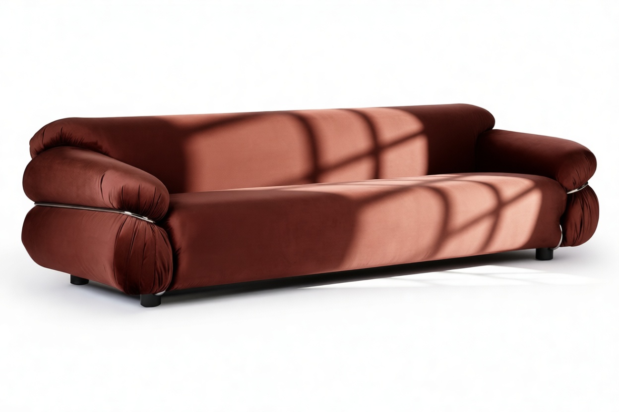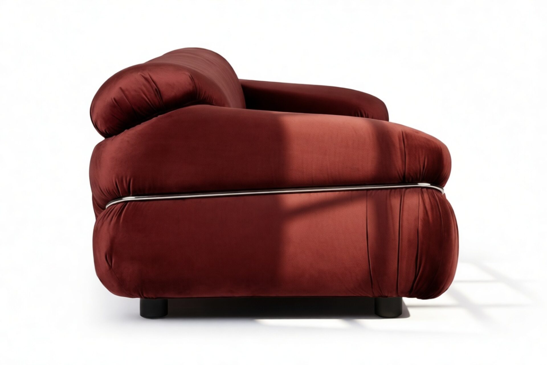 Introduce opulence to any space with the Sesann Sofa in Burgundy Luxe Velvet, a breathtaking masterpiece that seamlessly merges mid-century modern charm with enduring elegance. Its sculptural design and refined lines create an exquisite focal point, while the sumptuous cushions and ergonomic structure offer a luxurious seating experience that invites indulgence. Elevate your living area with this architectural beauty that exudes sophistication and unparalleled craftsmanship.