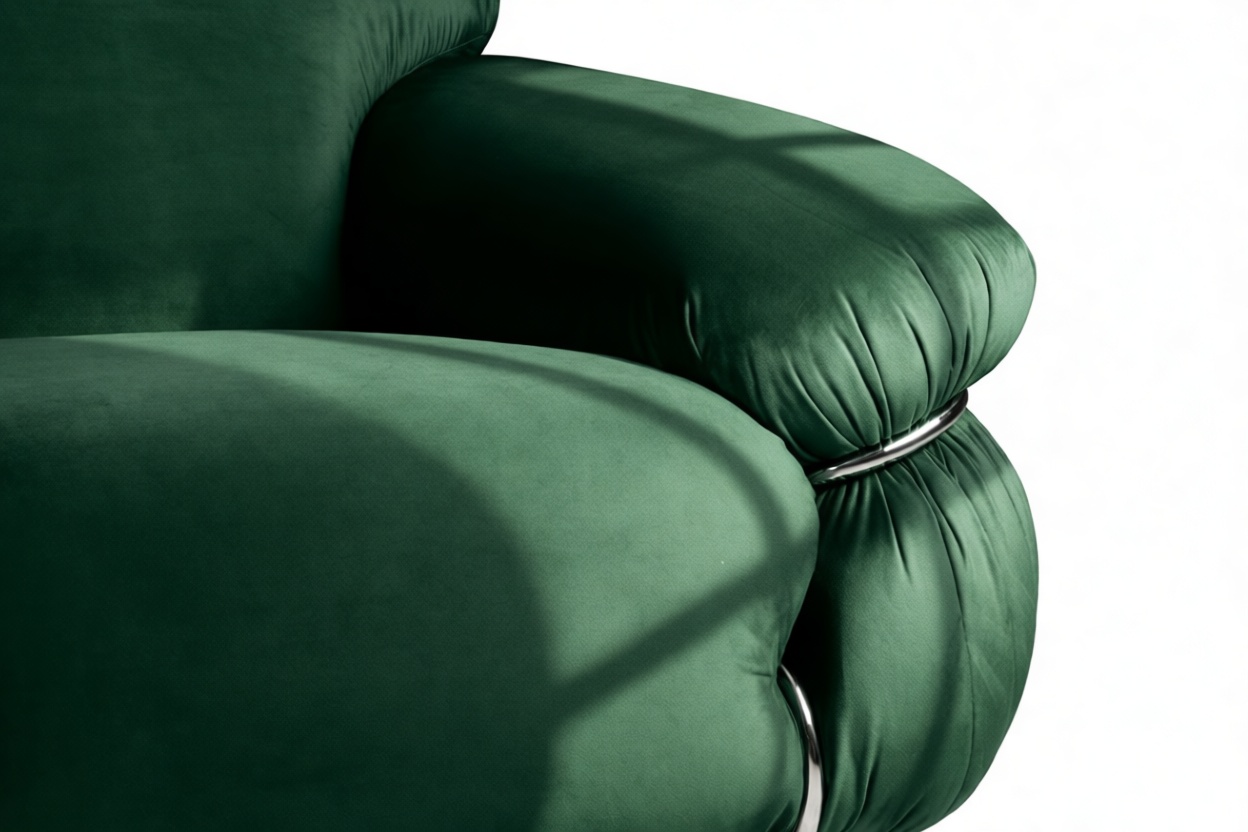 Introducing the Sesann Lounge Chair, a harmonious fusion of mid-century modern charm and timeless sophistication. Inspired by the design ethos of the 1960s, this armchair embodies iconic style with a perfect balance of form and function. Whether gracing a contemporary home, a chic office space, or a refined lounge, this elegant chair elevates any decor with an air of refinement and allure. Experience the allure of the Sesann Armchair, renowned for its classic design featuring clean lines and a well-proportioned silhouette, adding architectural sophistication to any room. This meticulously crafted piece showcases exquisite attention to detail, embodying mastery and finesse in its creation. Dive into luxury with the Sesann Armchair in Deep Pine Velvet, where plush cushions offer a blend of comfort and support. The meticulously selected upholstery not only exudes sophistication but also entices you to indulge in its tactile allure. Elevate your relaxation with the Sesann Armchair as it seamlessly marries style and comfort, inviting you to bask in moments of opulence and tranquility in your living space.