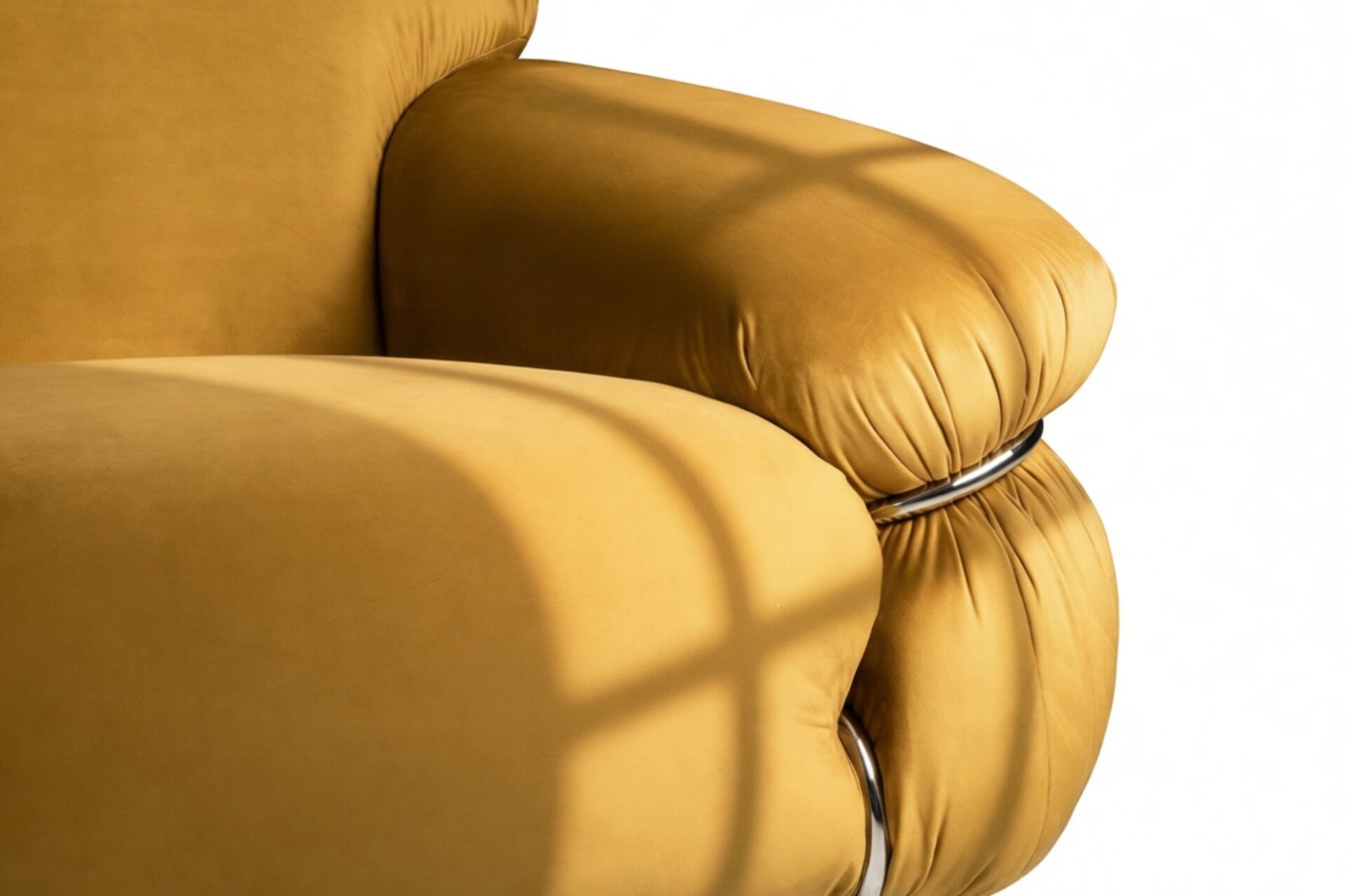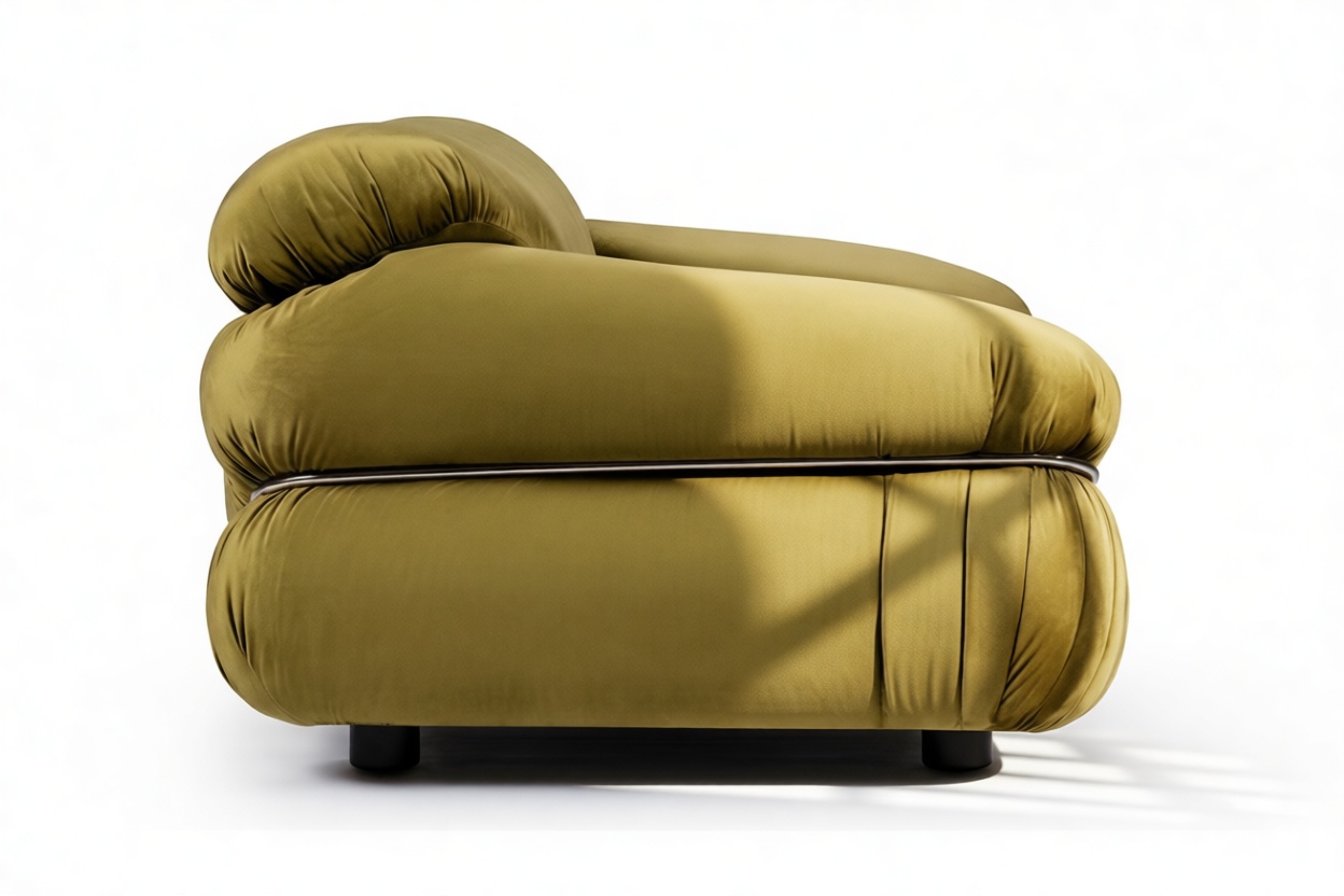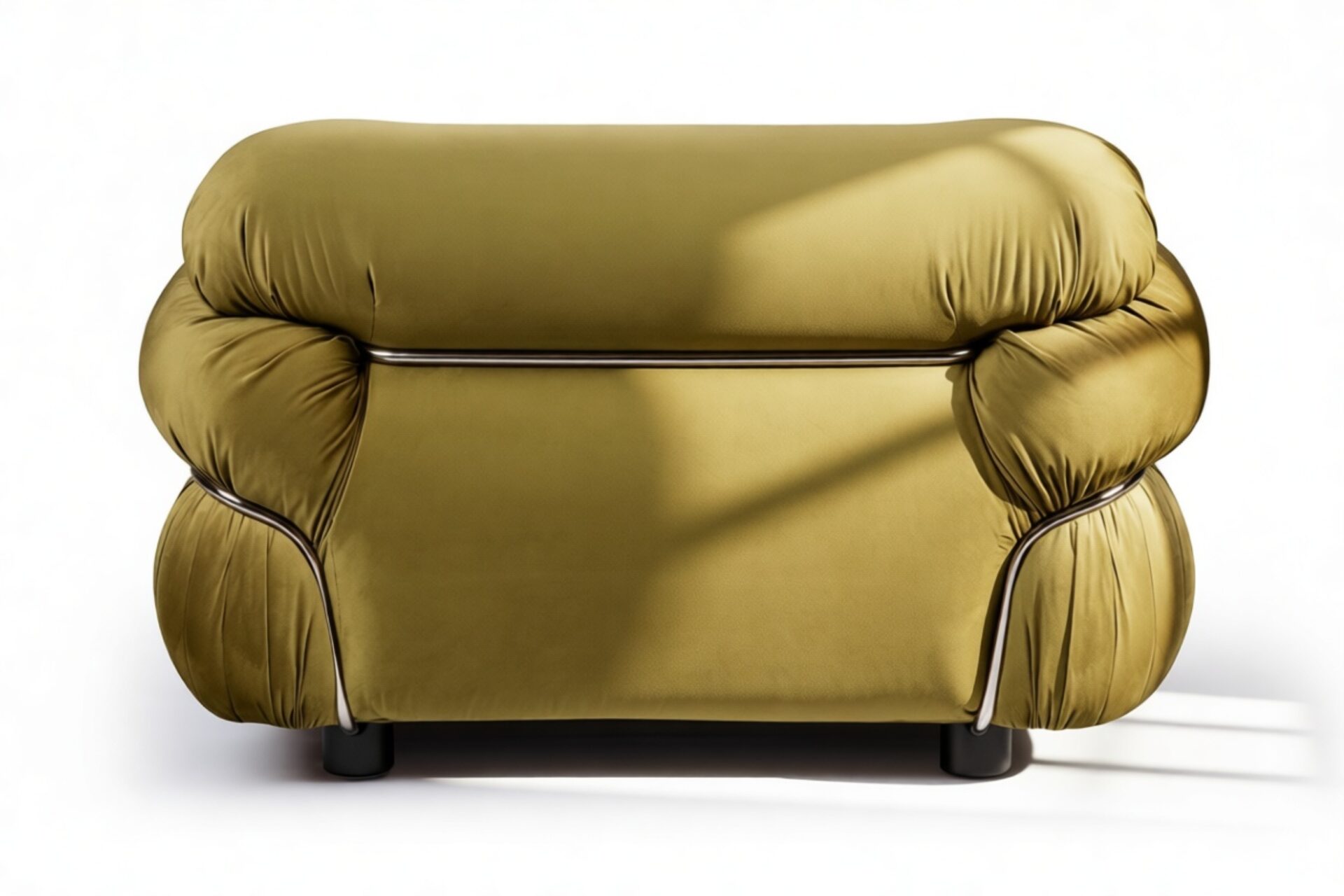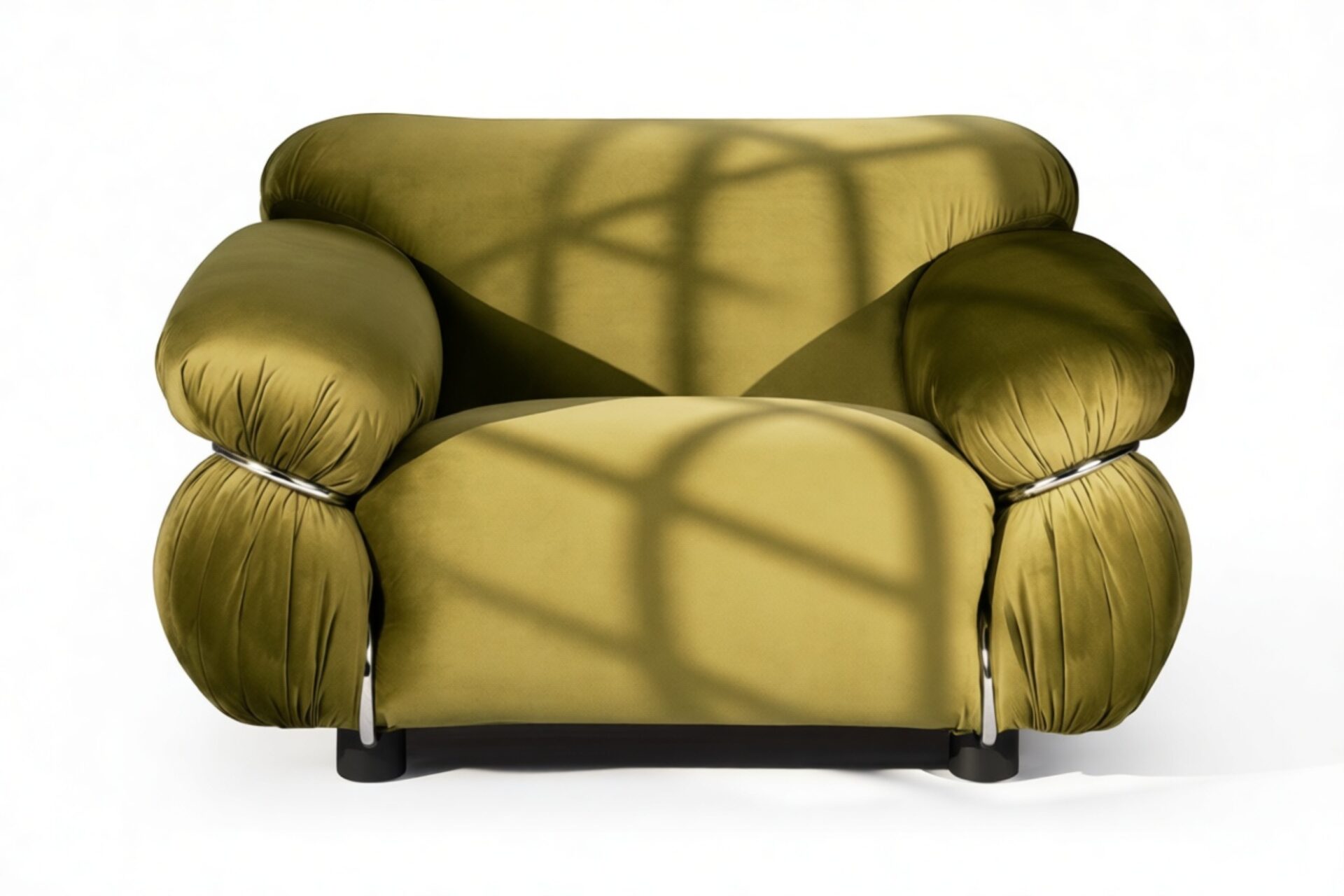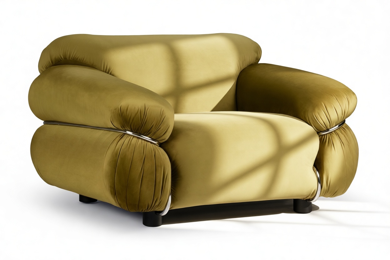 Introducing the Sesann Lounge Chair, an embodiment of mid-century modern allure and enduring elegance. Inspired by 1960s design aesthetics, this armchair exemplifies iconic style and functionality. From modern living spaces to stylish office environments, its Olive Gold Velvet material enriches decor with refinement and charm, offering a hint of architectural sophistication, luxurious comfort, and a moment of opulence and serenity.