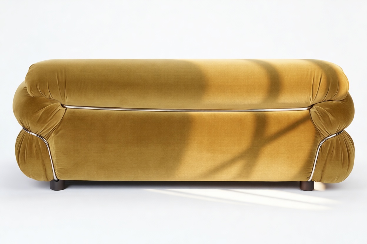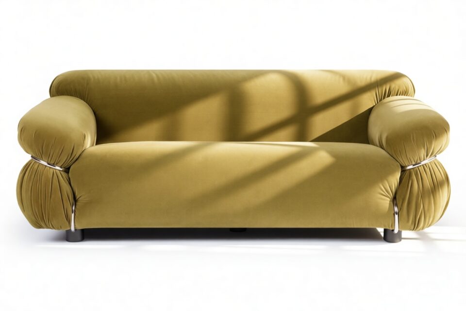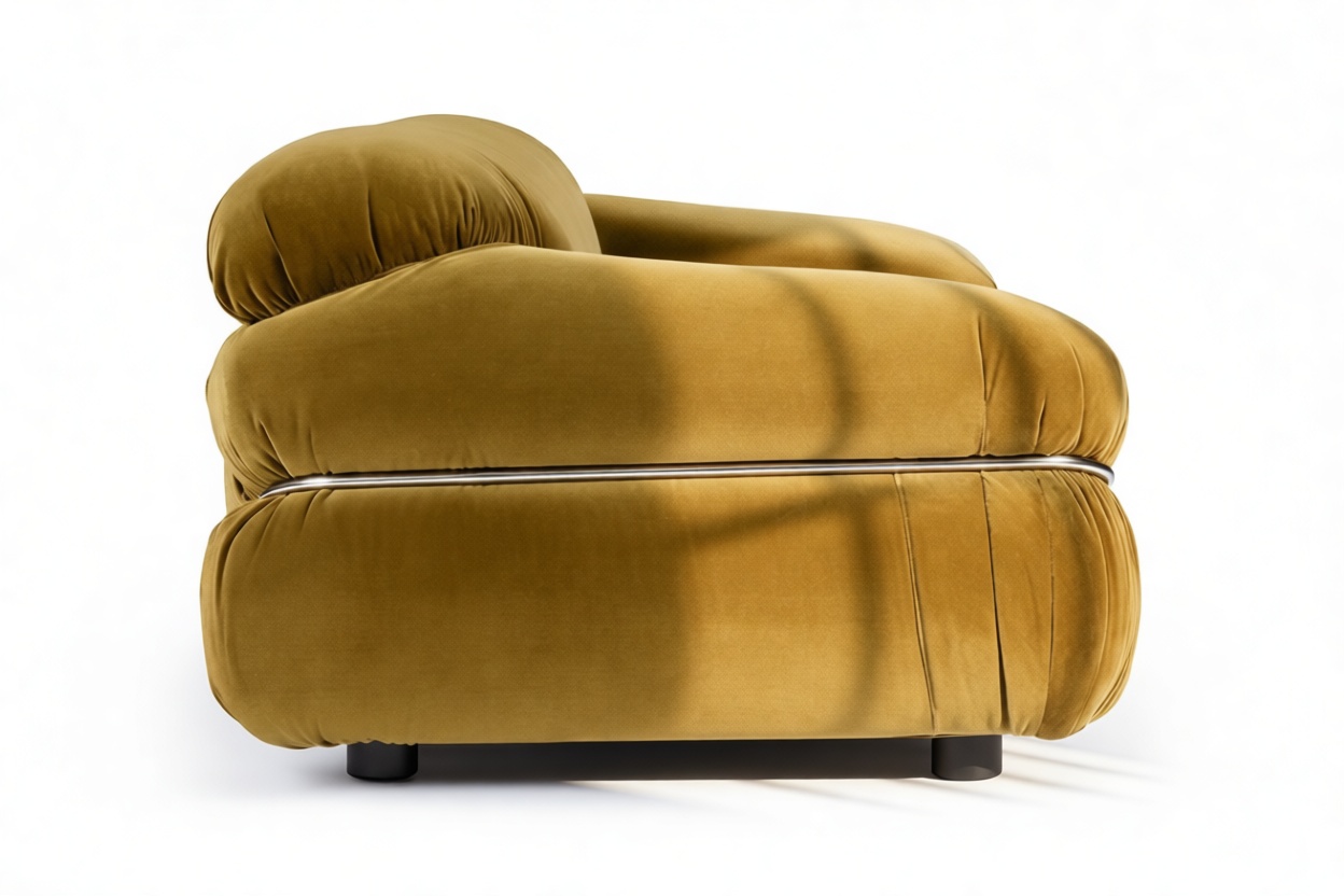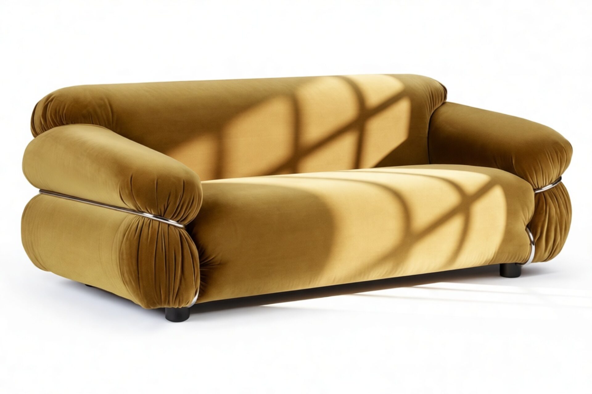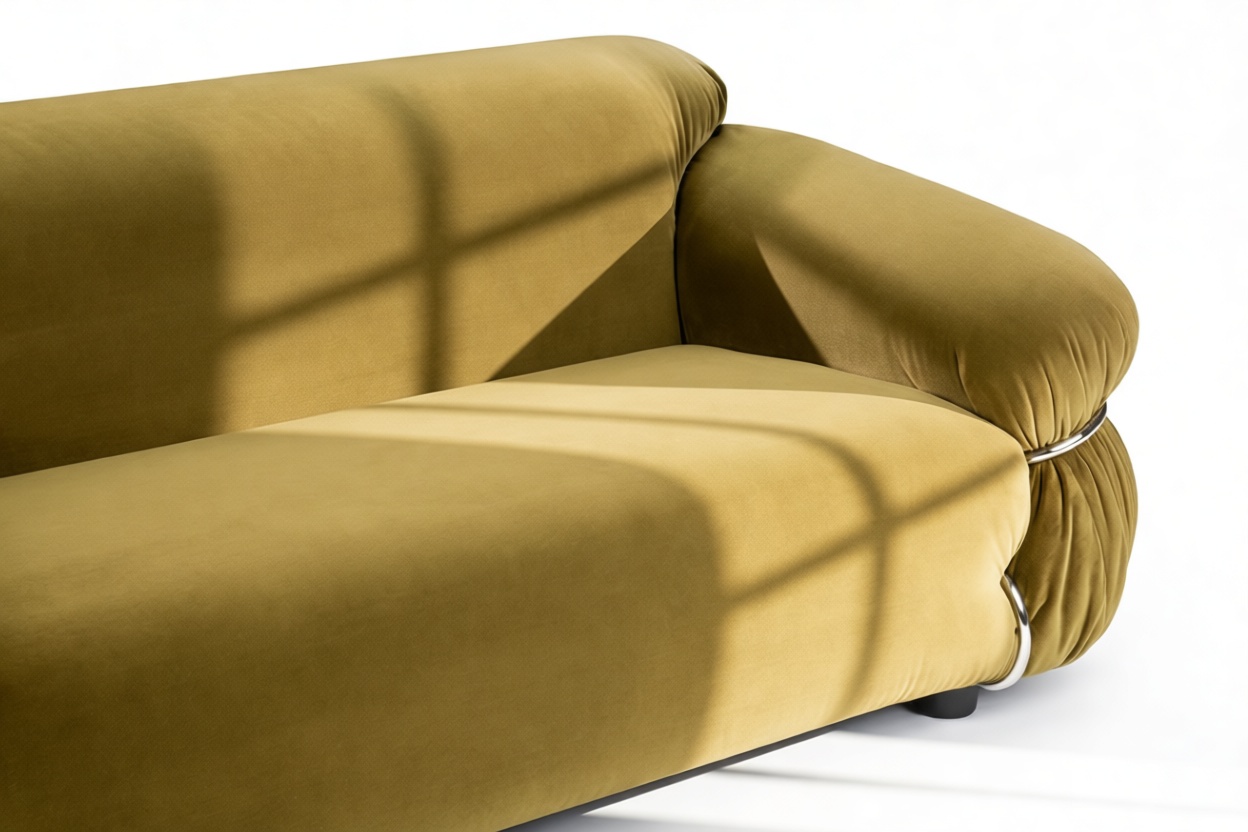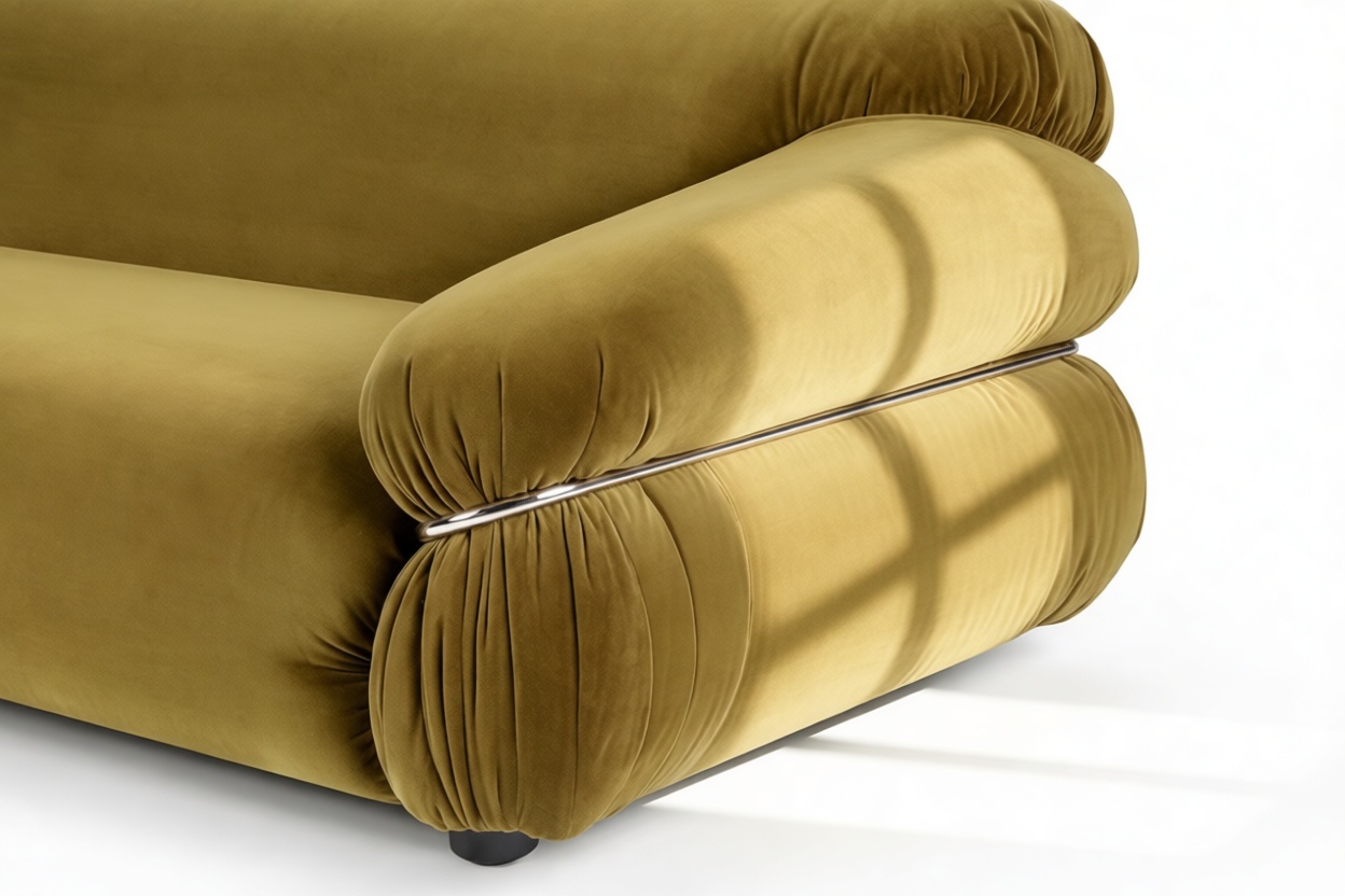 Transform any space with the luxurious Sesann Sofa in Olive Gold Velvet, showcasing a fusion of mid-century modern aesthetics and timeless elegance. This masterpiece combines sculptural design with elegant lines, creating a captivating centerpiece that elevates your living area to a work of art. Immerse yourself in its plush cushions and meticulous craftsmanship, indulging in unparalleled style and refinement.