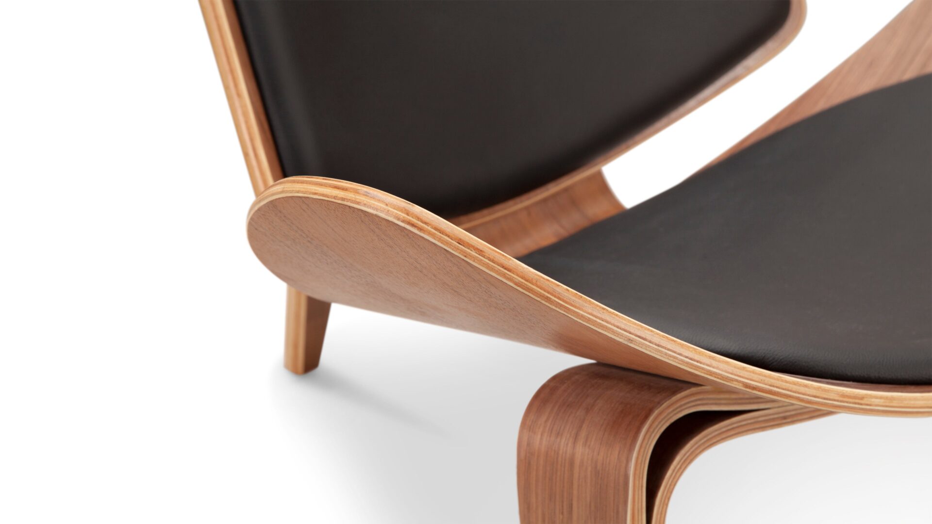 Elevate your space with the timeless appeal and luxurious curves of the Wegner Shell Chair. Drawing inspiration from early 1960s design, this chair beautifully blends aesthetics and practicality, boasting graceful curves and premium materials like Walnut and Black Premium Leather. Experience comfort and modern sophistication while infusing a dash of retro allure into any room. Crafted for longevity, this standout piece exudes exquisite workmanship, making it a must-have for those with discerning taste.
