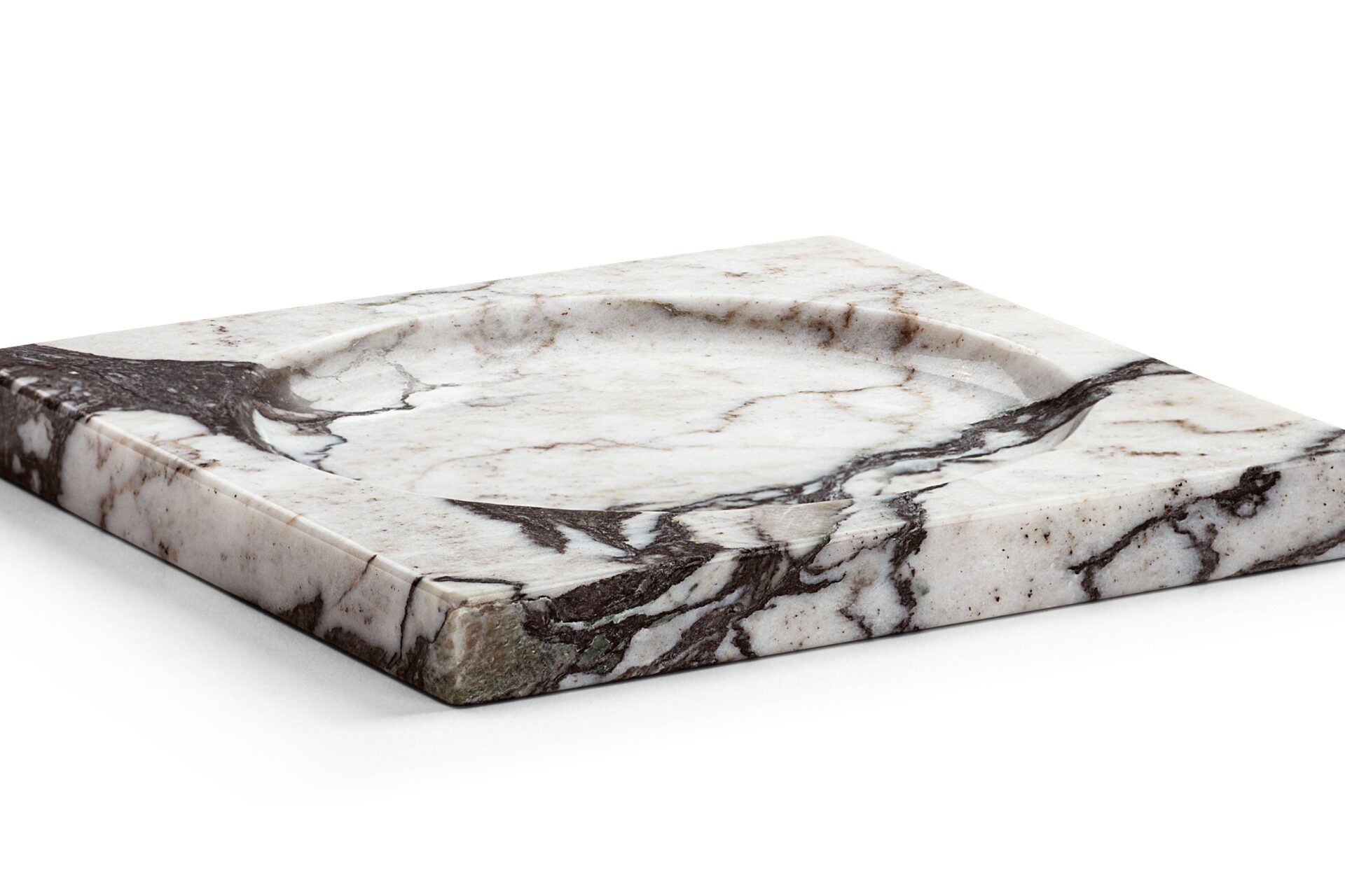 Introducing the Sia Tray, an exquisitely designed, versatile tray crafted from solid marble, offering a sophisticated solution for organizing and showcasing keepsakes or jewelry. The square base and circular recess of the Sia Tray create a stylish setting for small treasures, while its unique natural stone composition guarantees that each tray is one-of-a-kind, displaying its own distinct color variations and veining patterns. This refined yet practical accessory adds timeless elegance and individuality to any setting. The Sia Tray enhances everyday organization with its organic beauty and adaptability. Whether it serves as a striking centerpiece or a chic storage solution, this piece exudes subtle opulence and skilled artisanship, making it an ideal gift or a stylish accent for your home décor.