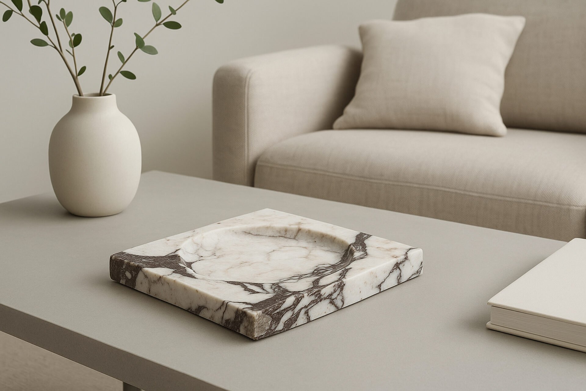 Experience the Sia Tray, a representation of a natural and minimalistic aesthetic that harmoniously combines timeless marble sophistication with organic individuality. It is a sophisticated choice for both modern and classic spaces.