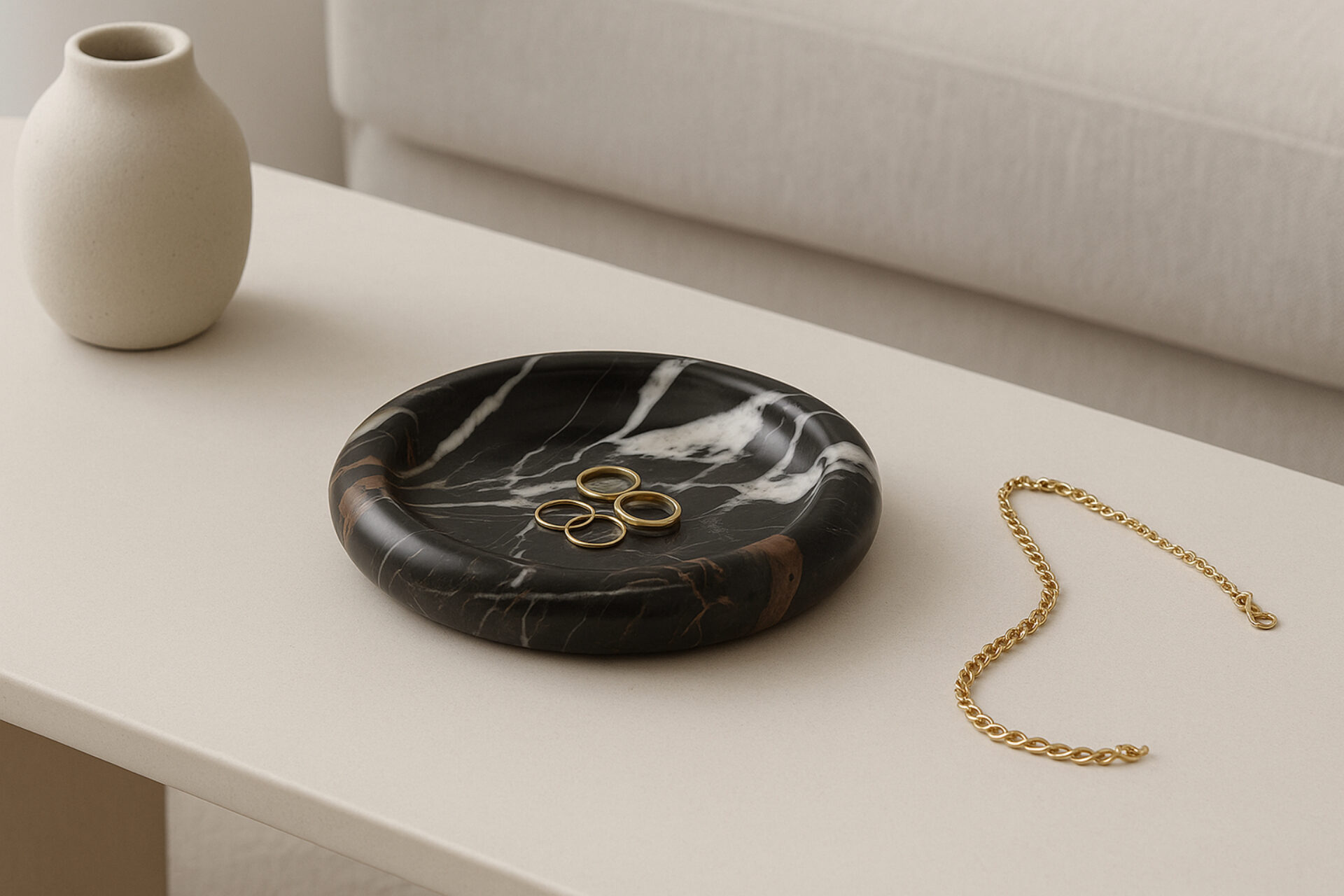 Experience a modern aesthetic with the rounded design of the Sicily Tray, blending minimalist curves with the classic elegance of polished marble.