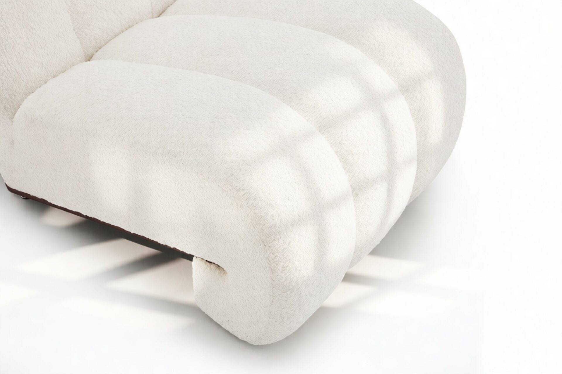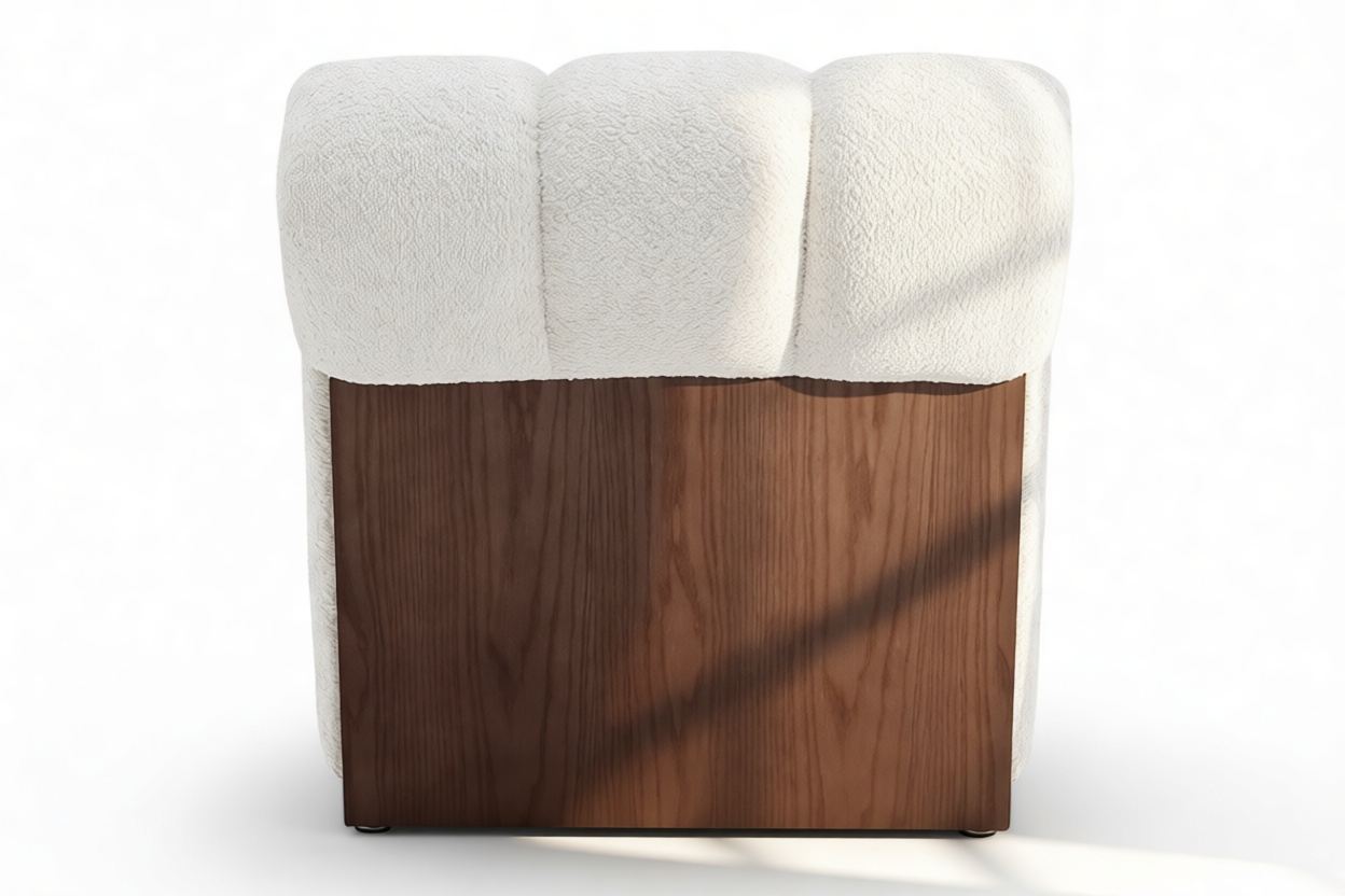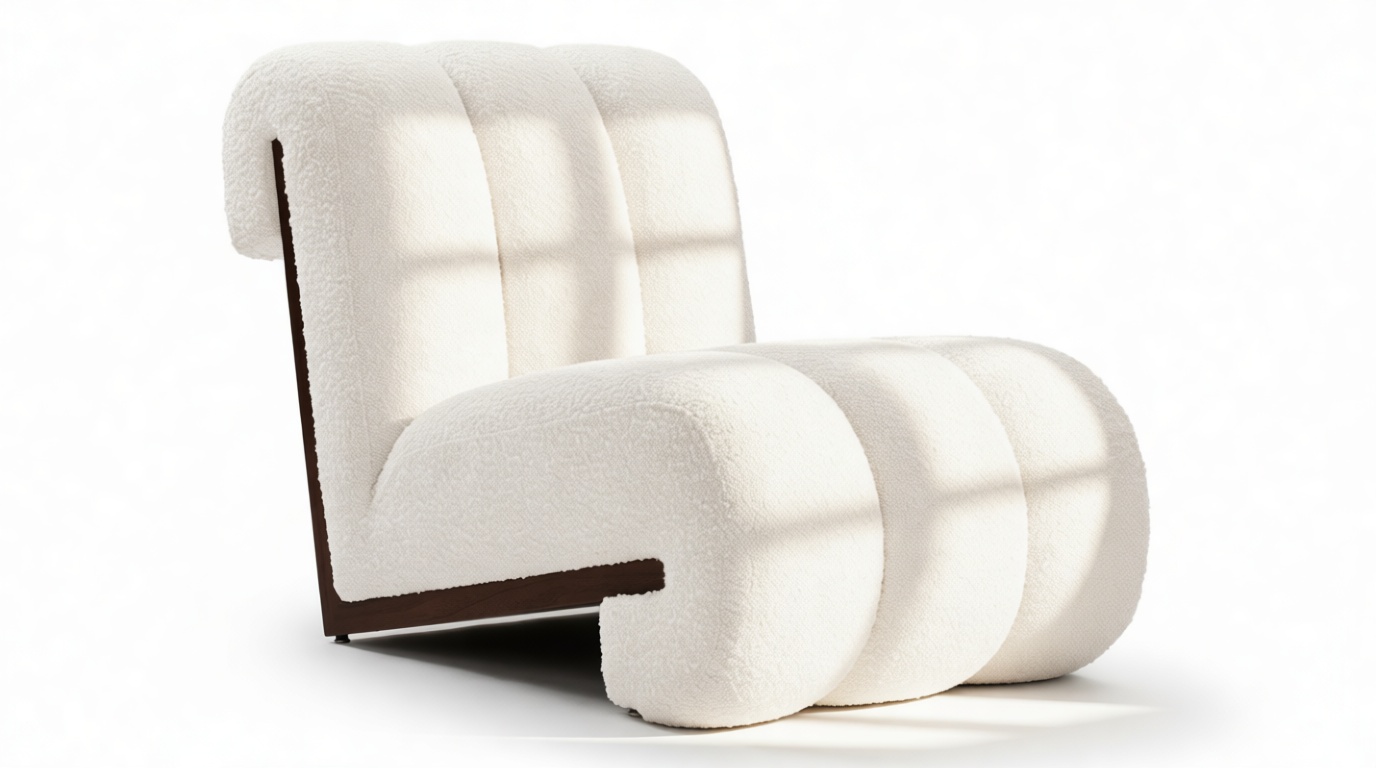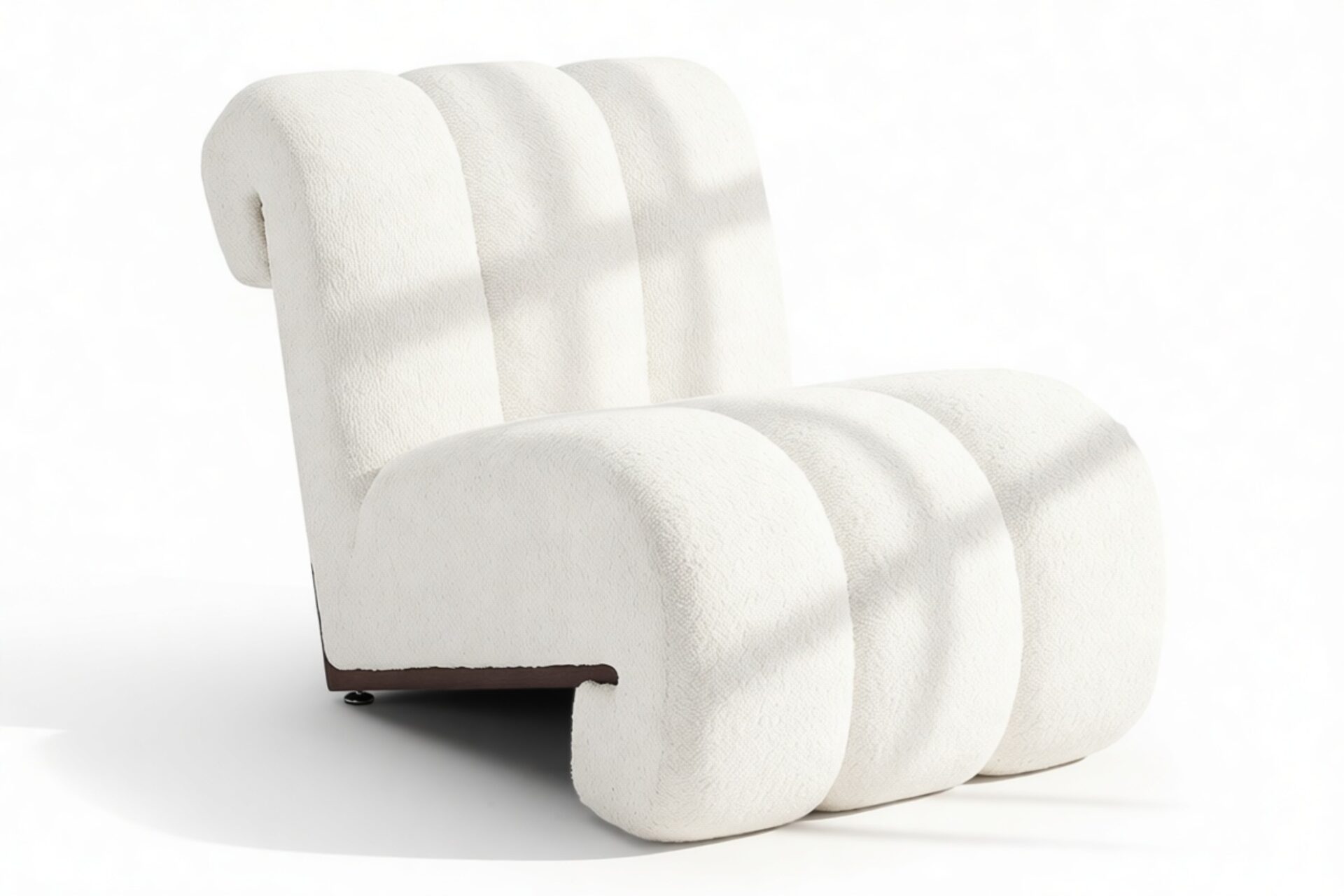 Unveil the captivating allure of the Siena Lounge Chair. Luxuriate in its sophisticated design featuring three sumptuously padded channels gracefully curving around a stunning walnut frame. This armless, contemporary piece not only captivates visually but also offers ample seating. Experience sumptuous relaxation as the dense tufted boucle fabric contrasts elegantly with the dark walnut frame for a modern and luxurious touch. Perfect for social spaces or as a statement piece, this chair exudes both style and comfort.