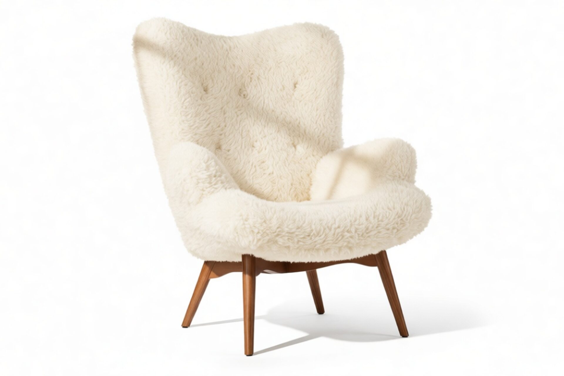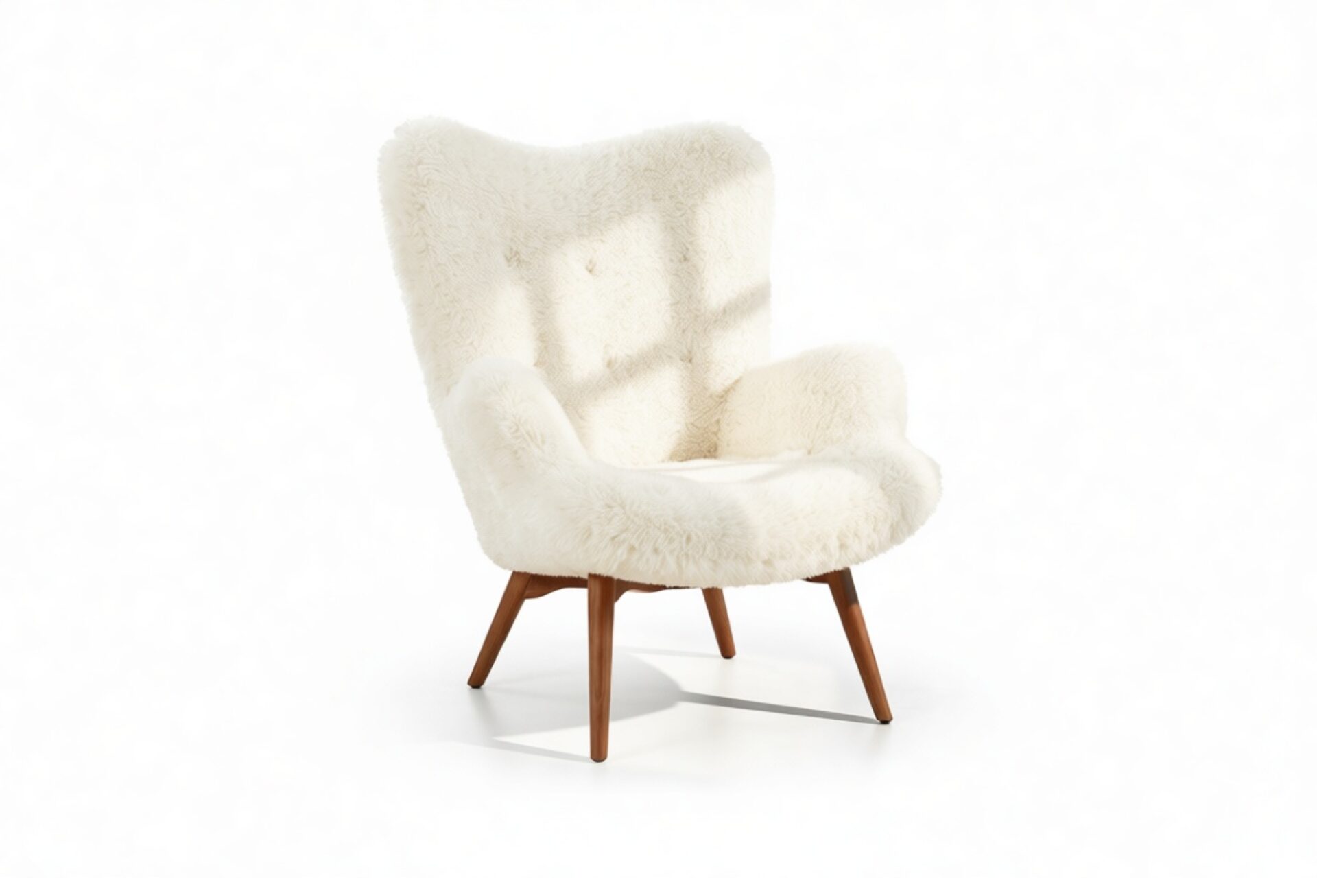 Experience the perfect blend of warmth and modern design with the Silhouet Armchair. This armchair showcases soft faux fur upholstery and a sleek, inviting shape. The tufted detailing and wooden legs add a touch of refinement to its approachable figure.