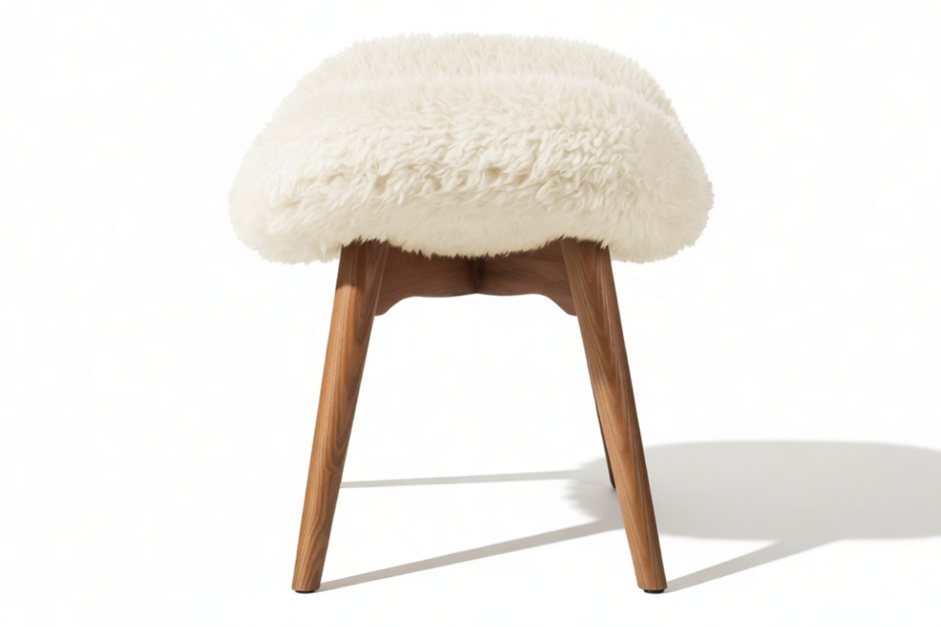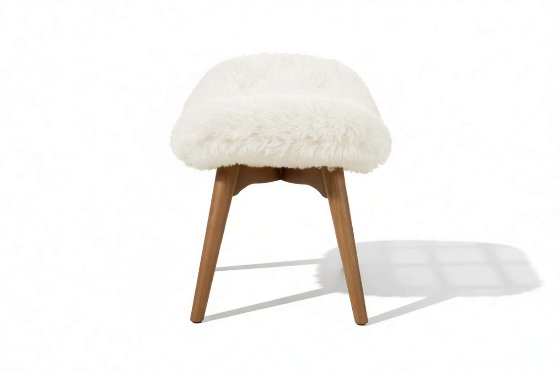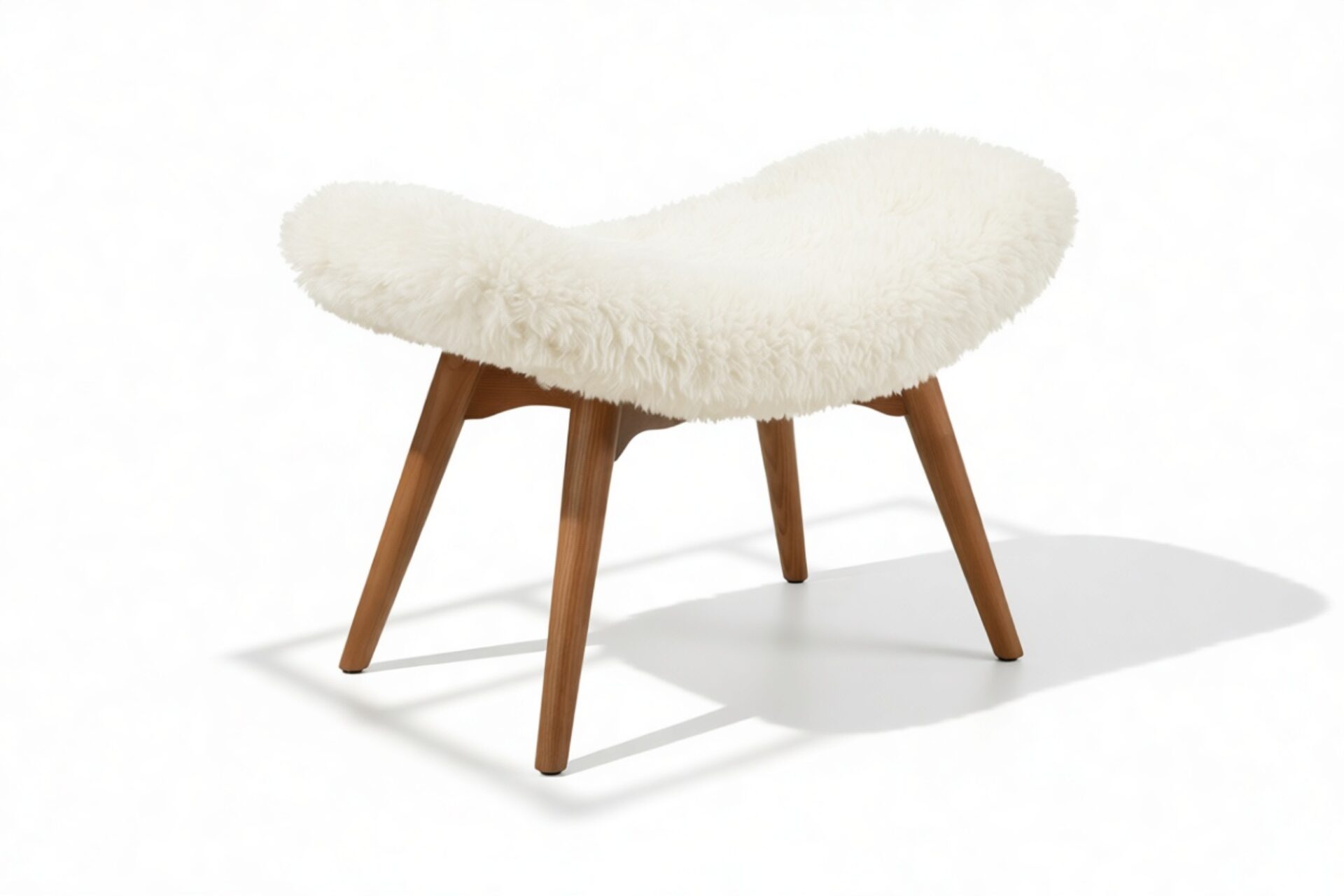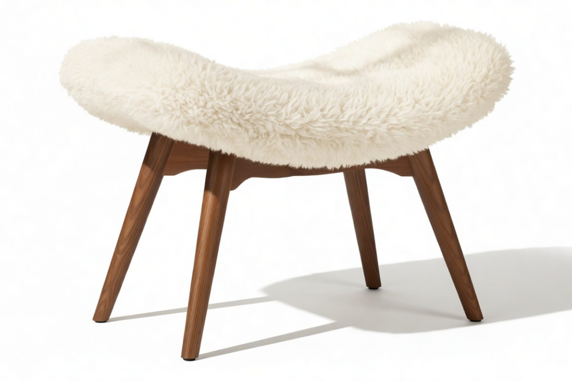 The Silhouet Ottoman showcases luxurious faux fur upholstery that exudes softness and fluffiness, resulting in a warm and inviting feel perfect for relaxation. Presented in a calming cream hue, the footstool harmonizes effortlessly with the warm wood finish of its legs. With gently sloping sides, this piece harmoniously blends comfort and style.
