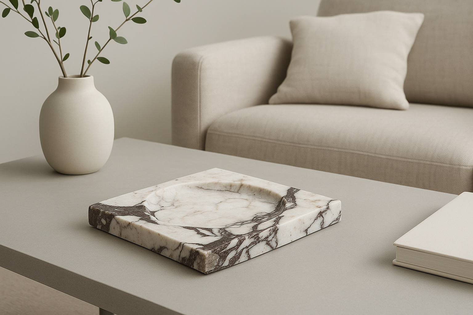 Experience the Sita Tray, a representation of a natural and minimalistic aesthetic that harmoniously combines timeless marble sophistication with organic individuality. It is a sophisticated choice for both modern and classic spaces.