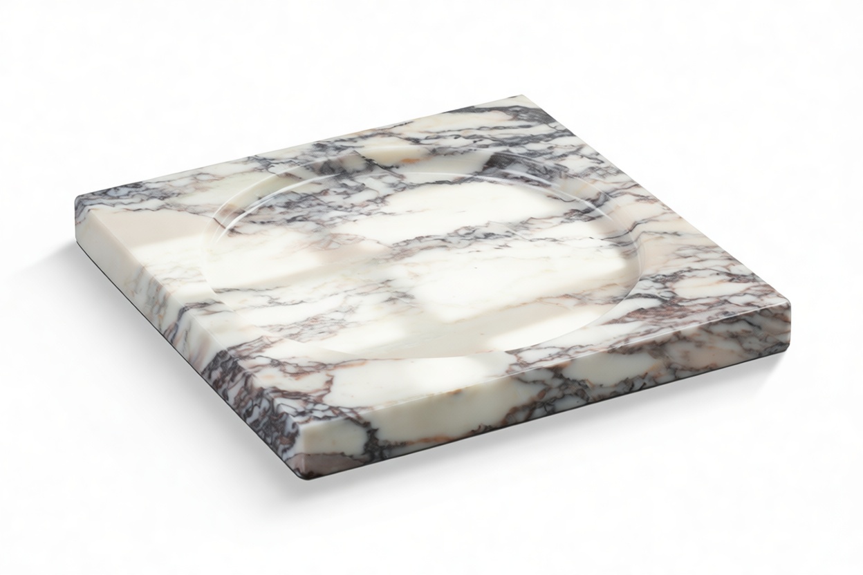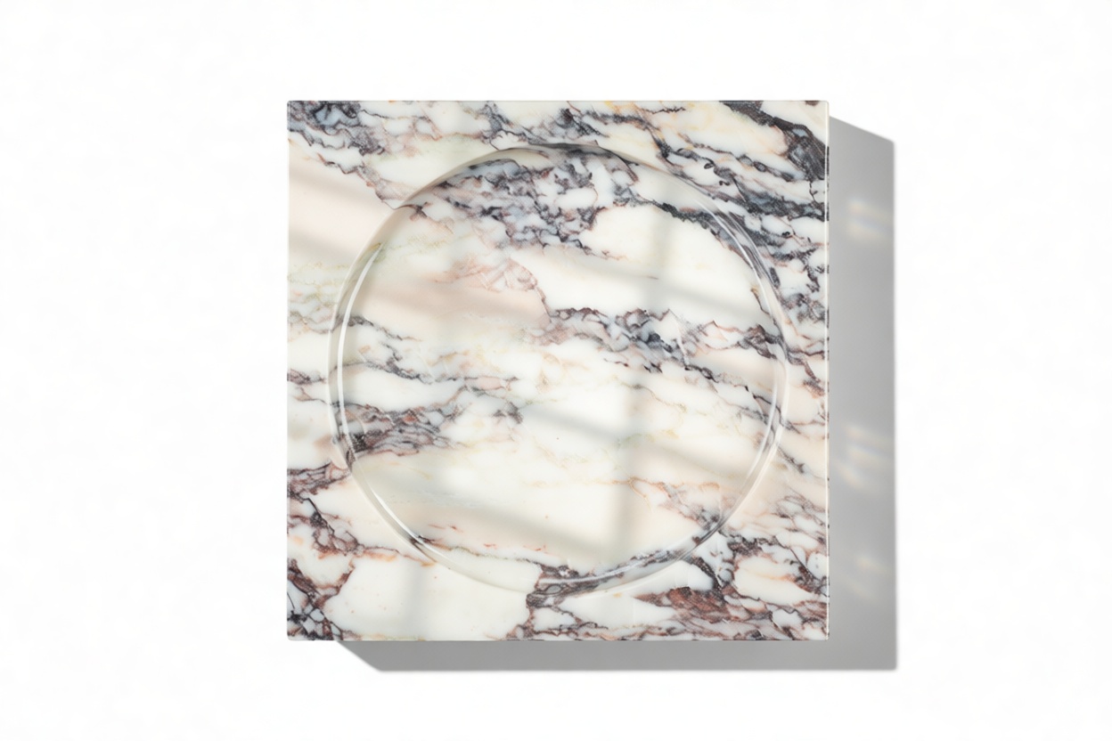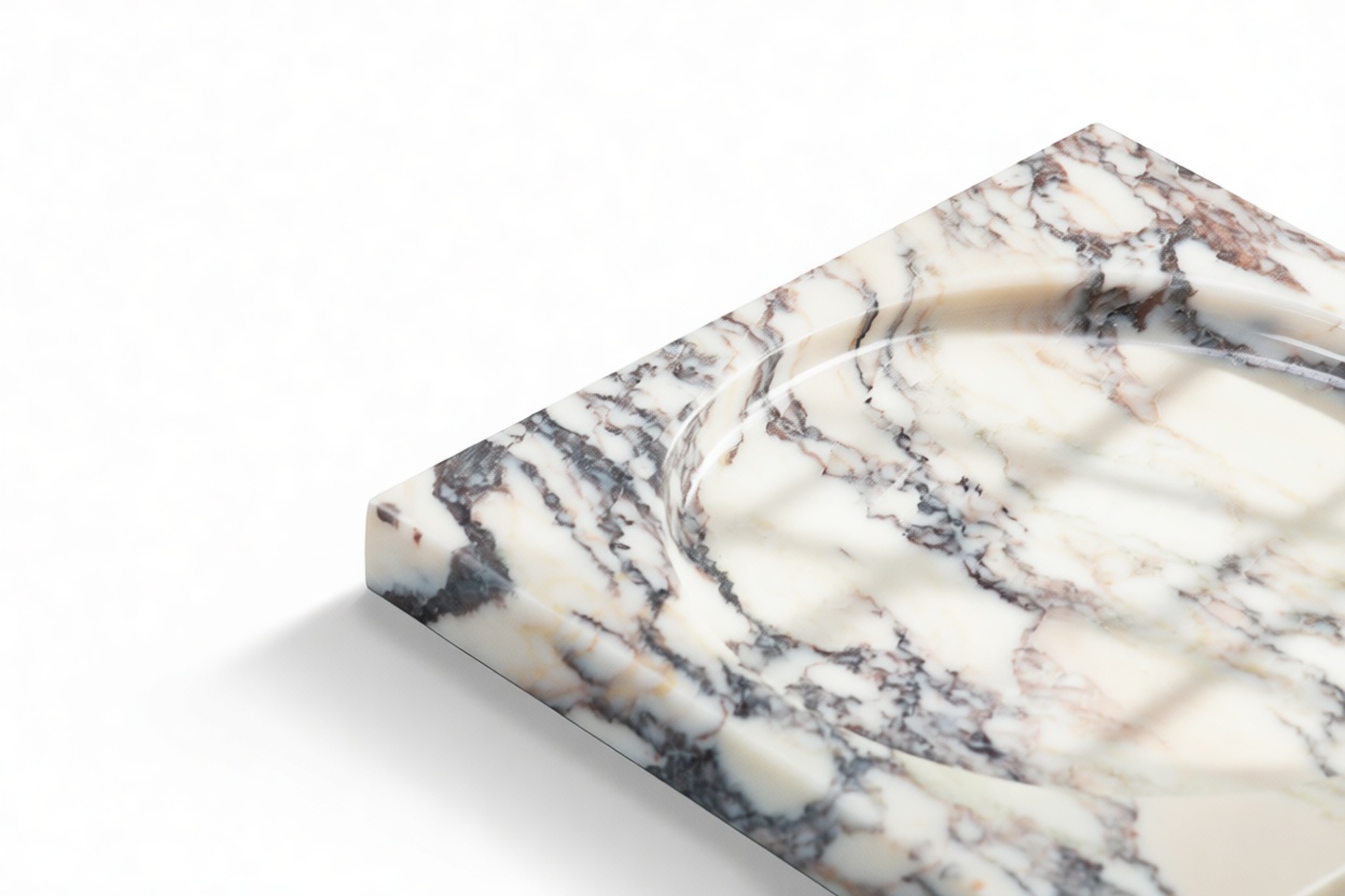 Introducing the Sita Tray, an exquisitely designed, versatile tray crafted from solid marble, offering a sophisticated solution for organizing and showcasing keepsakes or jewelry. The square base and circular recess of the Sita Tray create a stylish setting for small treasures, while its unique natural stone composition guarantees that each tray is one-of-a-kind, displaying its own distinct color variations and veining patterns. This refined yet practical accessory adds timeless elegance and individuality to any setting. The Sita Tray enhances everyday organization with its organic beauty and adaptability. Whether it serves as a striking centerpiece or a chic storage solution, this piece exudes subtle opulence and skilled artisanship, making it an ideal gift or a stylish accent for your home décor.
