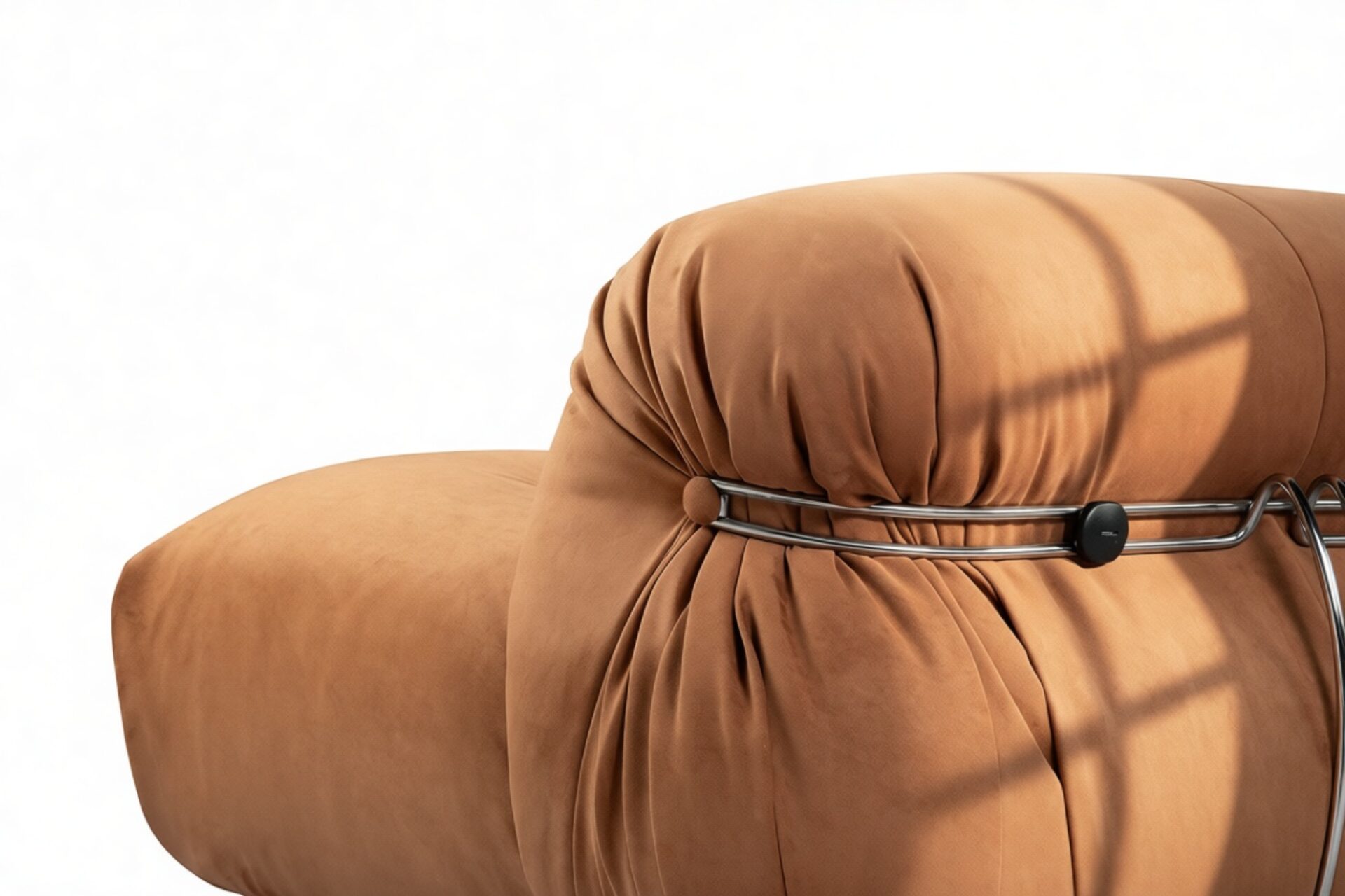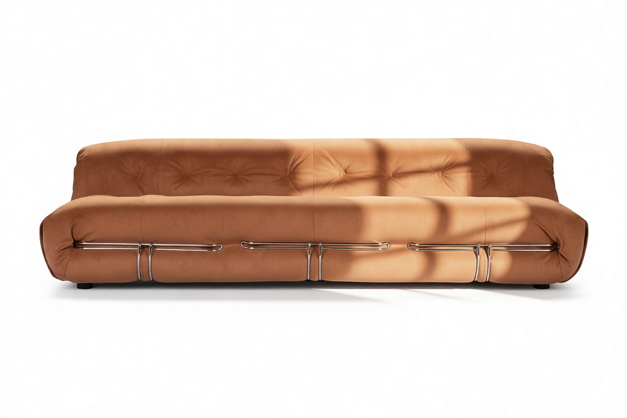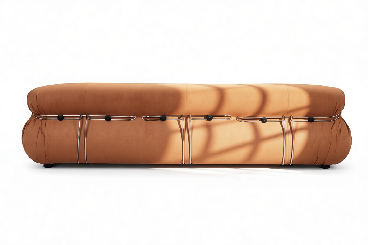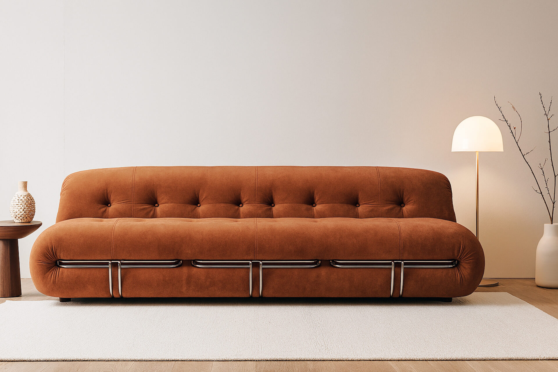 Unwind in style with the Soriana collection, an iconic 1970s-inspired line that embodies laid-back charm. Featuring a distinctive clamp-like design and lavish burnt orange vegan suede upholstery with button detailing, this chic yet casual piece exudes retro allure while ensuring top-notch craftsmanship. Explore the range to find coordinating burnt orange vegan suede pieces for a stylish and versatile space infusion.