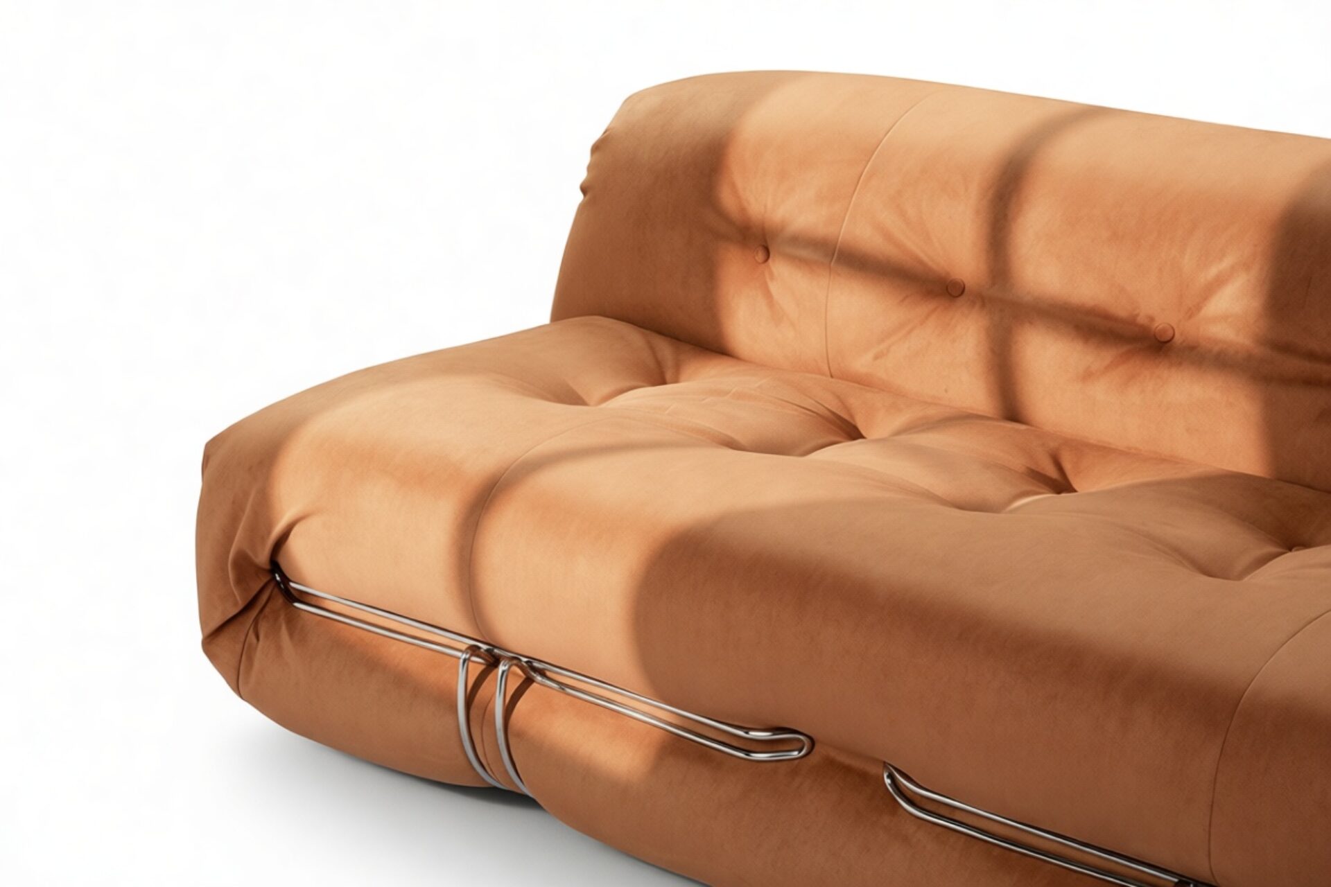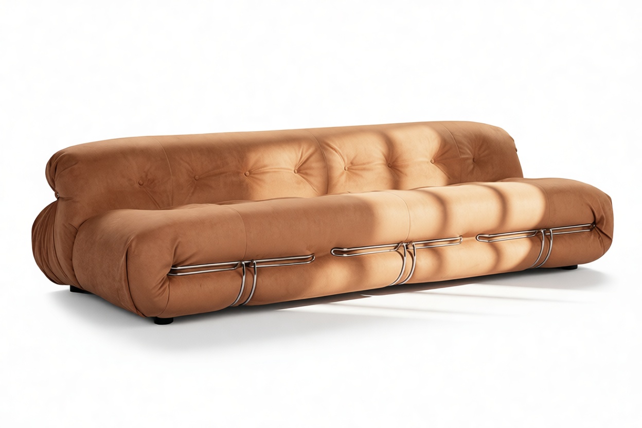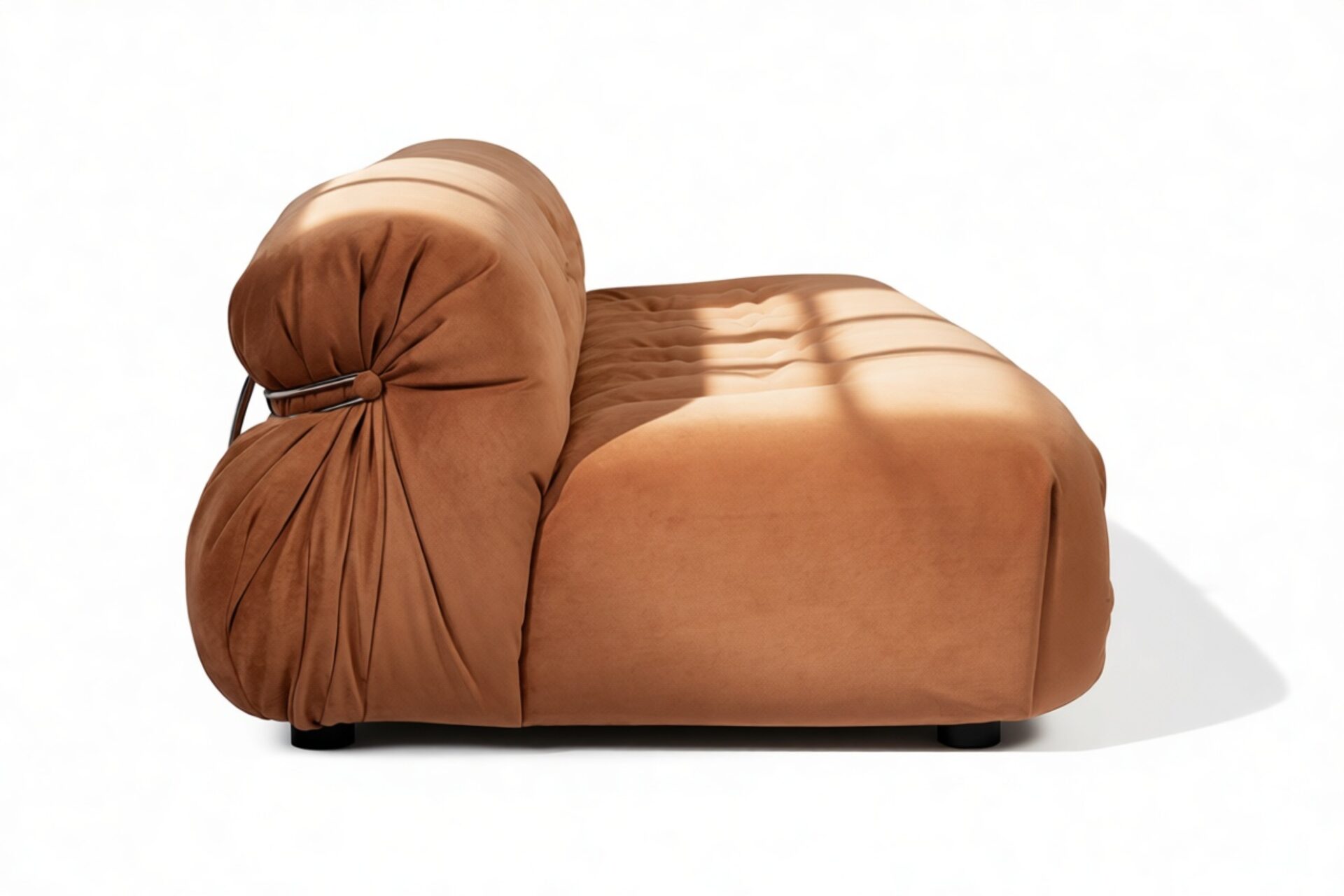 Unwind in style with the Soriana collection, an iconic 1970s-inspired line that embodies laid-back charm. Featuring a distinctive clamp-like design and lavish burnt orange vegan suede upholstery with button detailing, this chic yet casual piece exudes retro allure while ensuring top-notch craftsmanship. Explore the range to find coordinating burnt orange vegan suede pieces for a stylish and versatile space infusion.