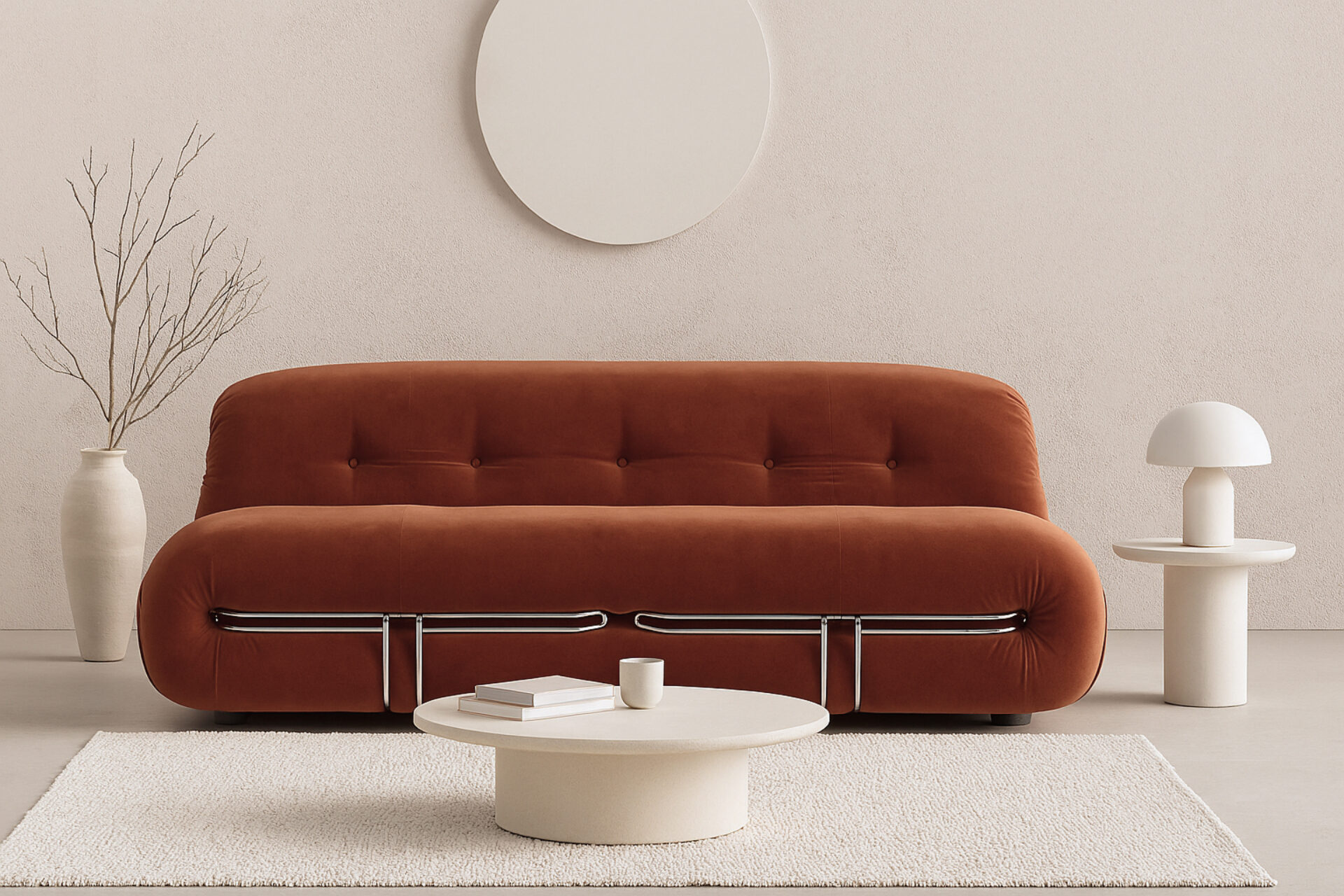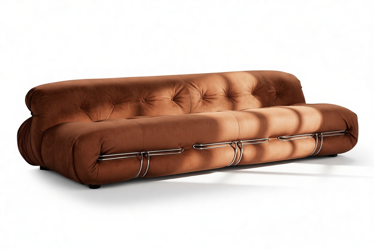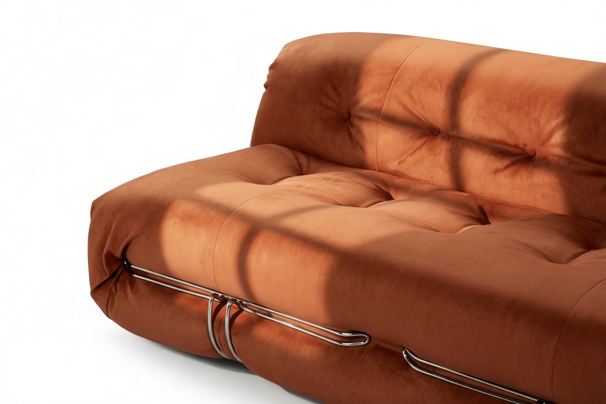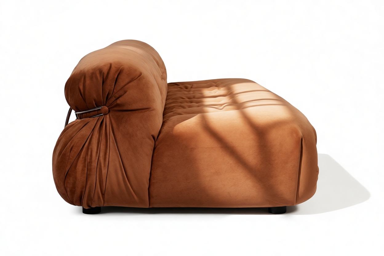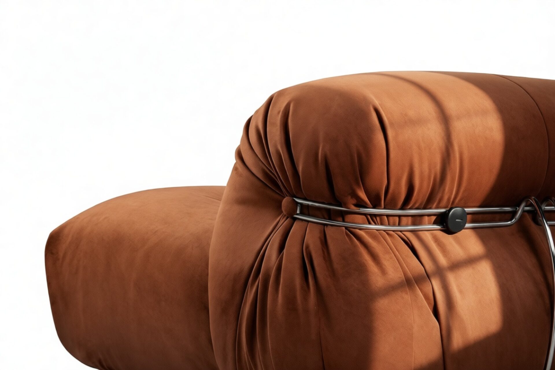 Embrace the laid-back elegance of the iconic Soriana collection, a tribute to the free-spirited 1970s design ethos that resonates even today. Characterized by sweeping curves and a distinctive clamp structure, the Spice Velvet edition showcases a plush, quilted appearance with button detailing for a touch of luxury. Explore the chic versatility of Soriana furnishings to effortlessly elevate your living space.