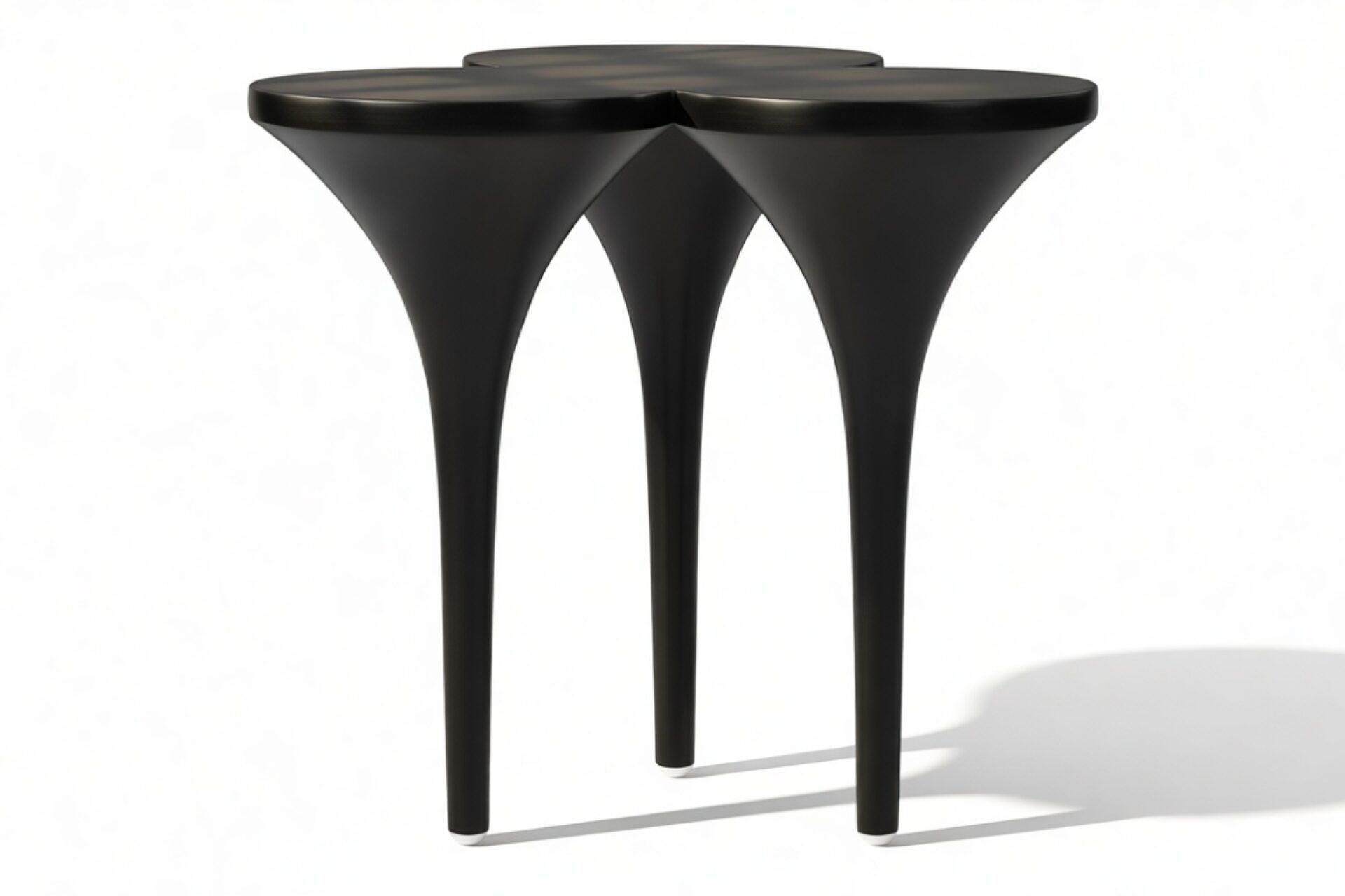 Introduce charm and sophistication to your space with the captivating Spina Side Table. Crafted from premium wood, its clover-shaped tabletop adds a playful yet refined essence to any room. The chic three-leg design guarantees stability without compromising on style. Finished in timeless black, this table seamlessly complements various decor styles, making it a stylish and versatile addition to your home.