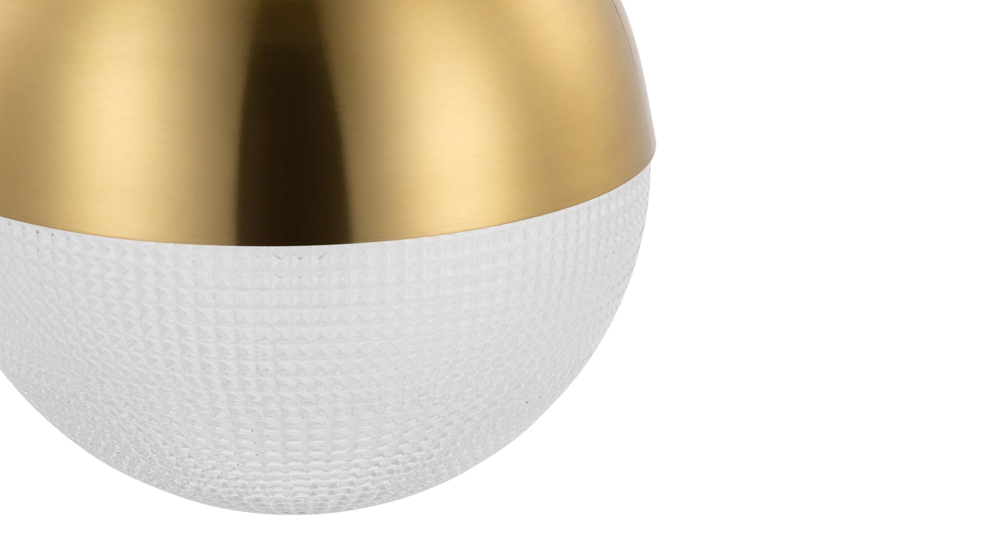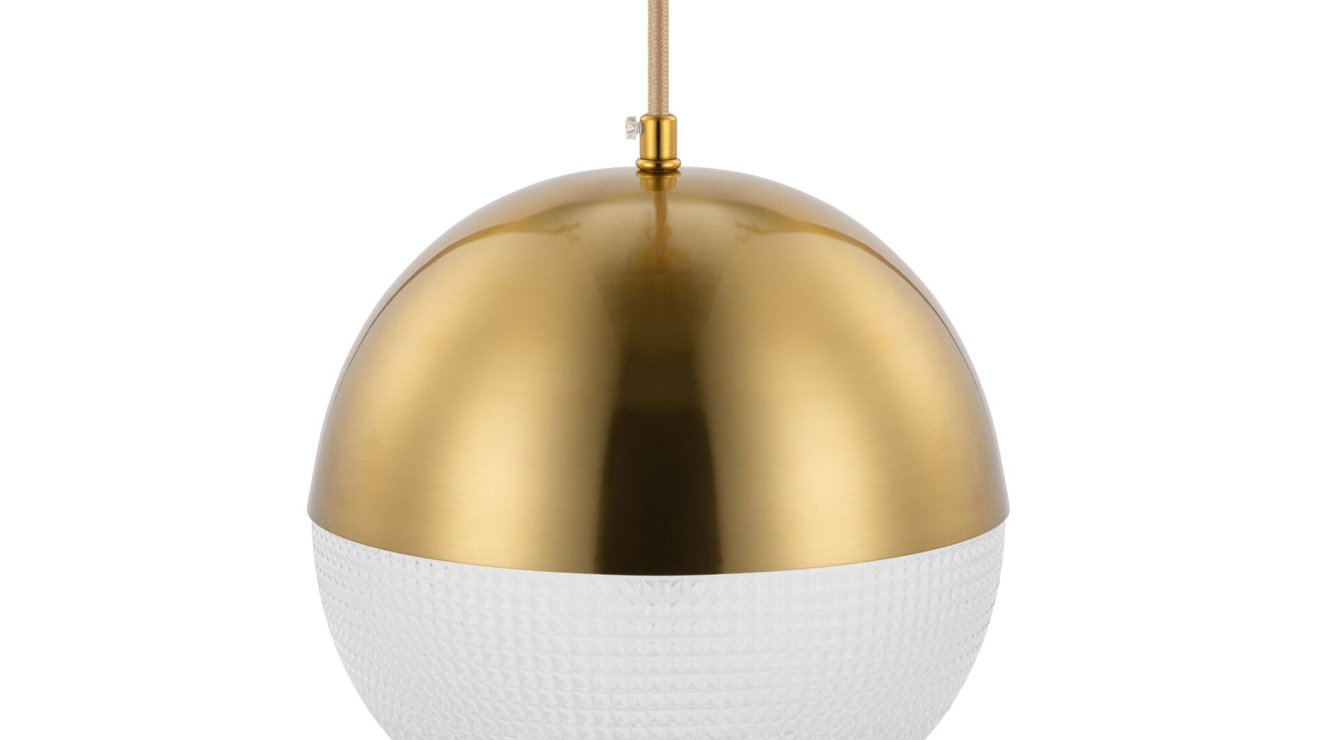 Introducing the Sunna Pendant Light, boasting a large globe accompanied by brass embellishments and intricate glasswork underscoring an Art Deco design influence reminiscent of the 1920s. Emitting a gentle diffused light, this fixture, available in timeless brass hue, is an ideal centerpiece to enhance any interior style, perfect for creating a striking focal point with a touch of chic sophistication.