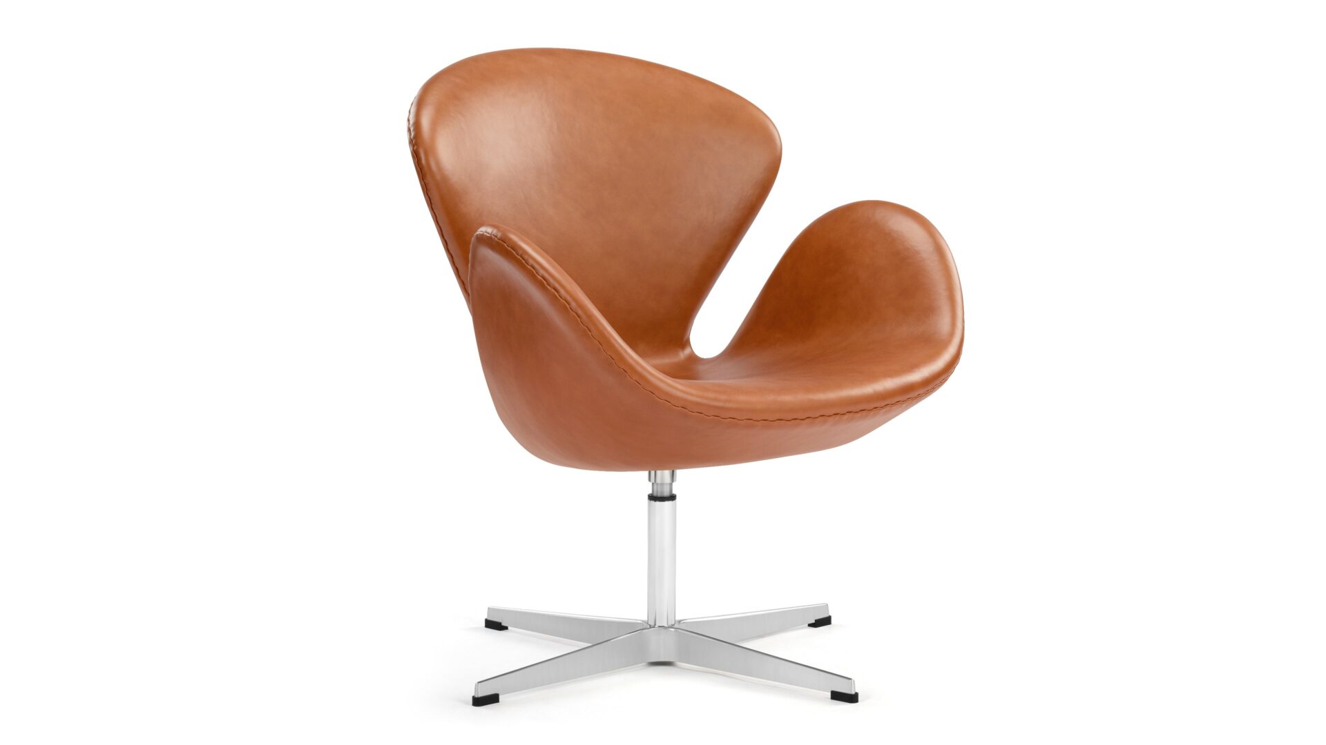 Introducing a close relative of the Arne Chair, the Swann Chair embodies another striking Danish design. Like its "cousin," the Swann Chair draws inspiration from the popular designs of the late 1950s. Mirroring the Arne Chair, the Swann exudes an understated elegance with its elongated curves and graceful armrests. A timeless piece that has been in continuous production since its introduction, the Swann Chair showcases a design reminiscent of the majestic bird from which it derives its name. The backrest elegantly fans out to provide comfortable support, while the armrests gently curve upwards to enhance comfort further. Perched upon a steel support with a brushed aluminum base, this piece stands firmly on four legs.