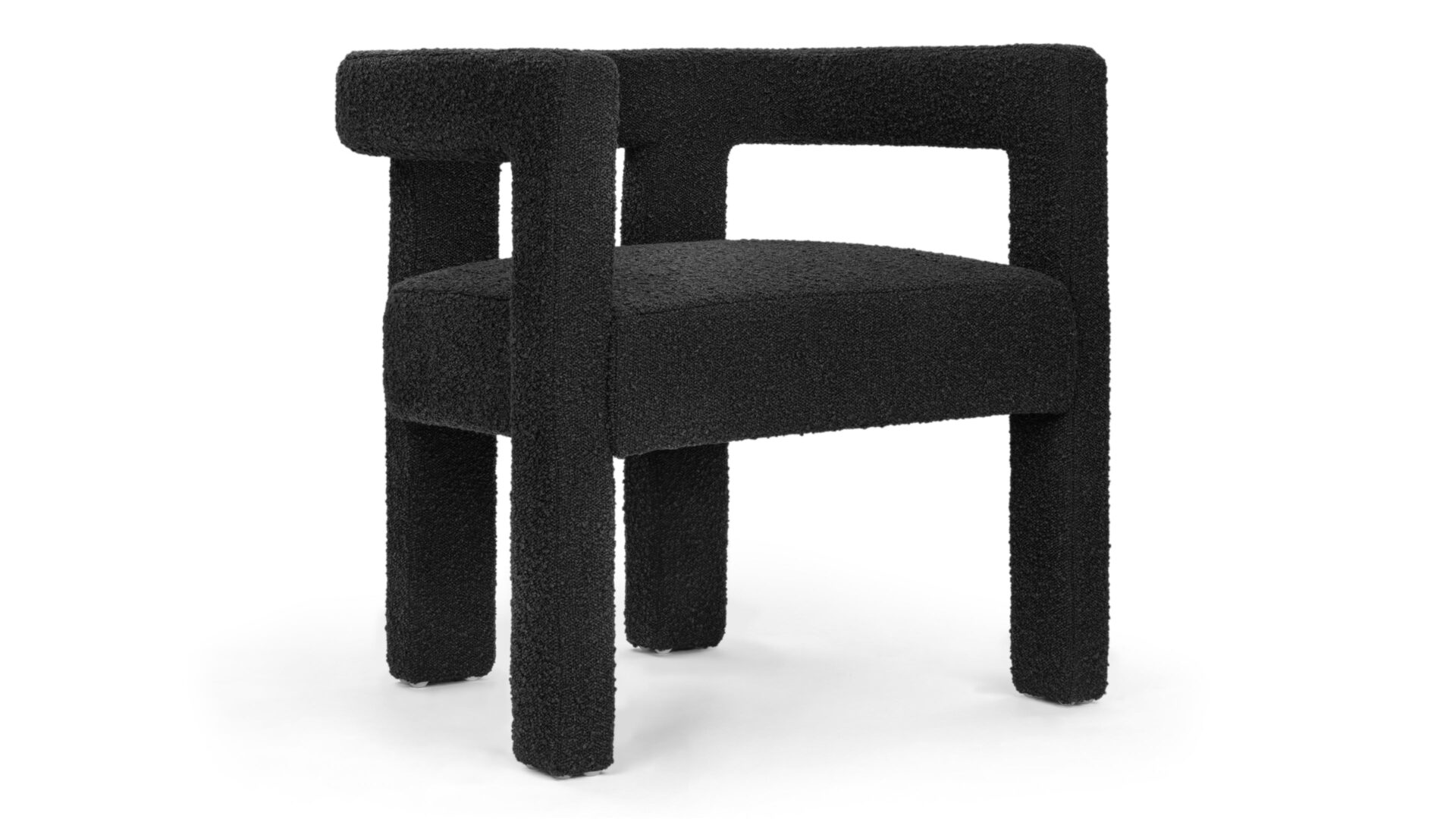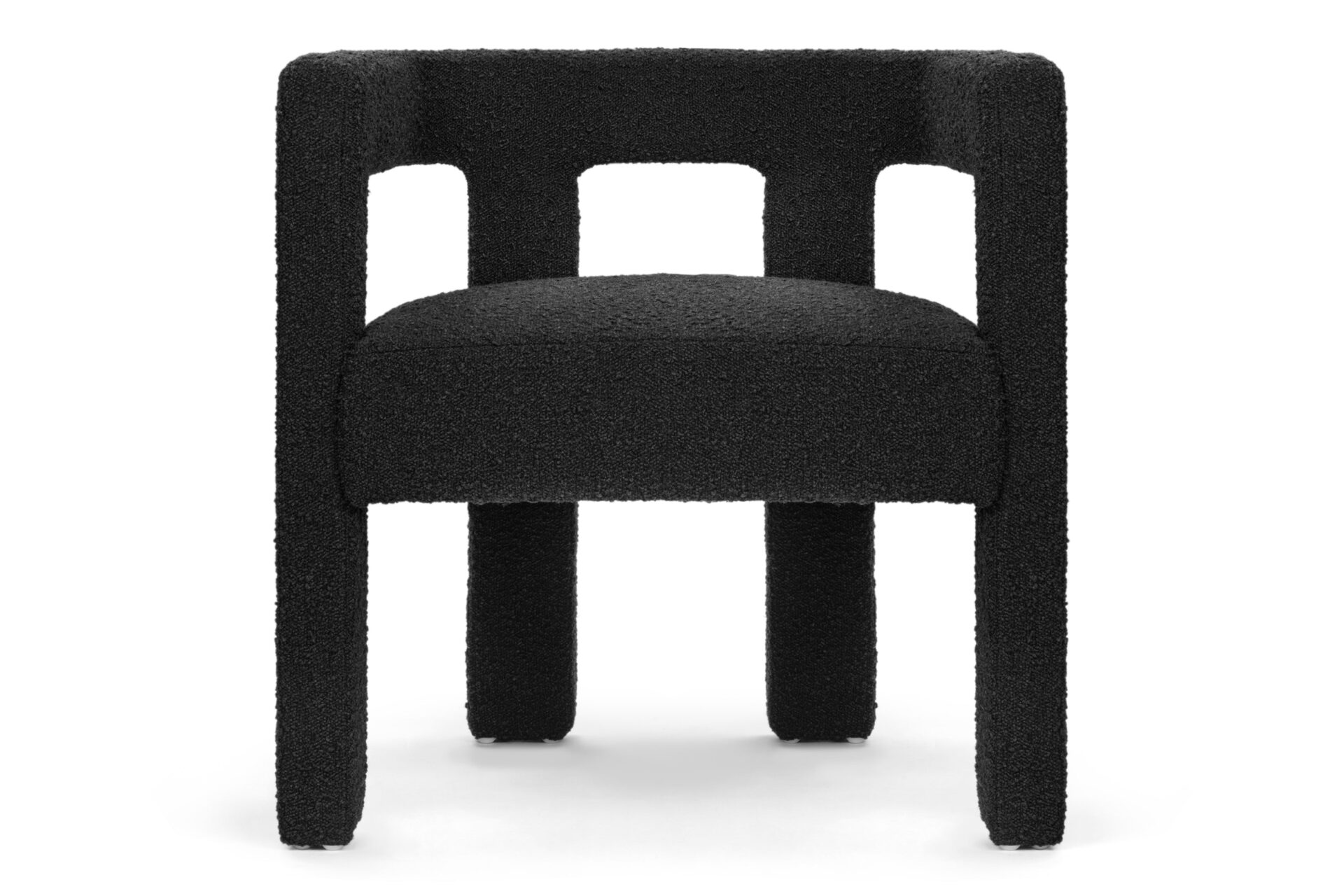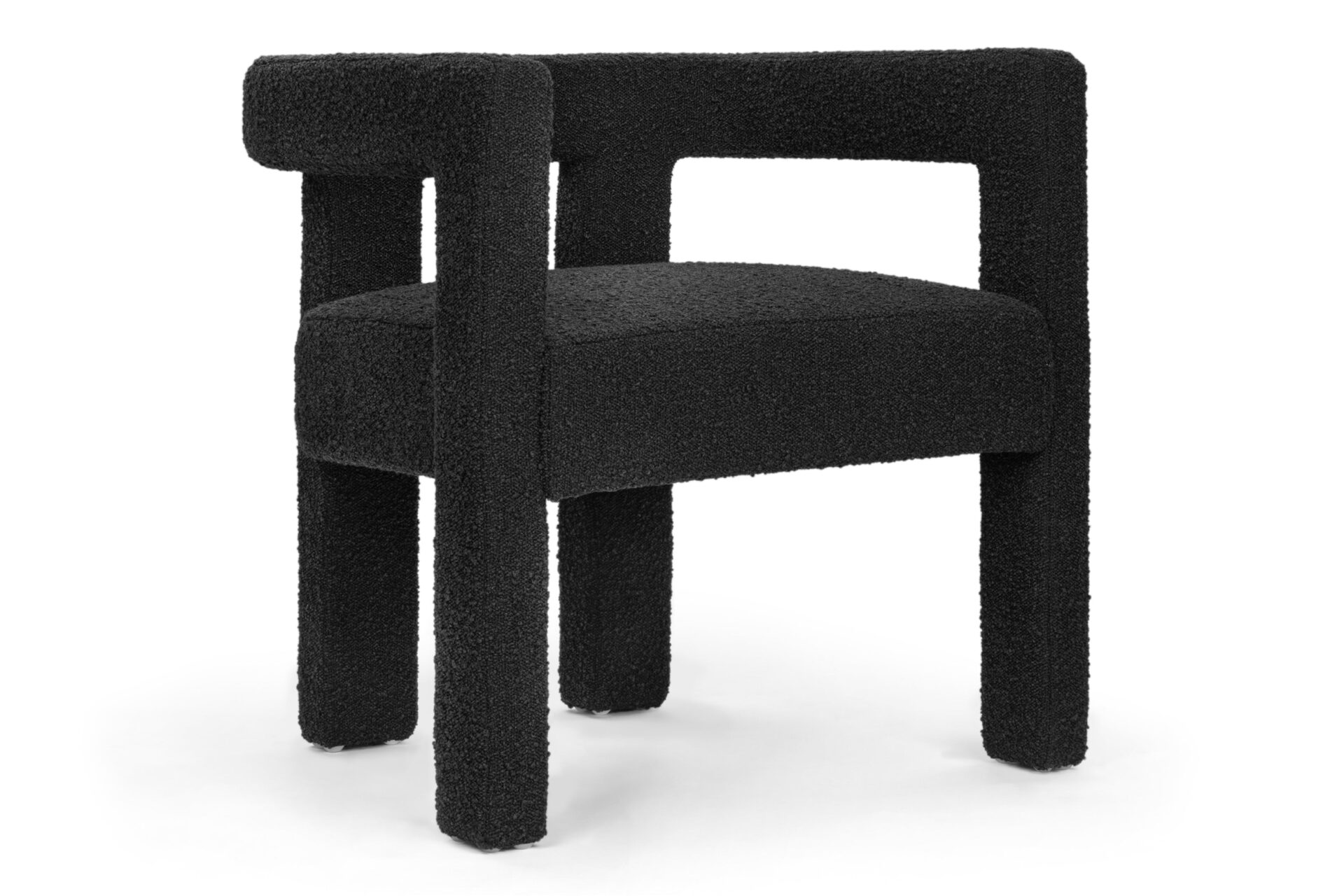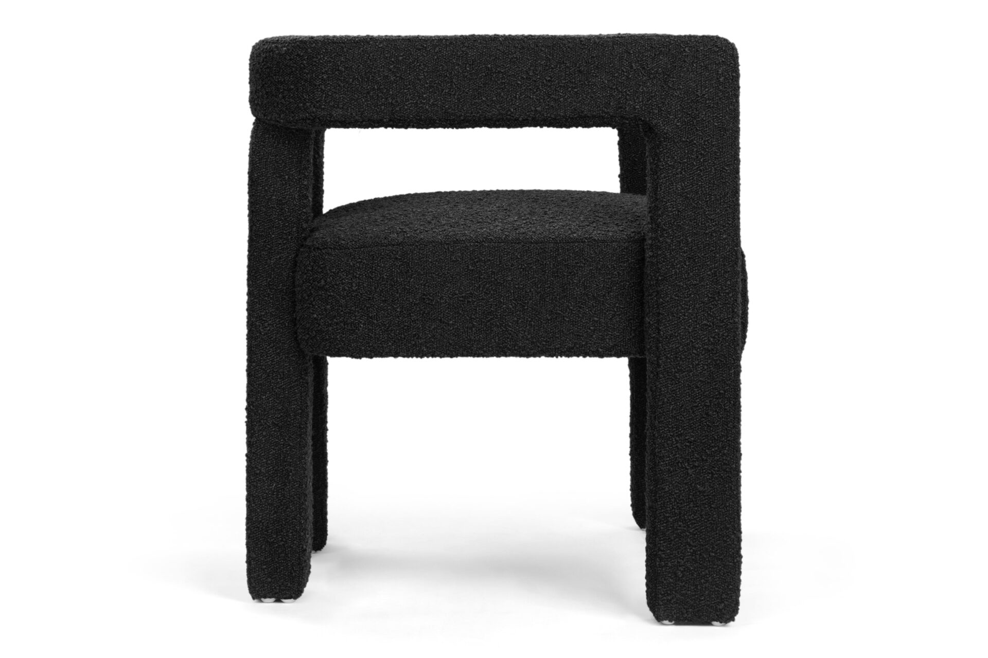 Experience the modern Italian charm of the Tala Armchair, featuring a sophisticated design with straight legs and a curved backrest. Upholstered in stylish black fabric, this piece is a true standout.