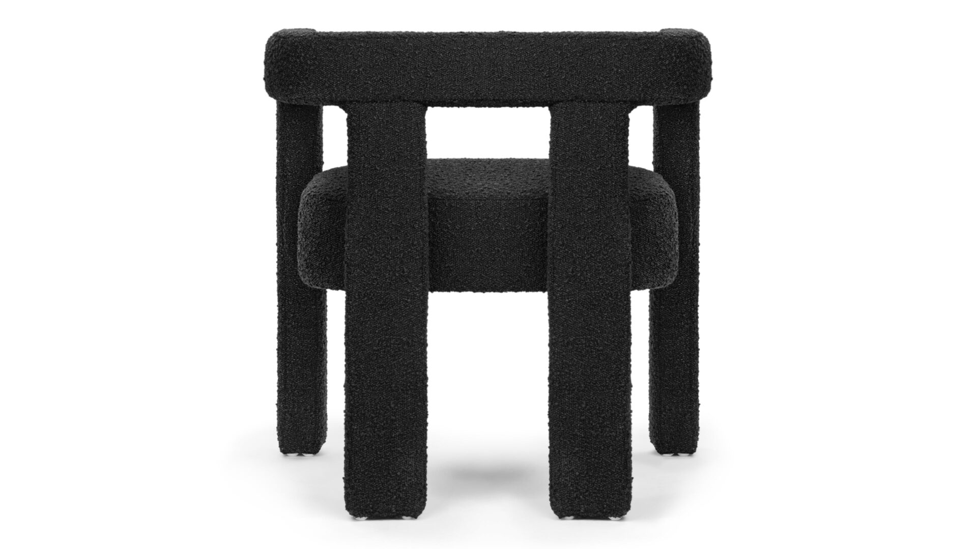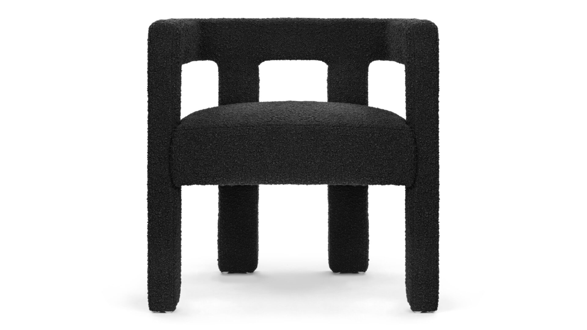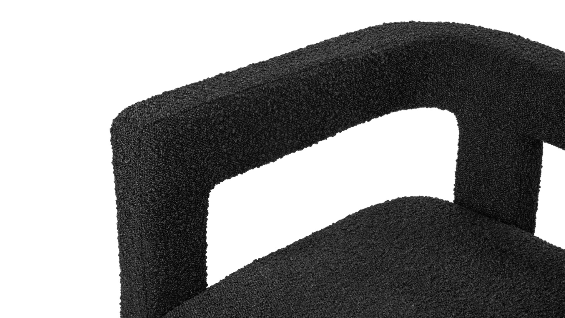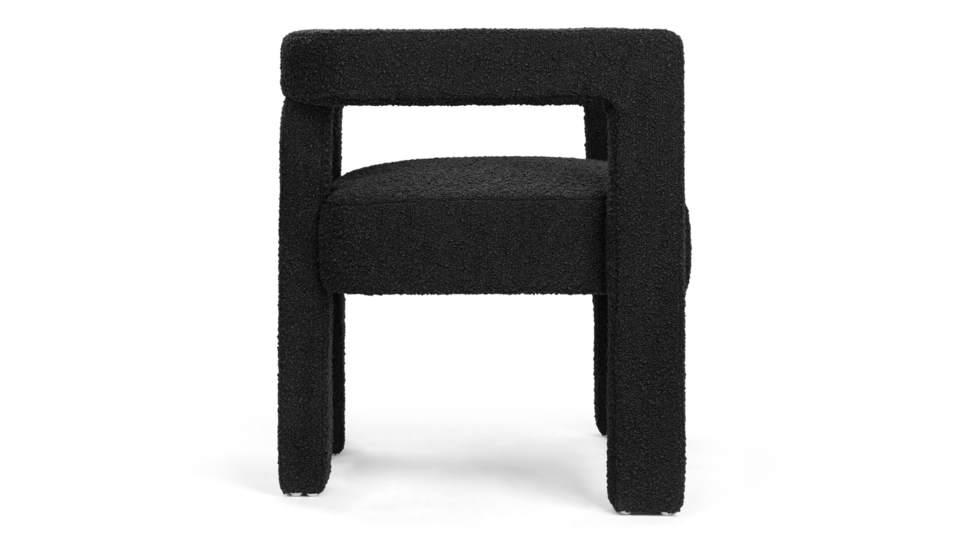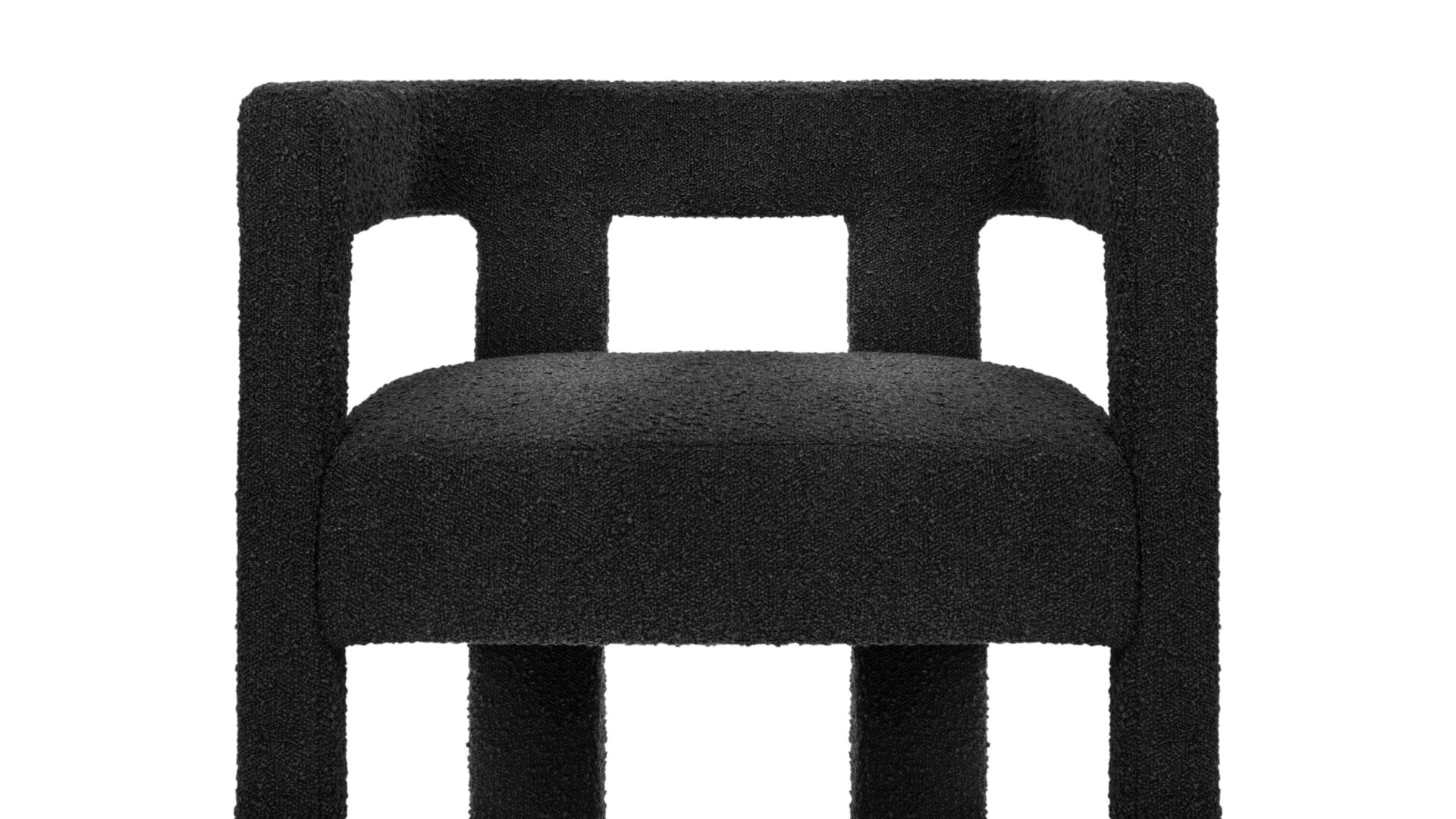 Experience the modern Italian charm of the Tala Armchair, featuring a sophisticated design with straight legs and a curved backrest. Upholstered in stylish black fabric, this piece is a true standout.