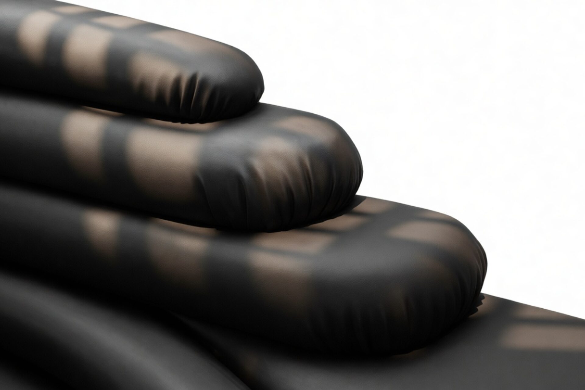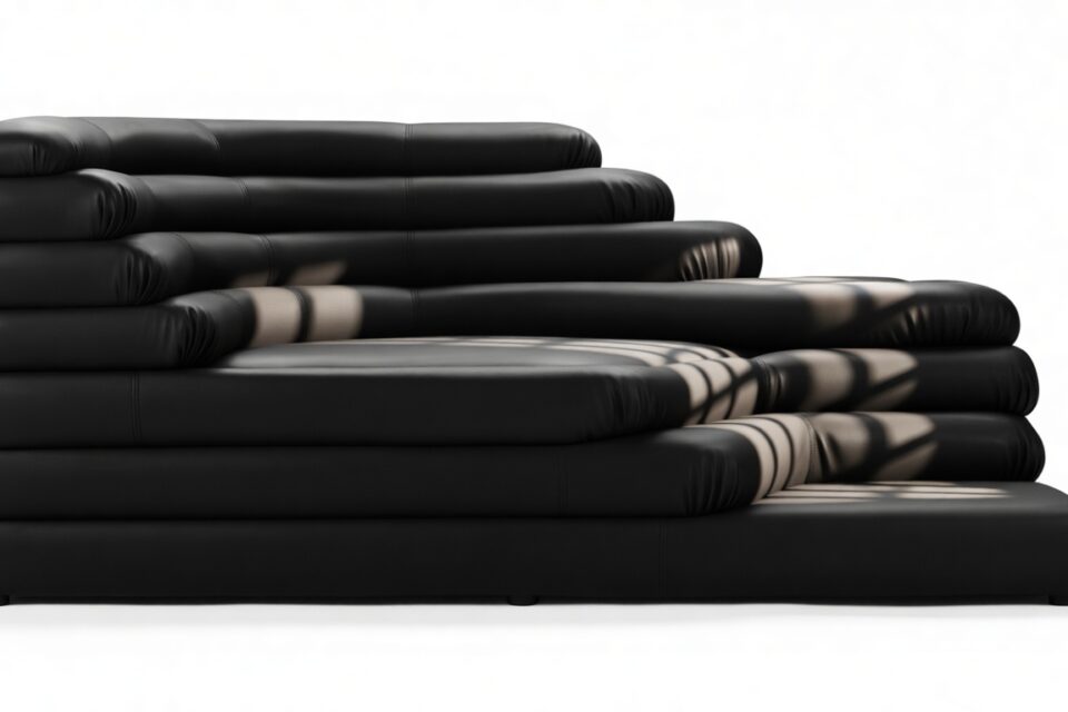 Introducing the Terrazza Sofa, a magnificent masterpiece of luxurious comfort and craftsmanship, exclusively available at Merior. This exceptional sofa challenges traditional design, boasting unique geometric shapes and textures in sleek black vegan leather. Crafted with meticulous attention to detail by expert artisans, it offers both style and substance, promising a truly luxurious seating experience. Treat yourself to the chic elegance of the Terrazza Sofa and elevate your living space into a sophisticated sanctuary of comfort and style.